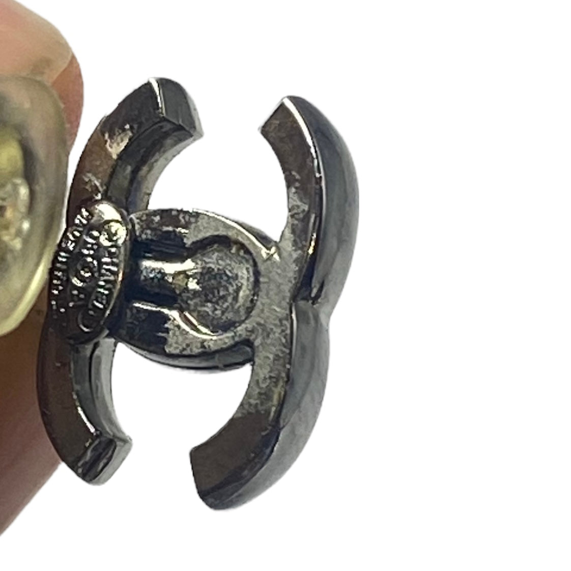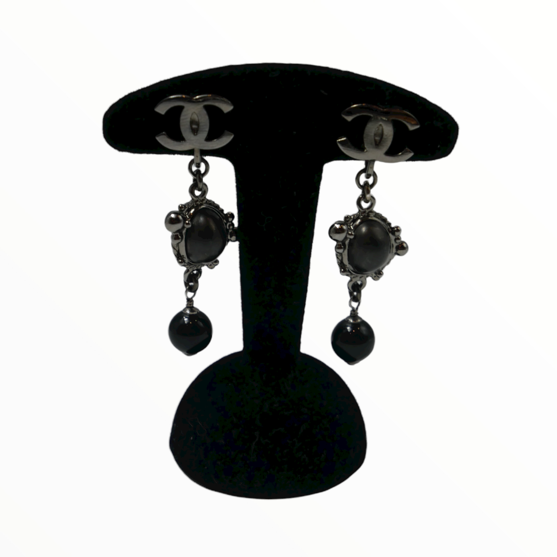 DESCRIPTION: Chanel silver and black stone pendant earrings