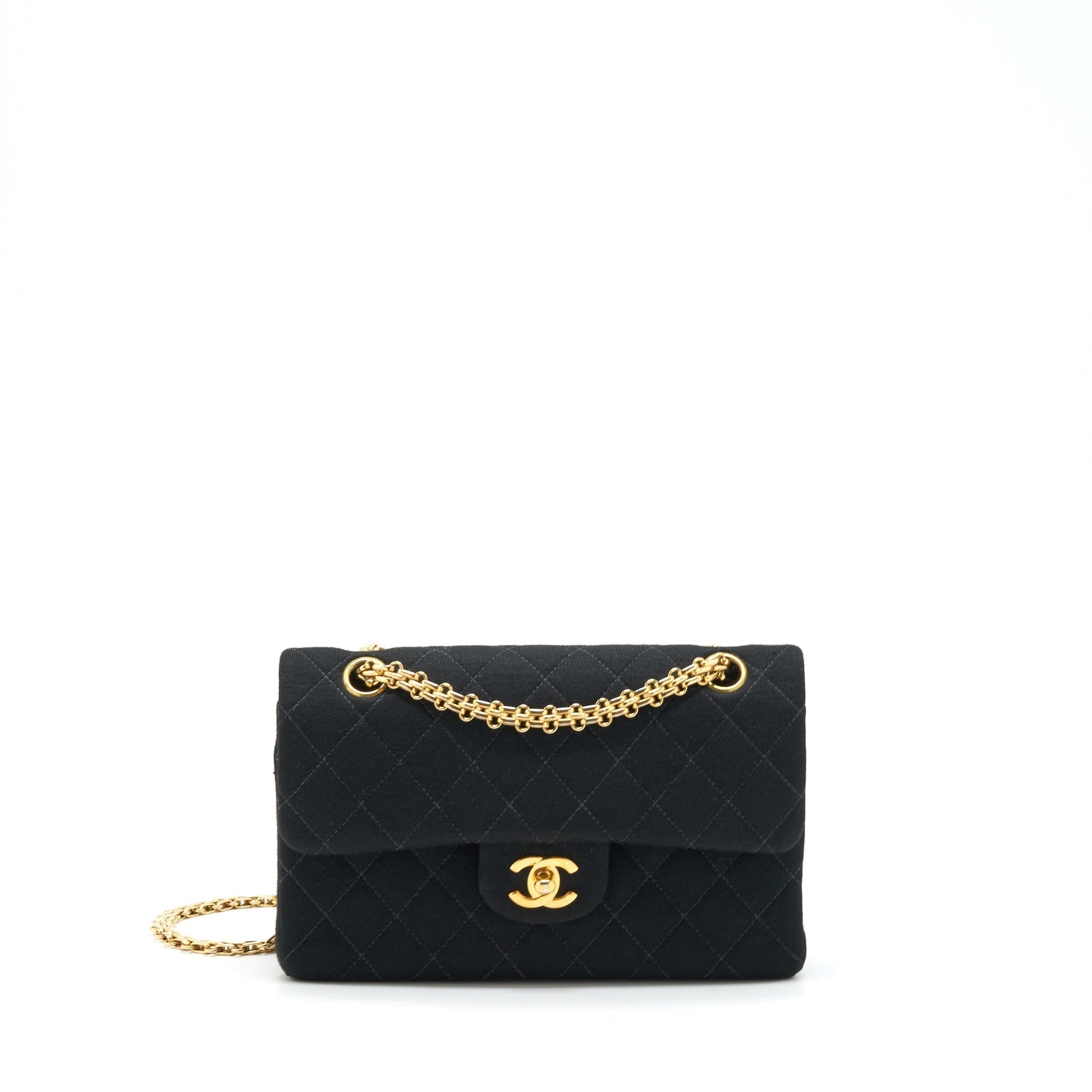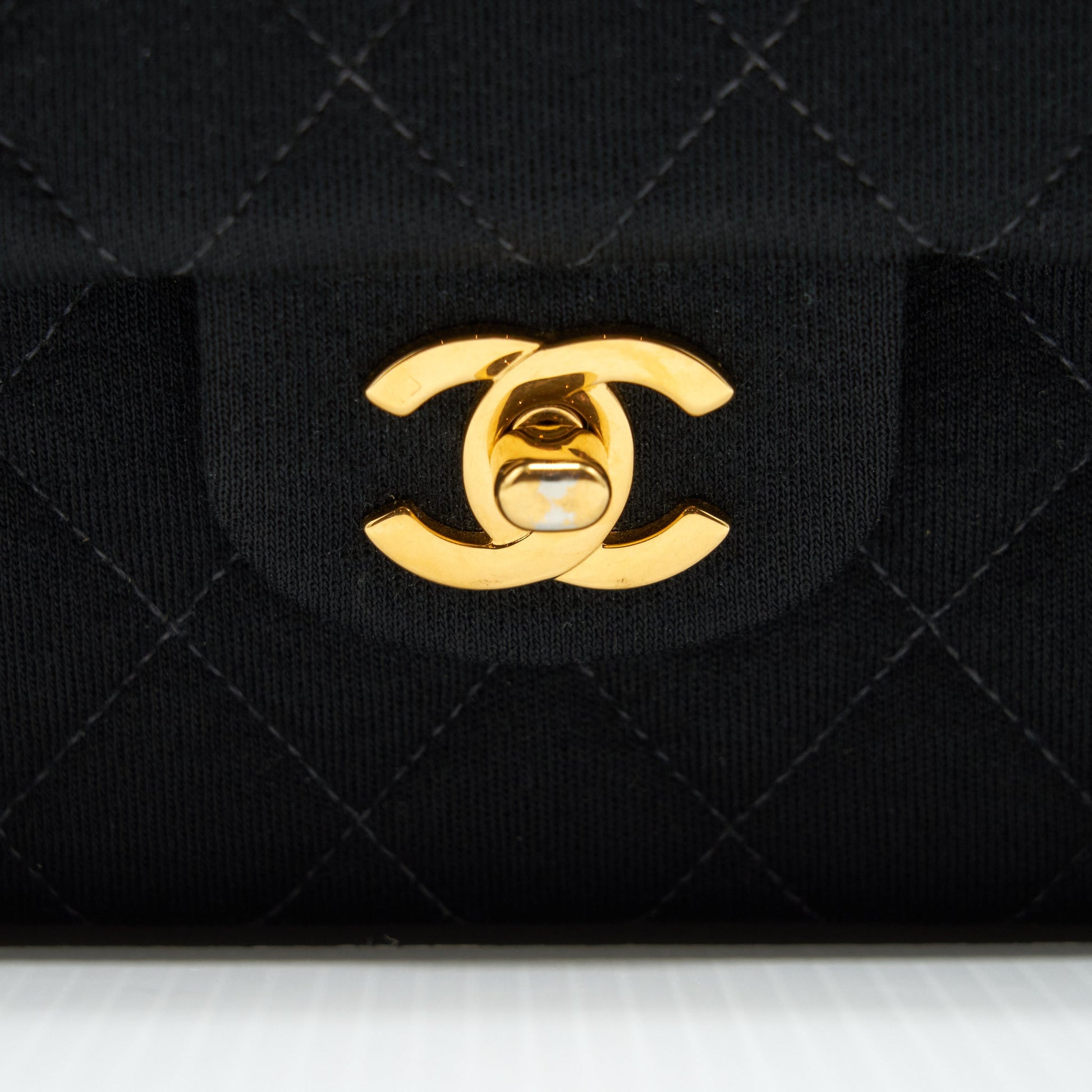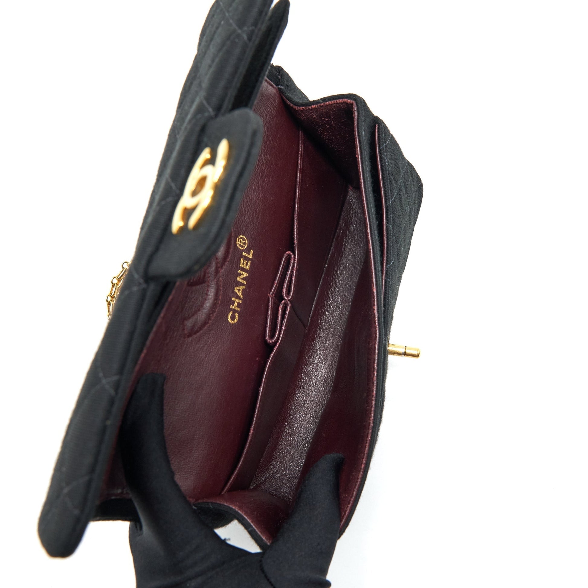 Chanel Vintage Small Classic Flap Bag Fabric Black Ruthenium GHW