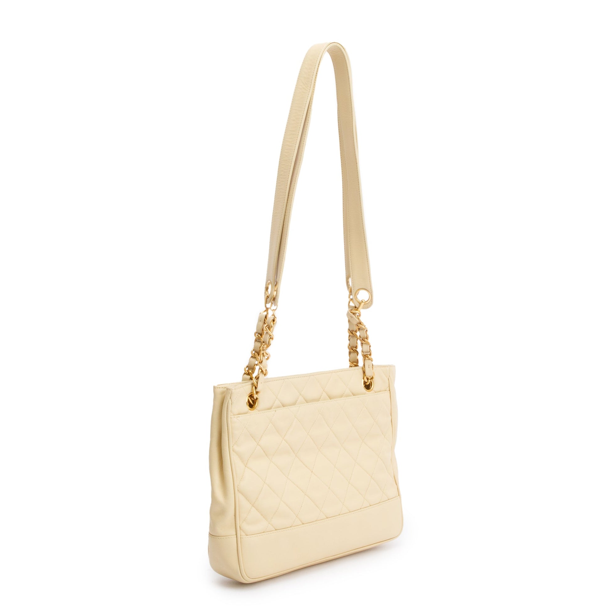 Chanel Vintage Yellow Calfskin Leather Chain Tote w/ Authenticity Card