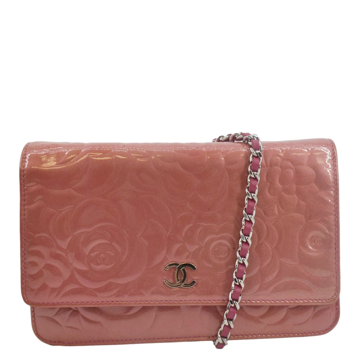 CHANEL Camellia Wallet On Chain Leather Crossbody Bag Pink