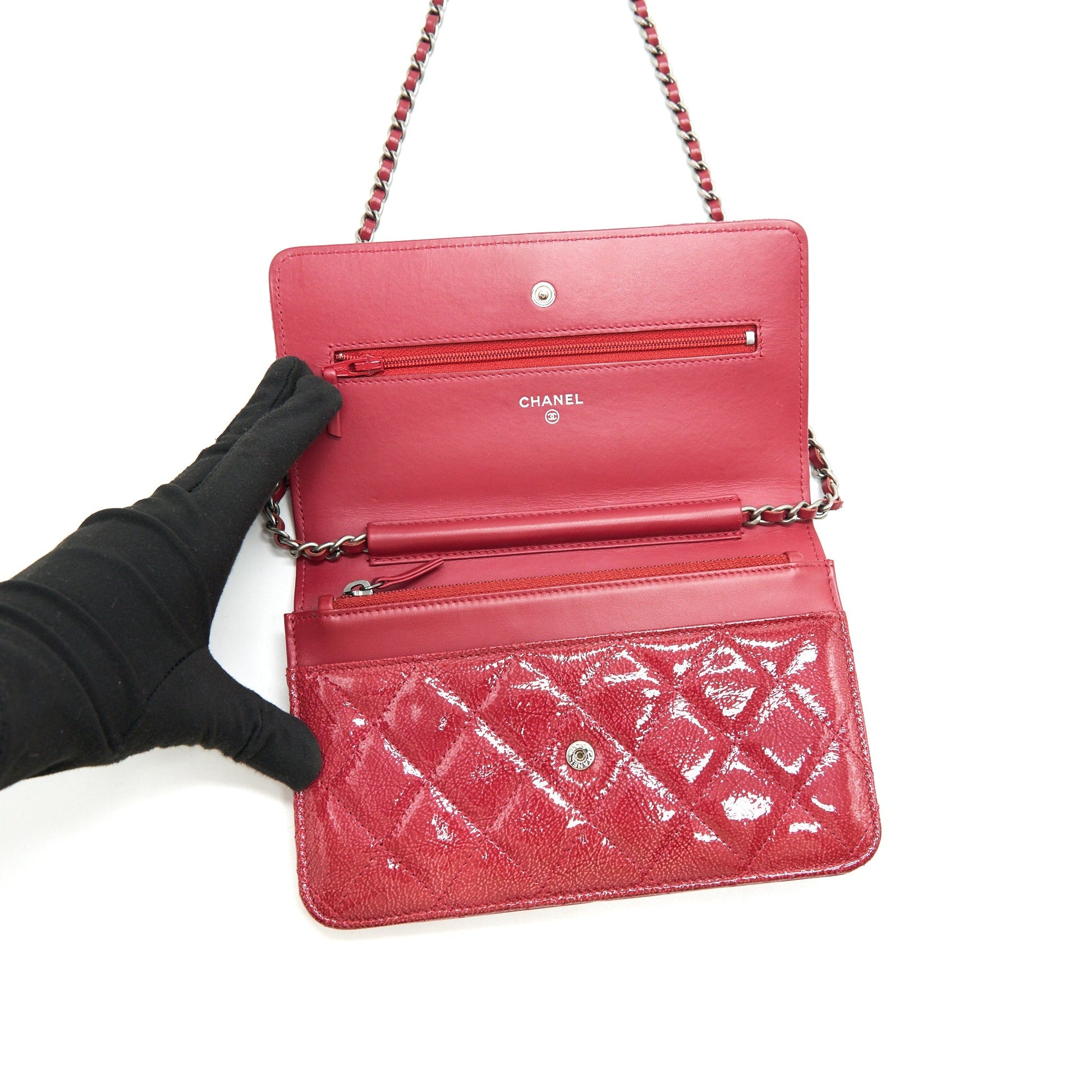 CHANEL WALLET ON CHAIN PATENT LEATHER RED SHW