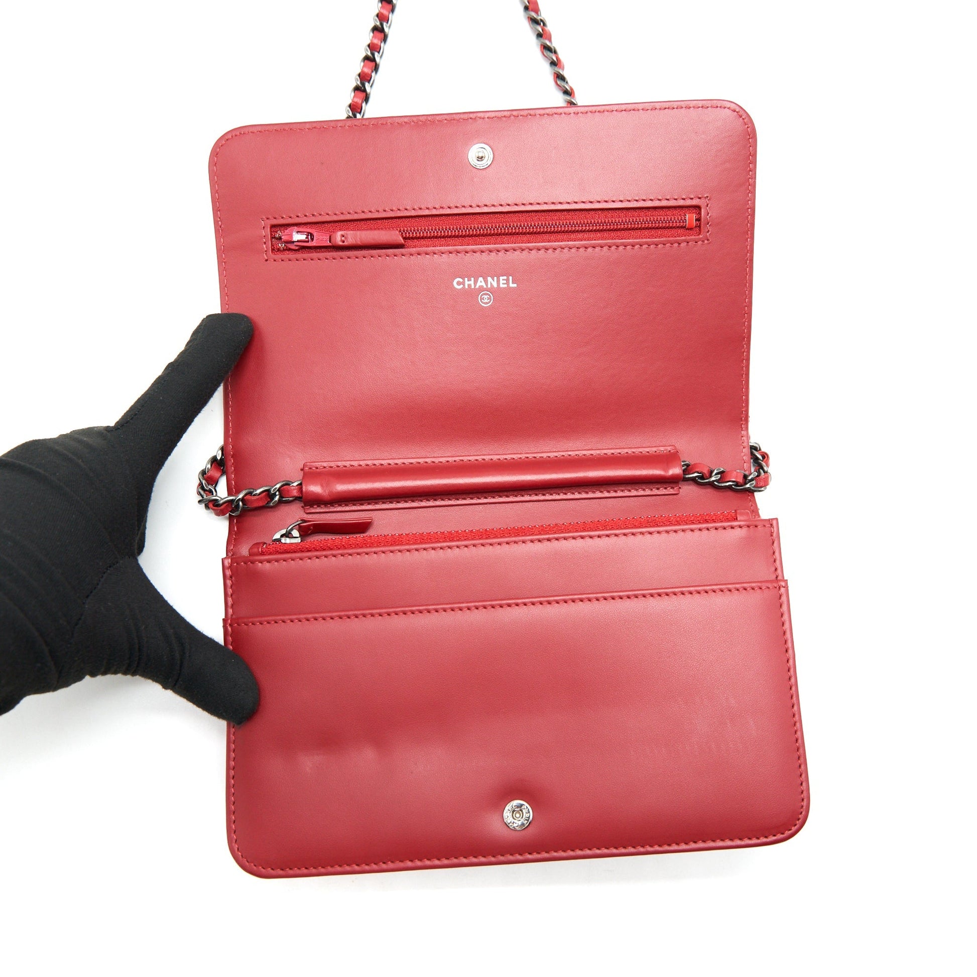Chanel Wallet On Chain Red Calfskin Ruthenium Hardware