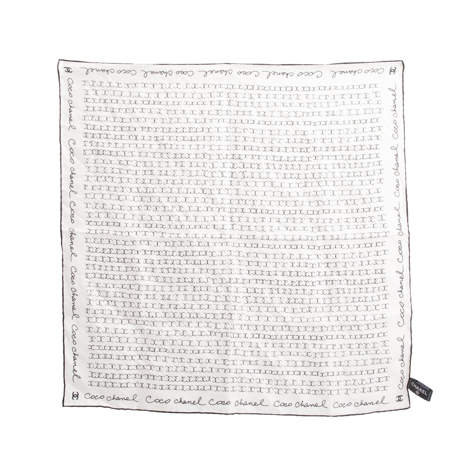 Chanel White & Black CC Logo Print Silk Square Scarf