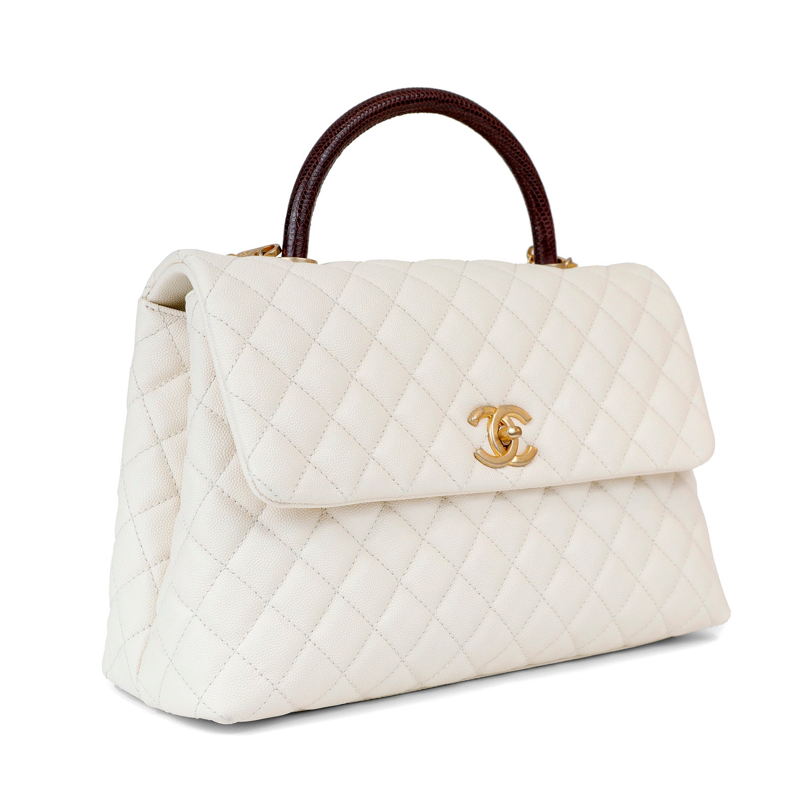 Chanel White Caviar Coco Bag w/ Lizard Skin Handle & Gold Hardware