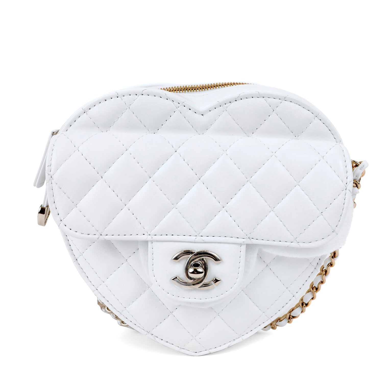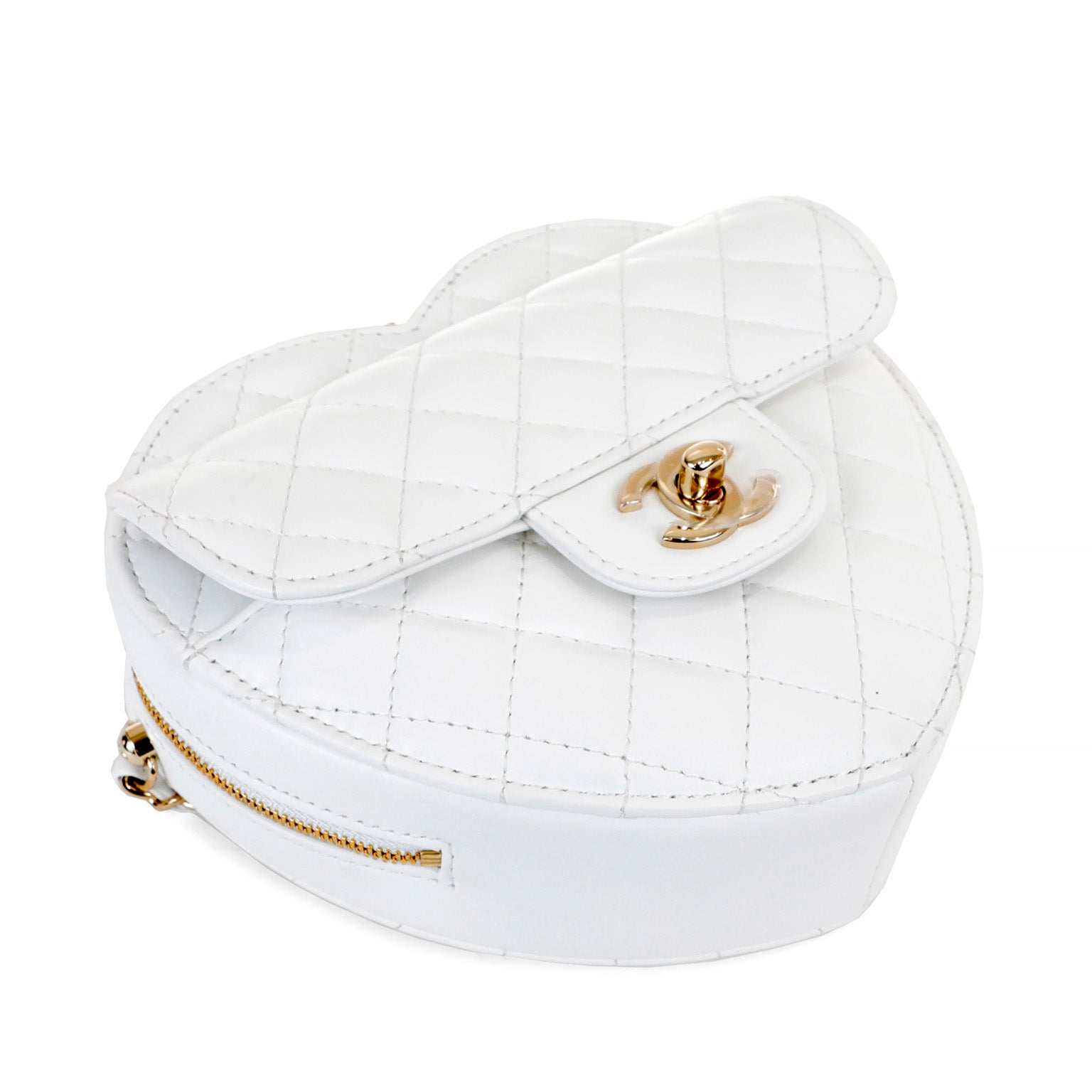 Chanel White Lambskin Mini Heart Bag with Gold Hardware