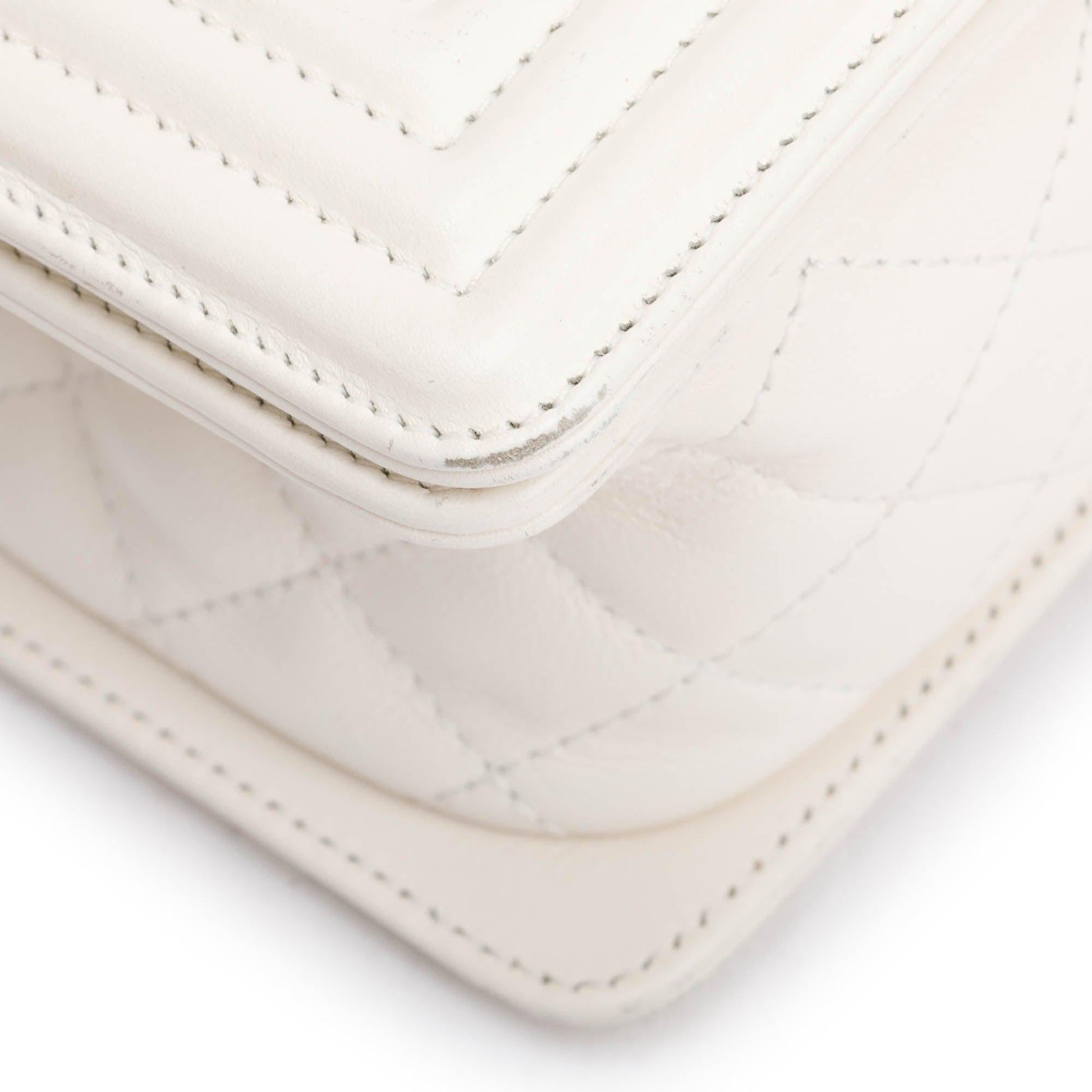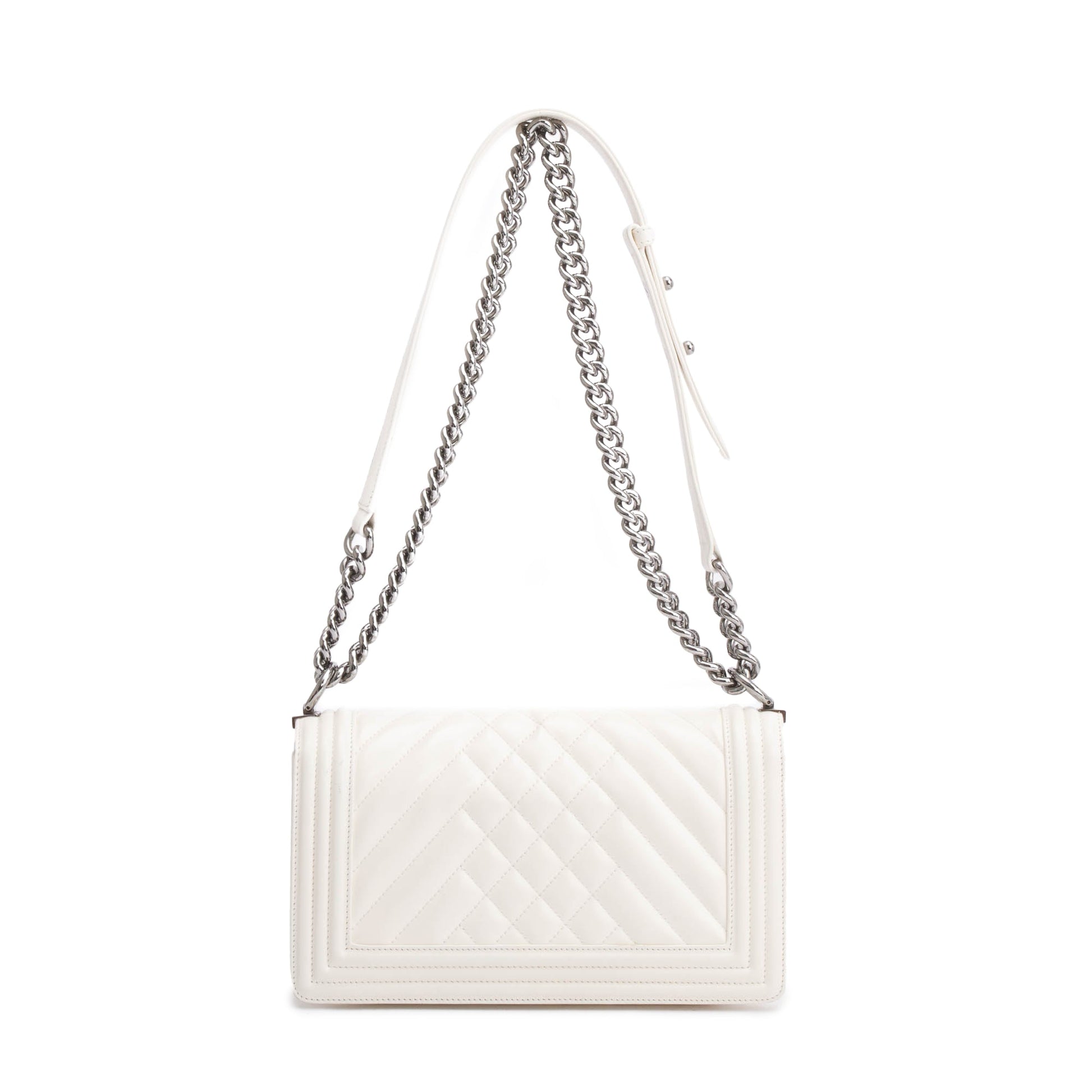 Chanel White Quilted Calfskin Leather Medium Boy Bag