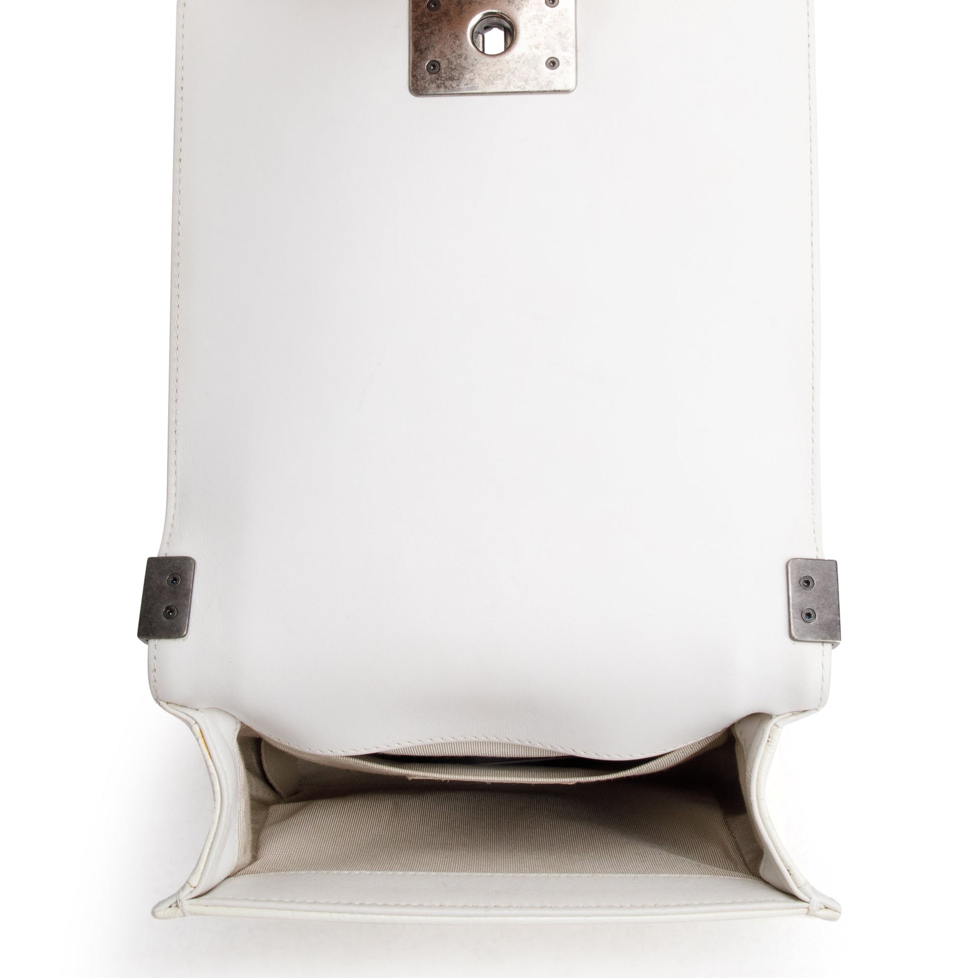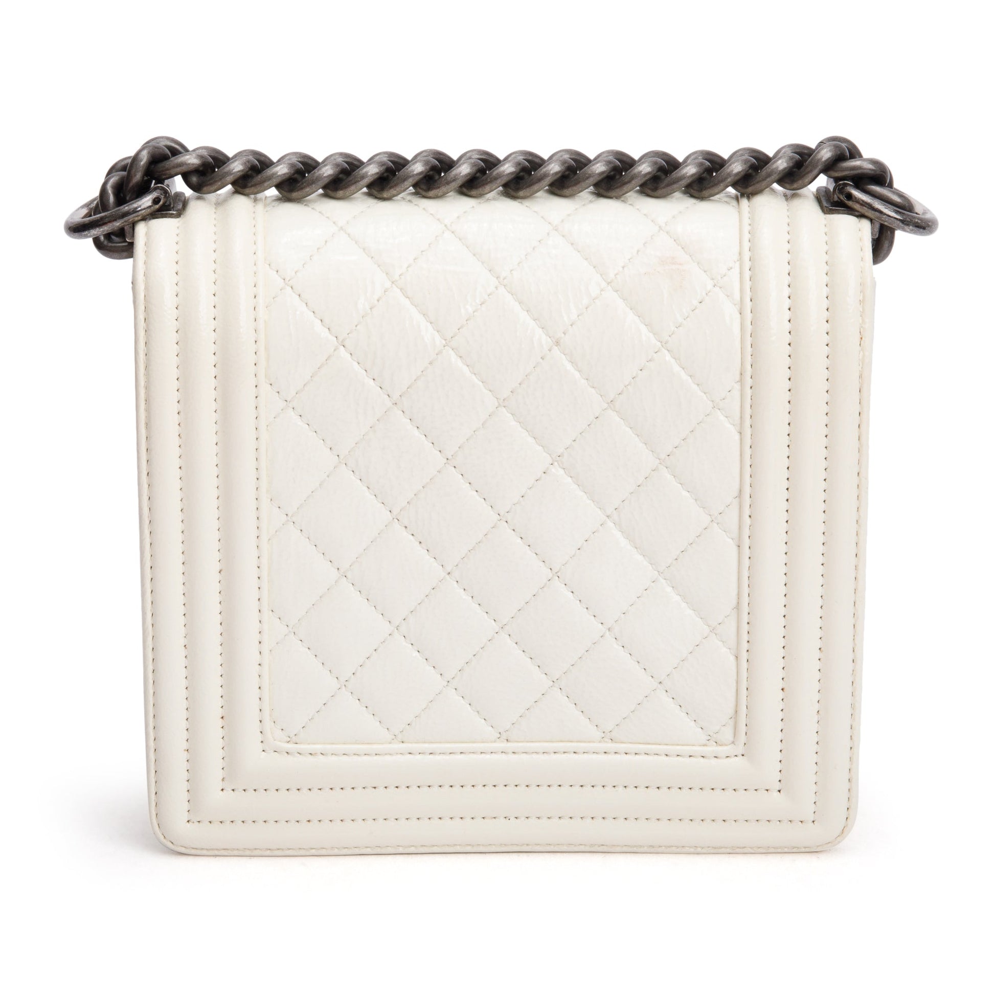 Chanel White Quilted Leather Small Gentle Boy Bag w/ Authenticity Card