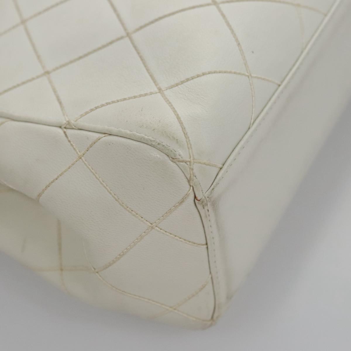 CHANEL Wild Stitch Hand Bag Leather White CC 110221