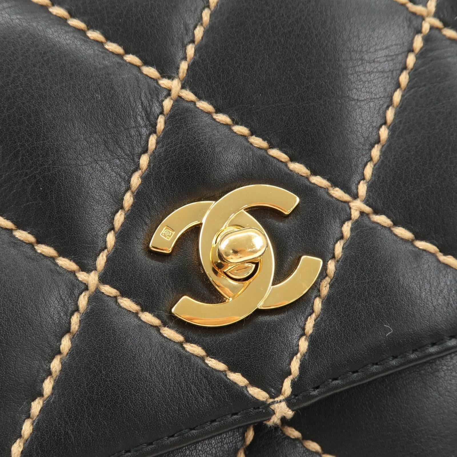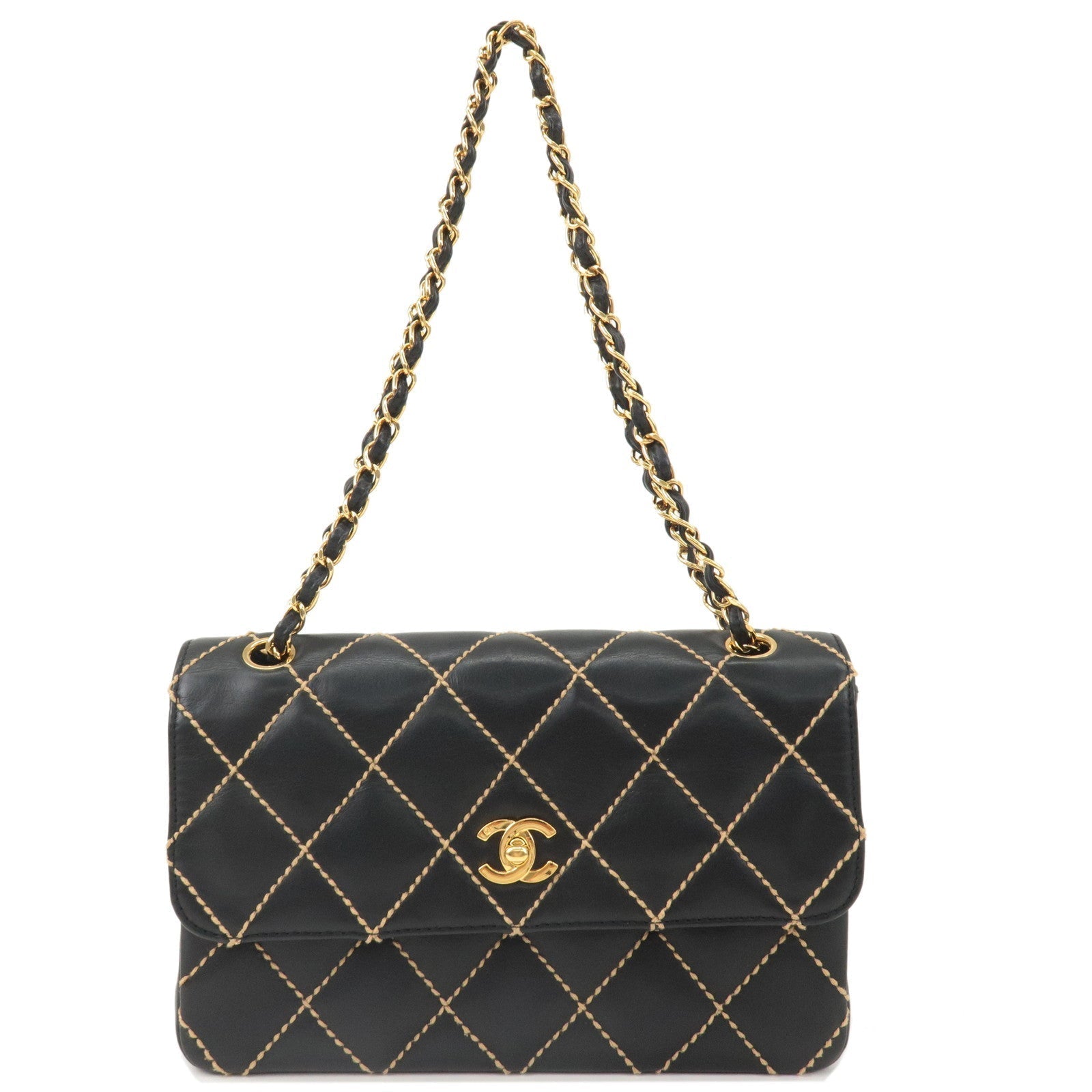 CHANEL Wild Stitch Matelasse Lamb Skin Chain Shoulder Bag A14687