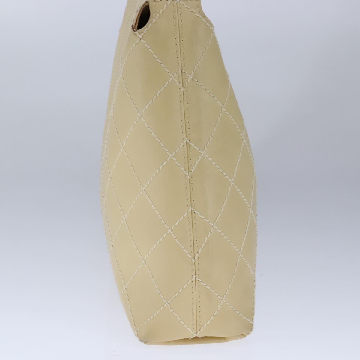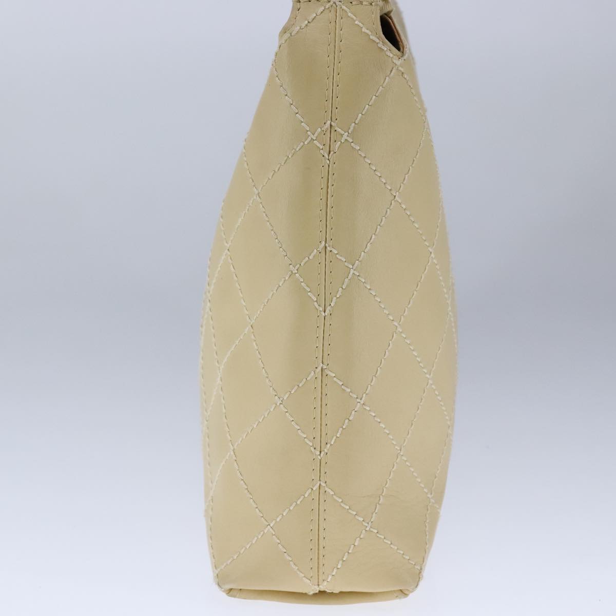 CHANEL Wild Stitch Matelasse Shoulder Bag Leather Beige Gold CC 106837