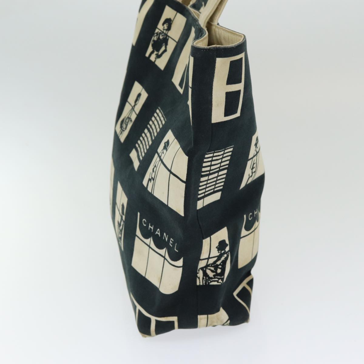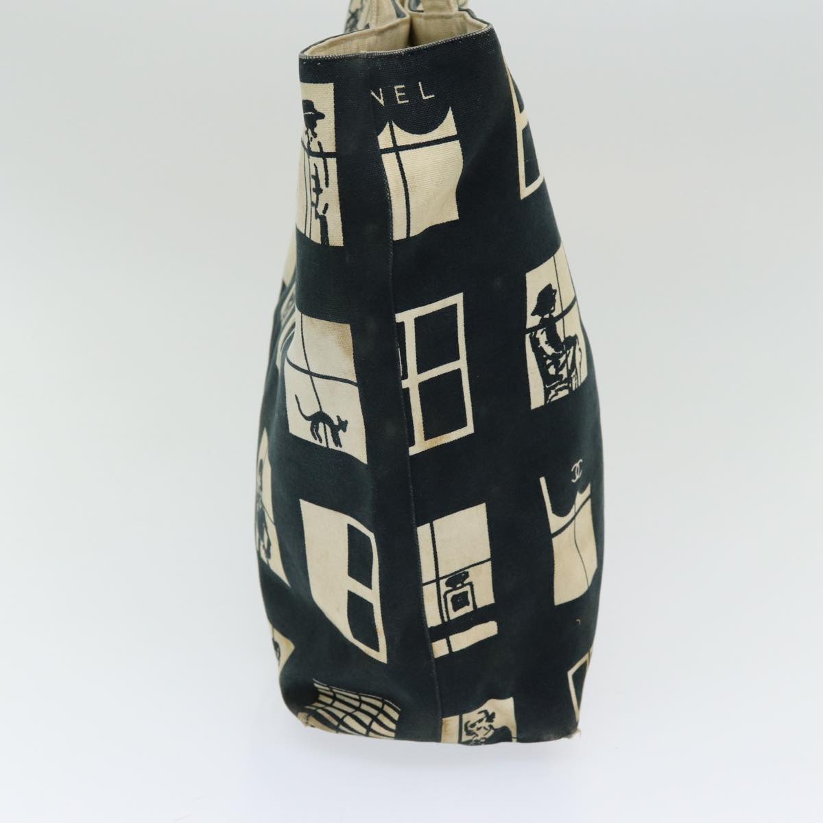 CHANEL Window line Tote Bag Canvas Black White gold CC bs16568