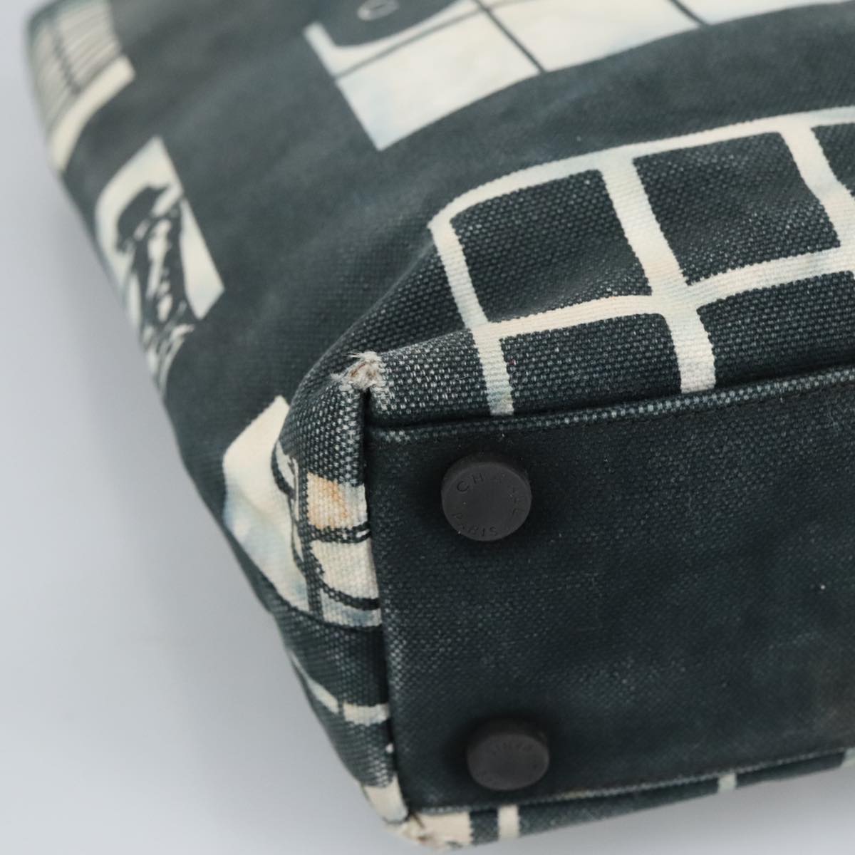 CHANEL Windows Tote Bag Canvas Gold Black CC 97017