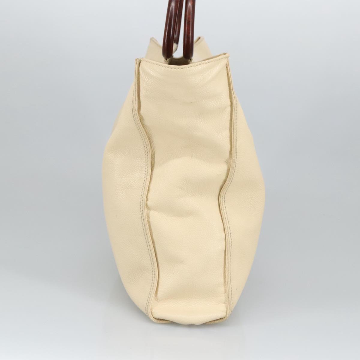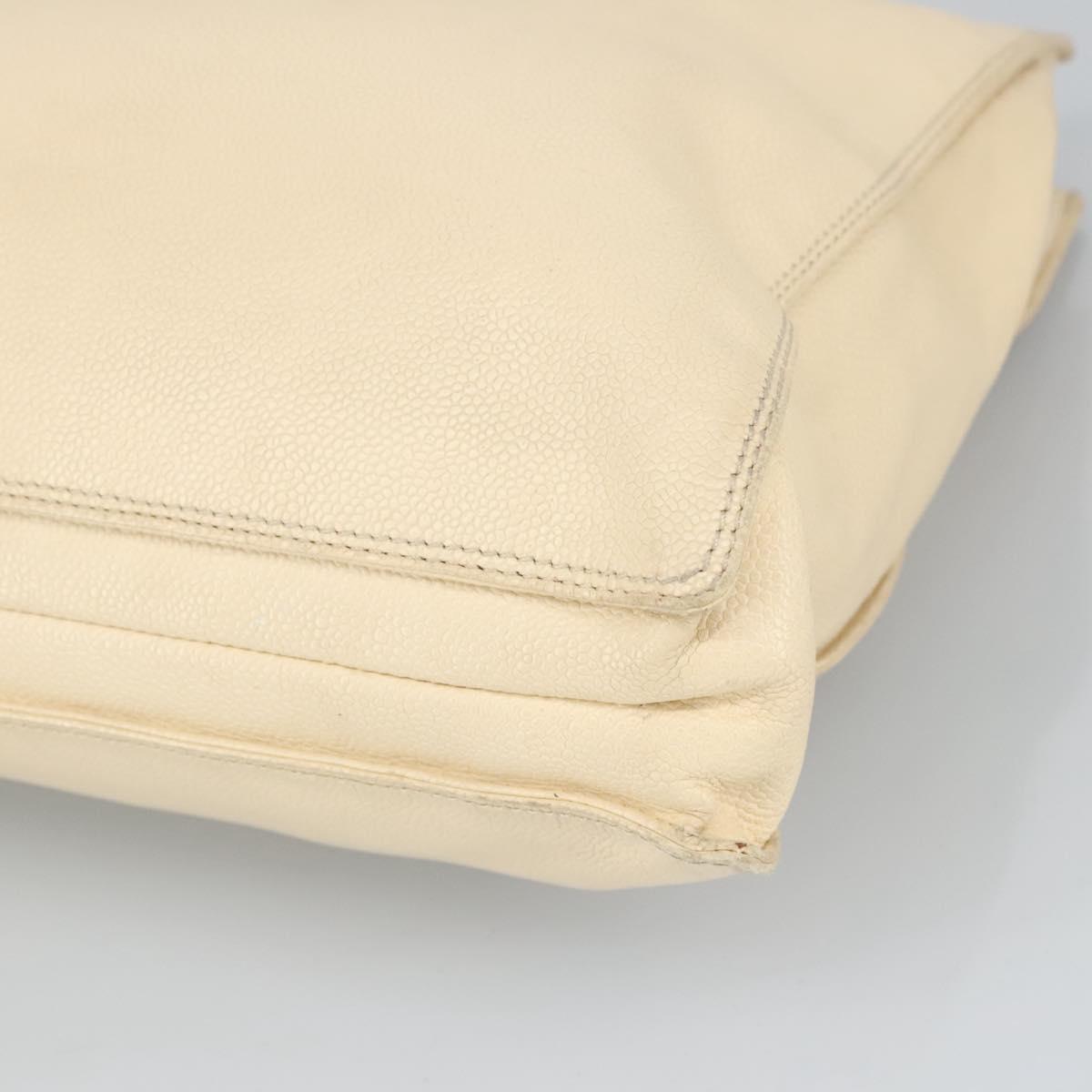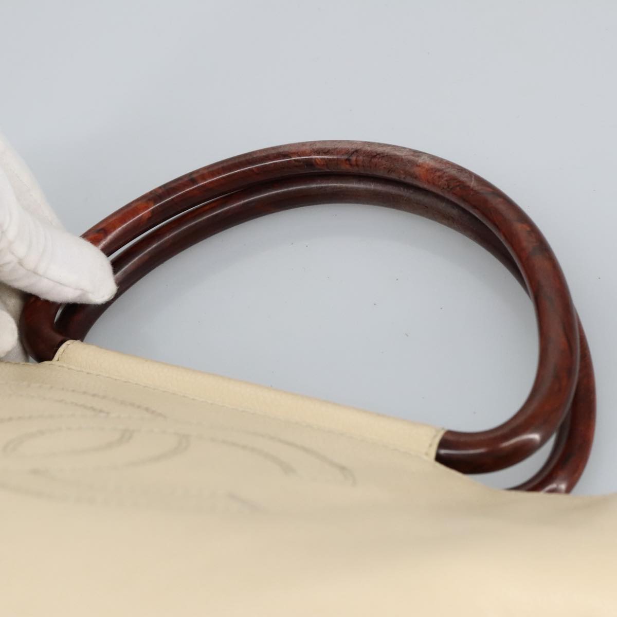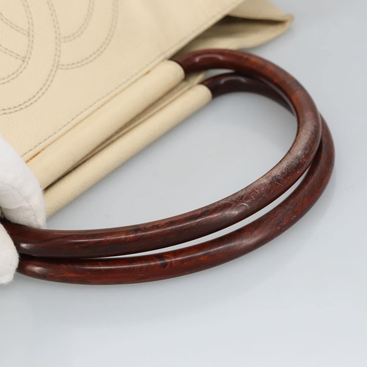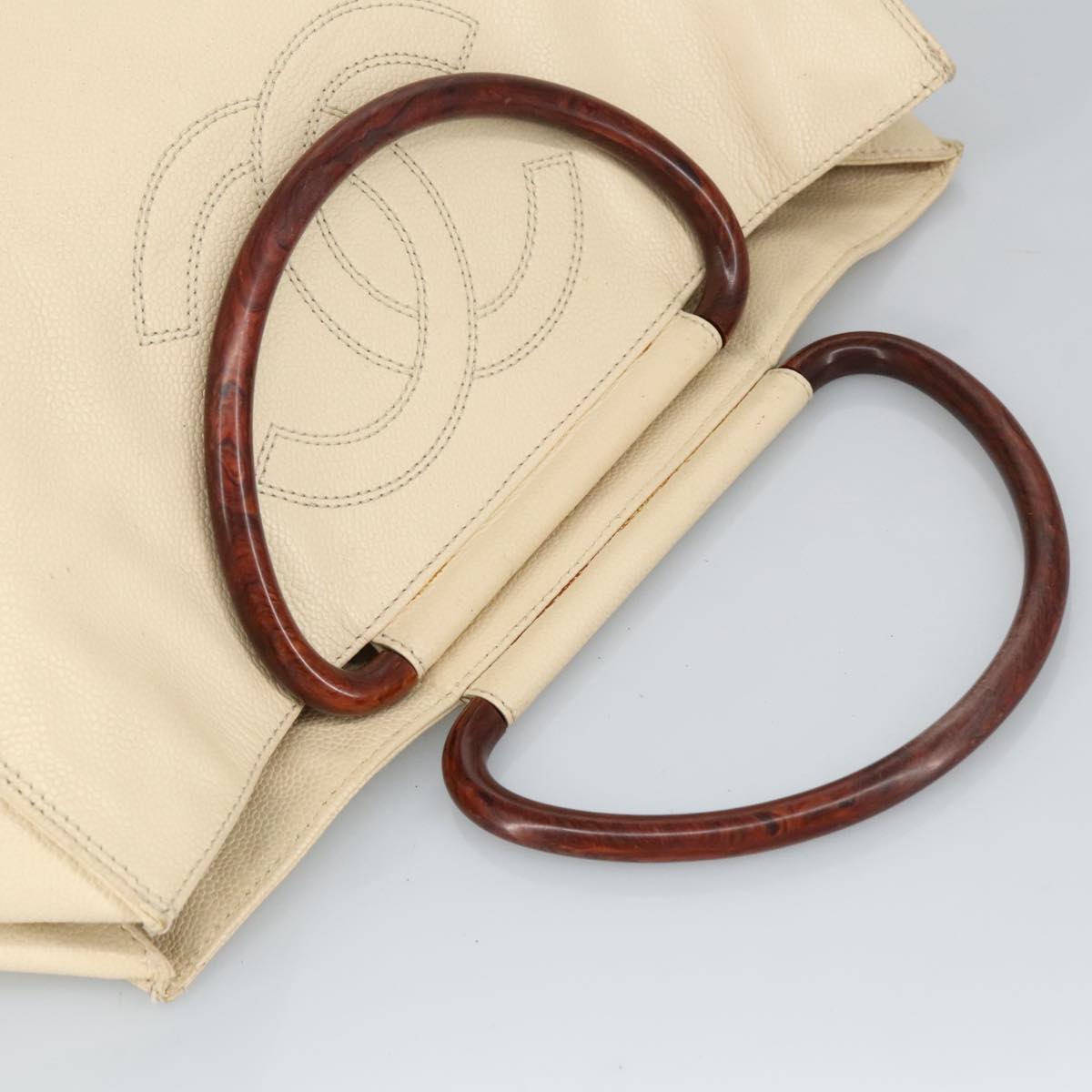 CHANEL Wood Hand Bag Caviar Skin Beige Brown Gold CC bs20161