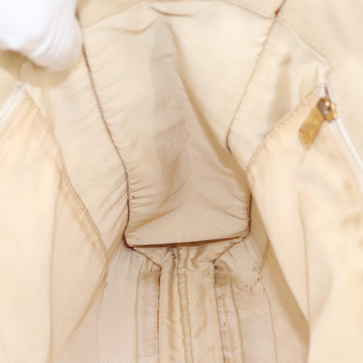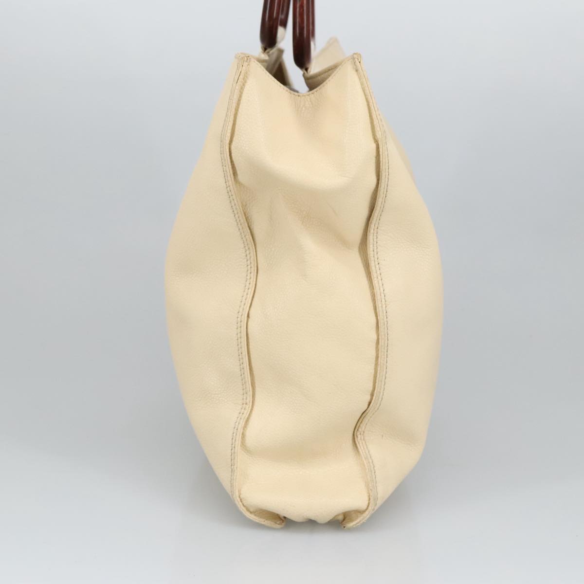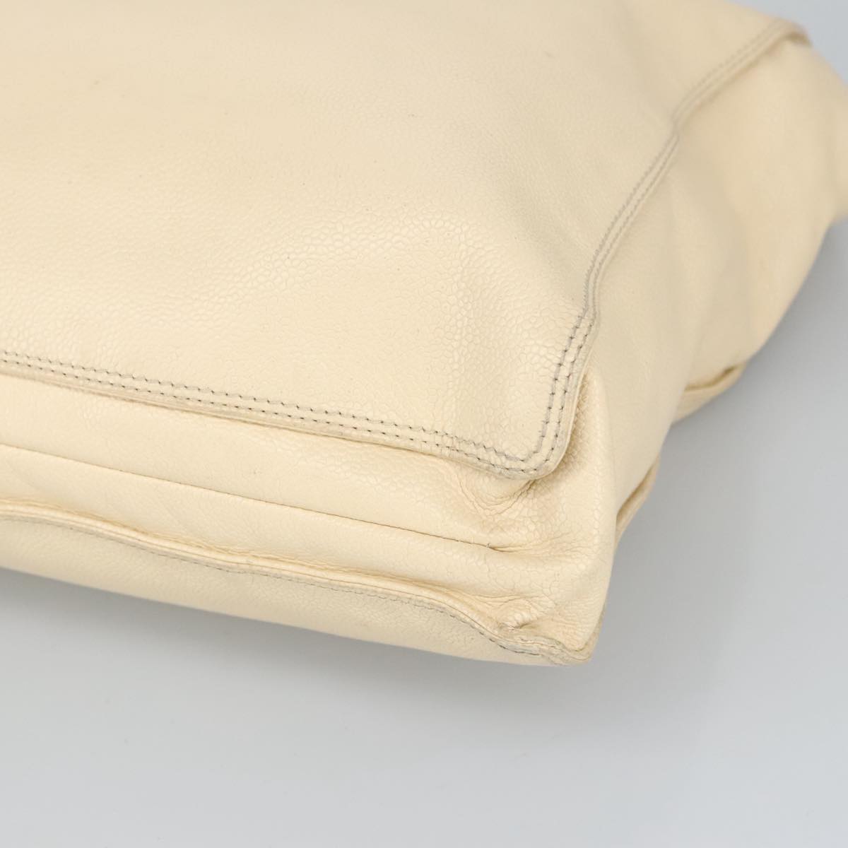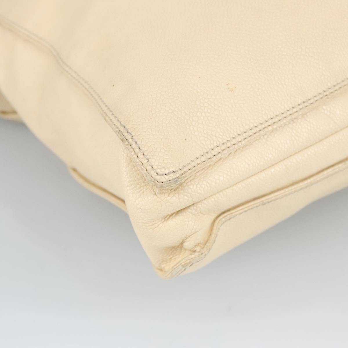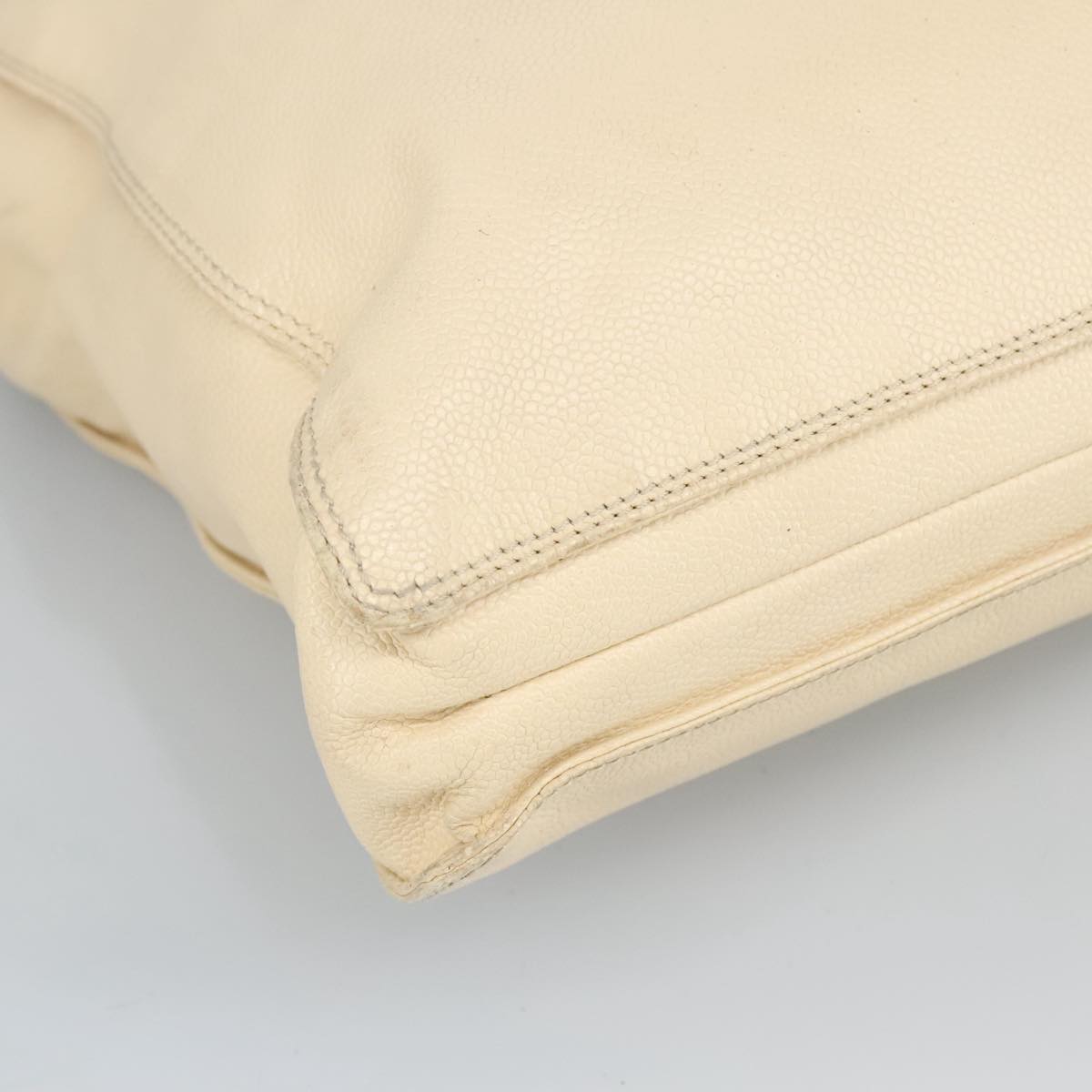 CHANEL Wood Hand Bag Caviar Skin Beige Brown Gold CC bs20161