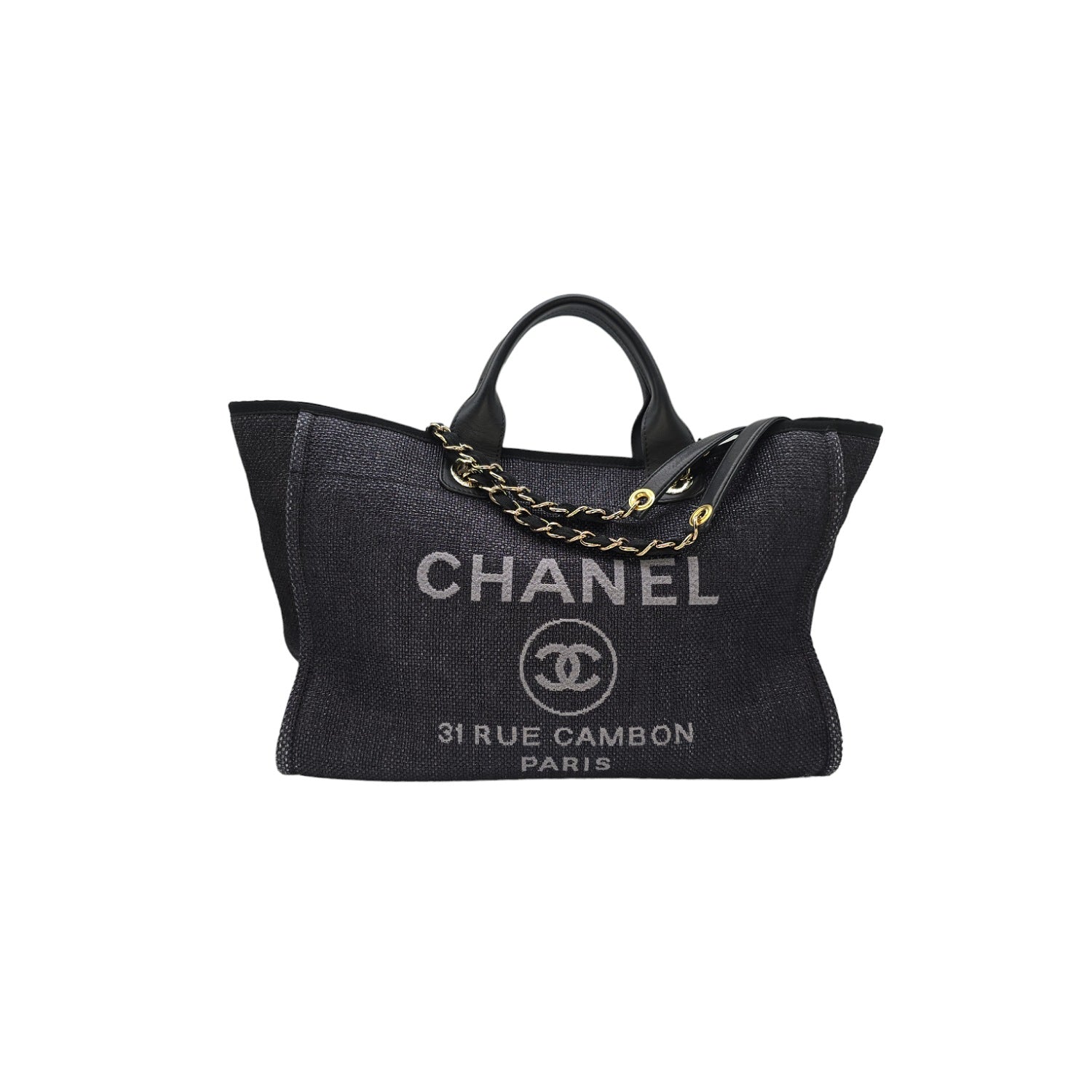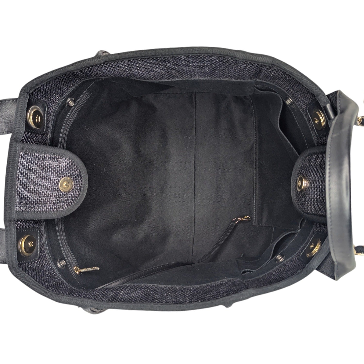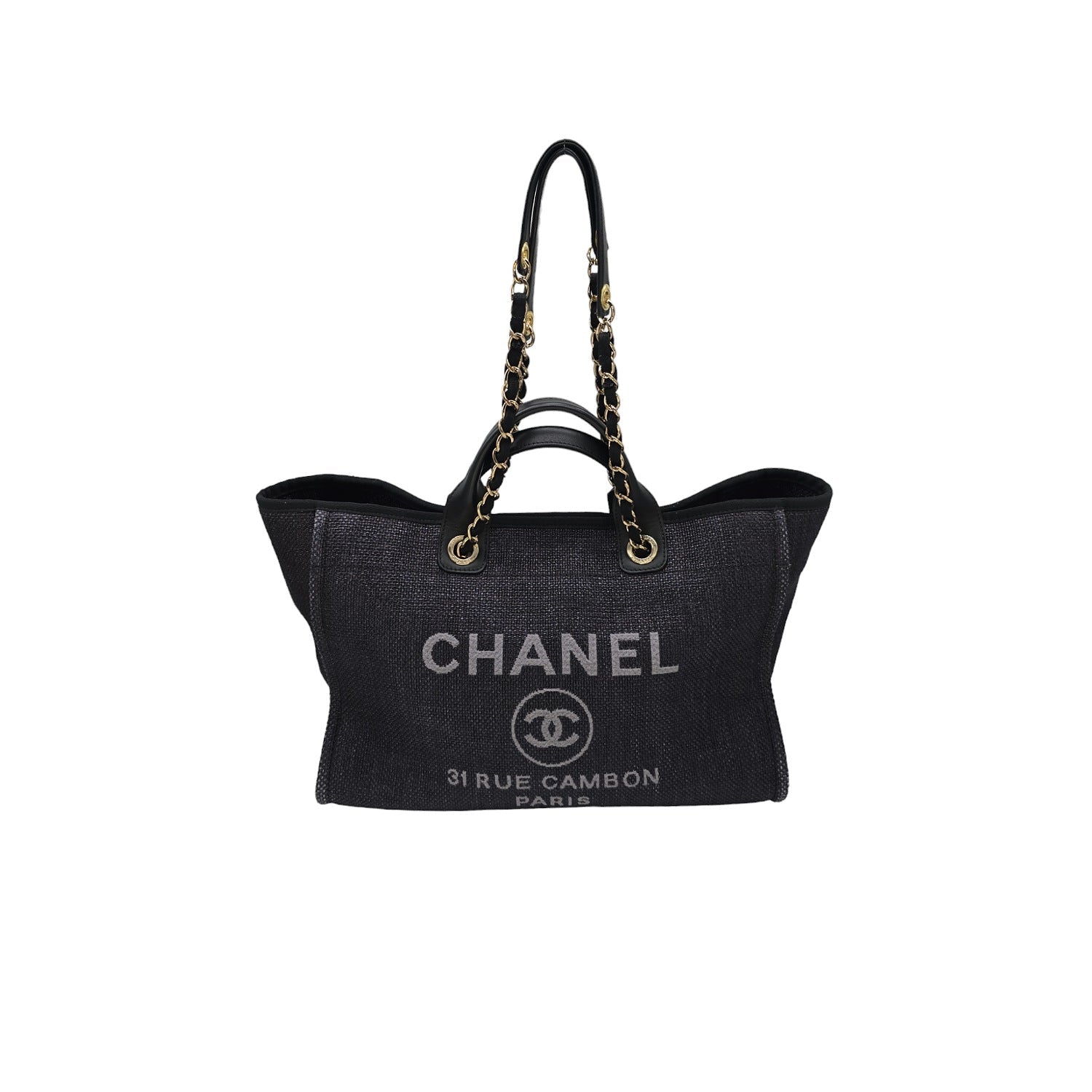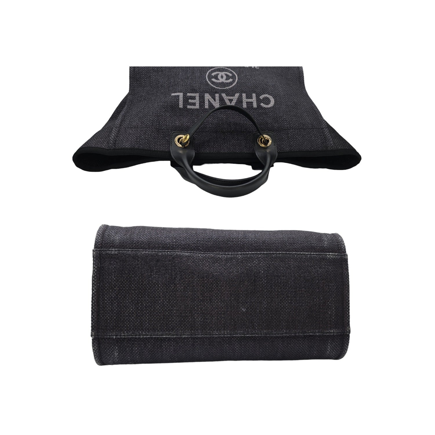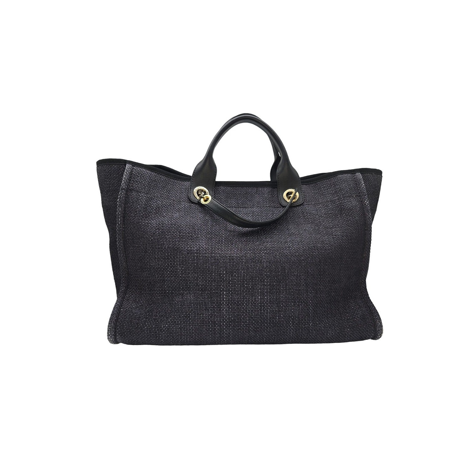 Chanel Woven Straw Raffia Medium Deauville Tote Black
