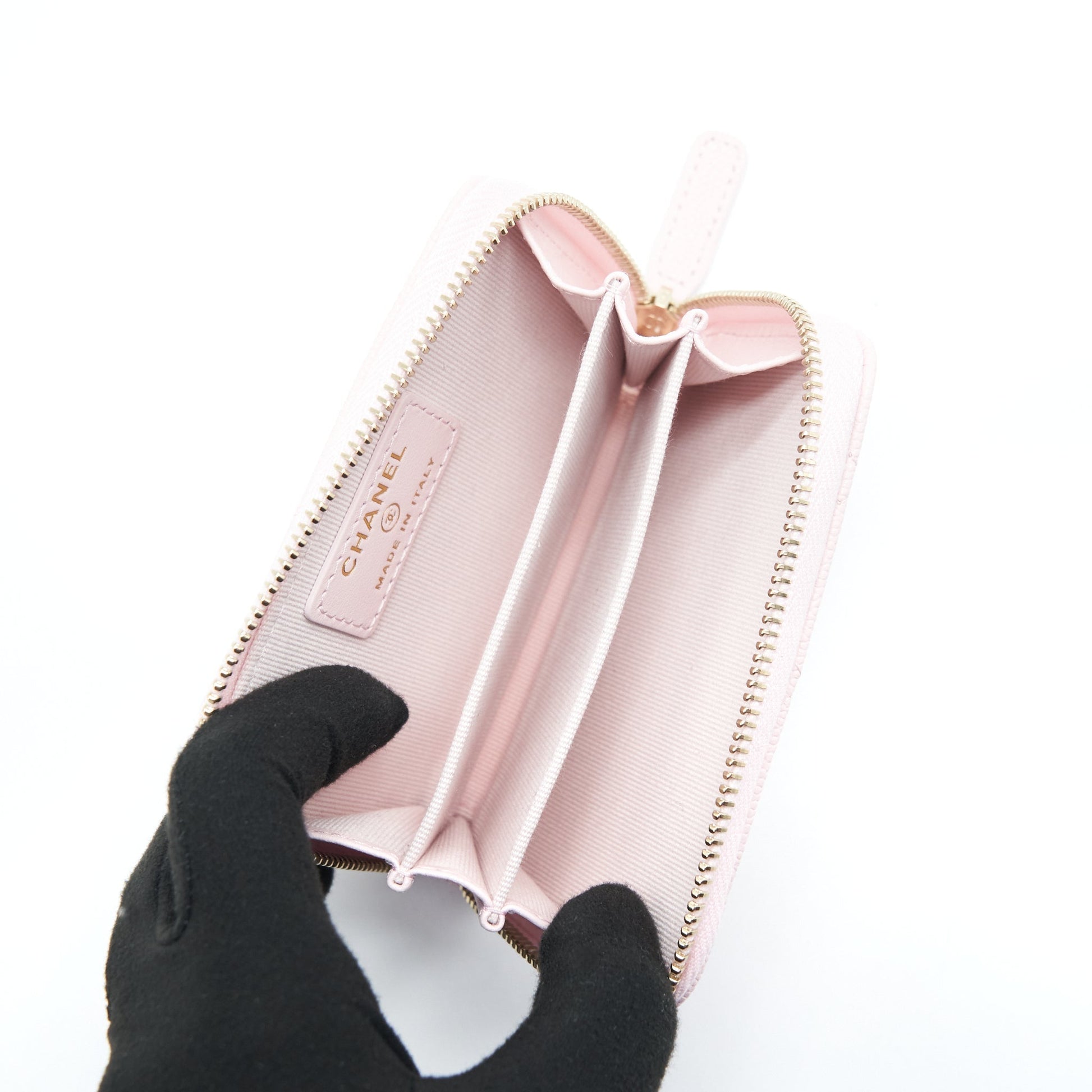 Chanel Zip Card Holder Caviar Light Pink LGHW