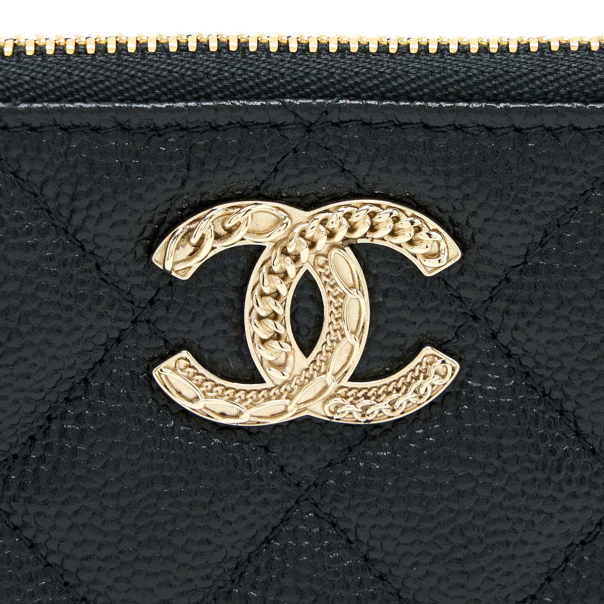 Chanel Zippy Small Pouch Detailed Logo Caviar Black LGHW