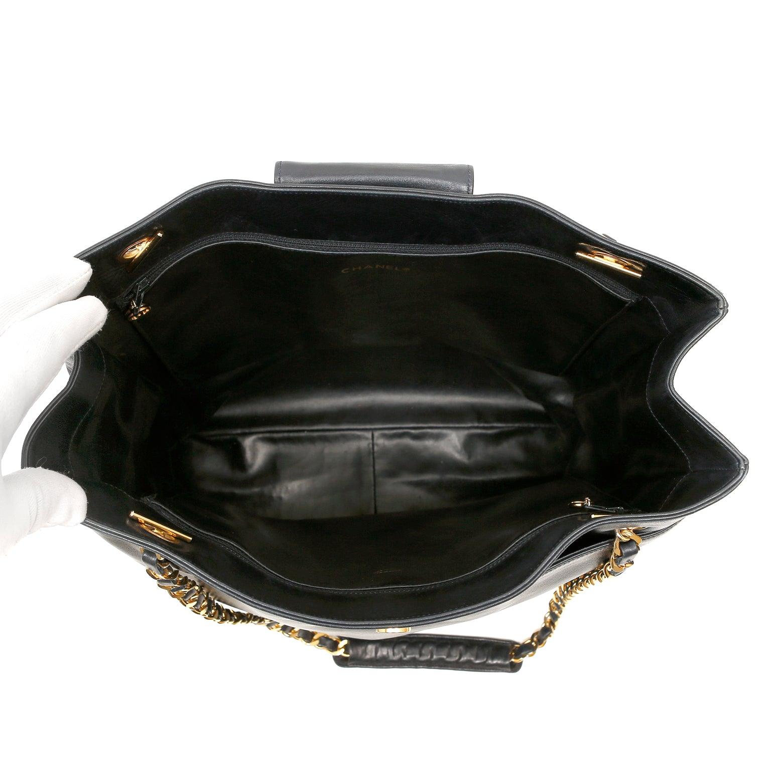 Chanel Vintage Navy Blue Lambskin Tote with Gold Hardware