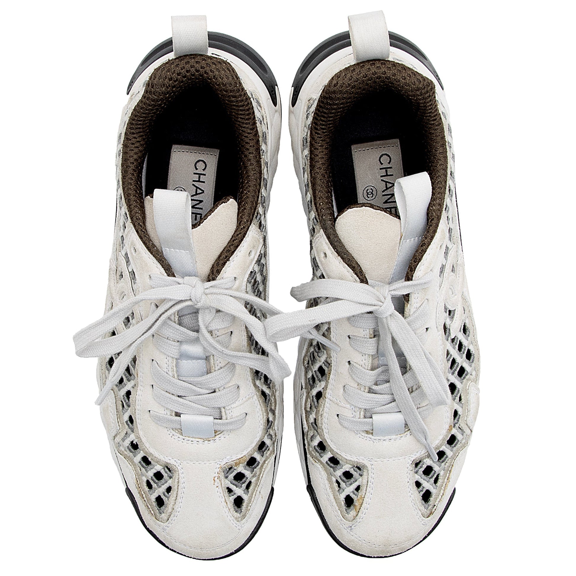Chanel Suede Calfskin Embroidered CC Sneakers - Size 8 / 38 (SHF-22982)
