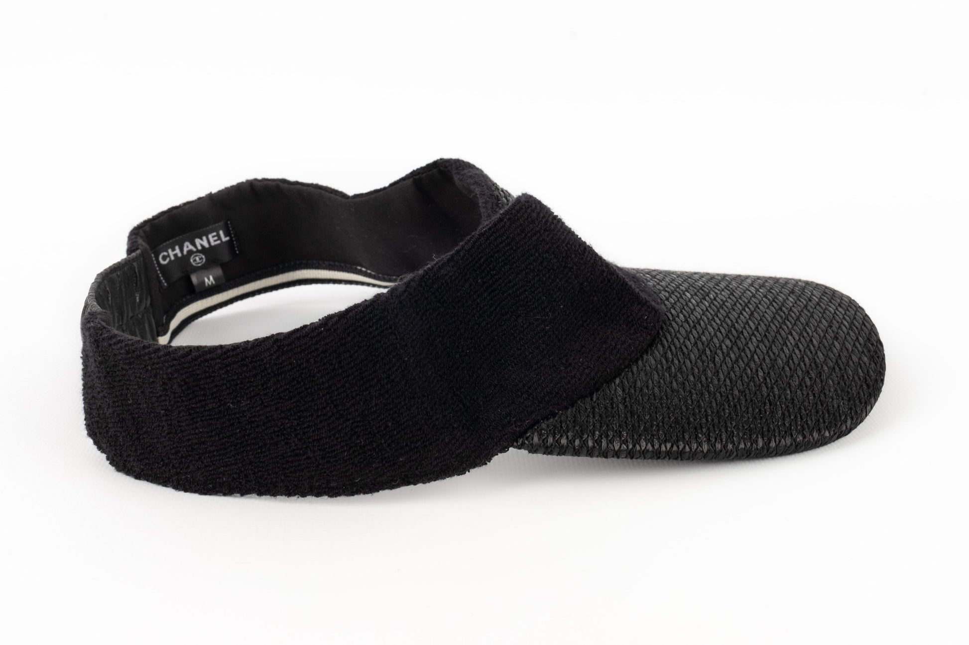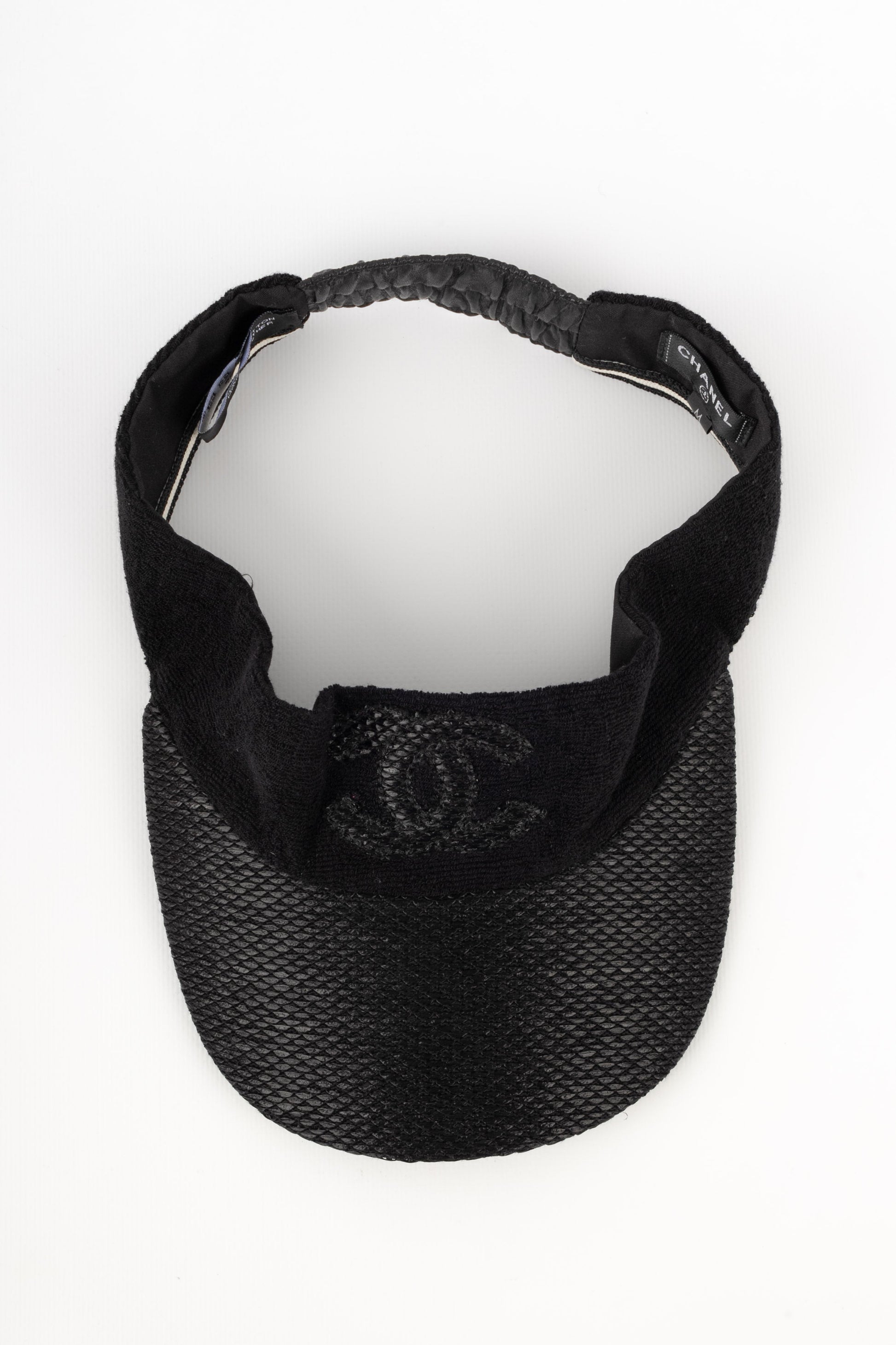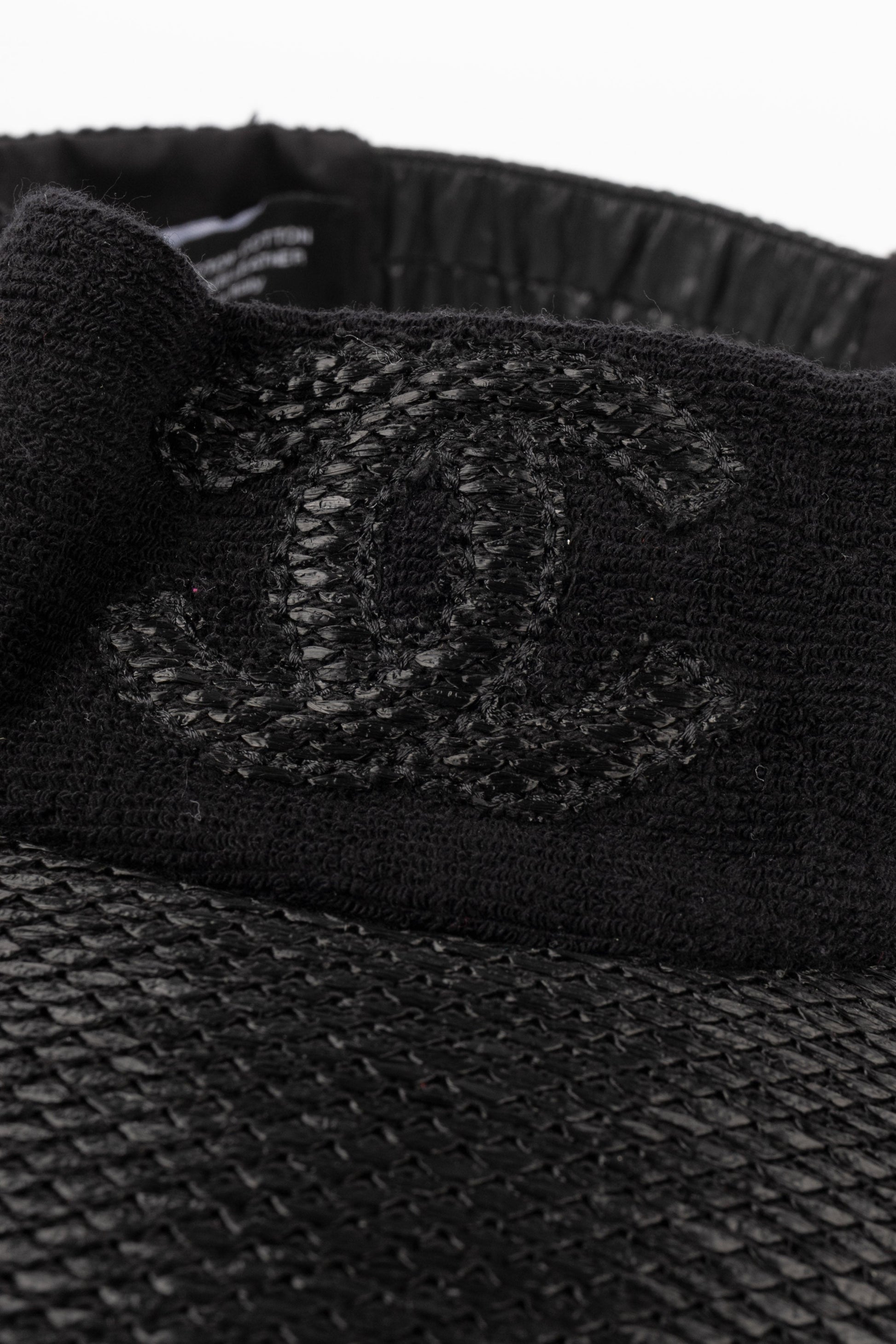 CHANEL - (Made in Italy) Casquette en coton, raphia et cuir.
