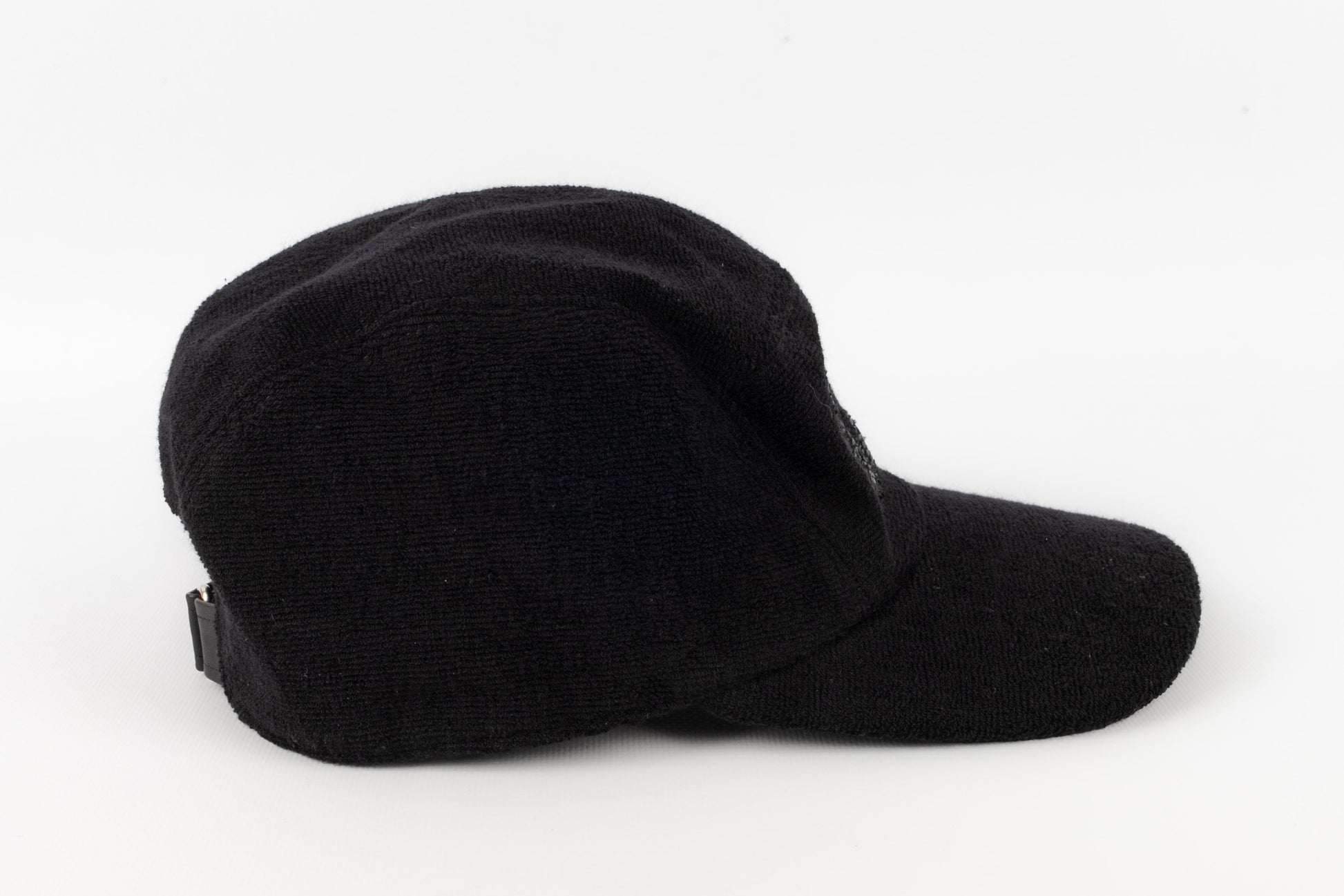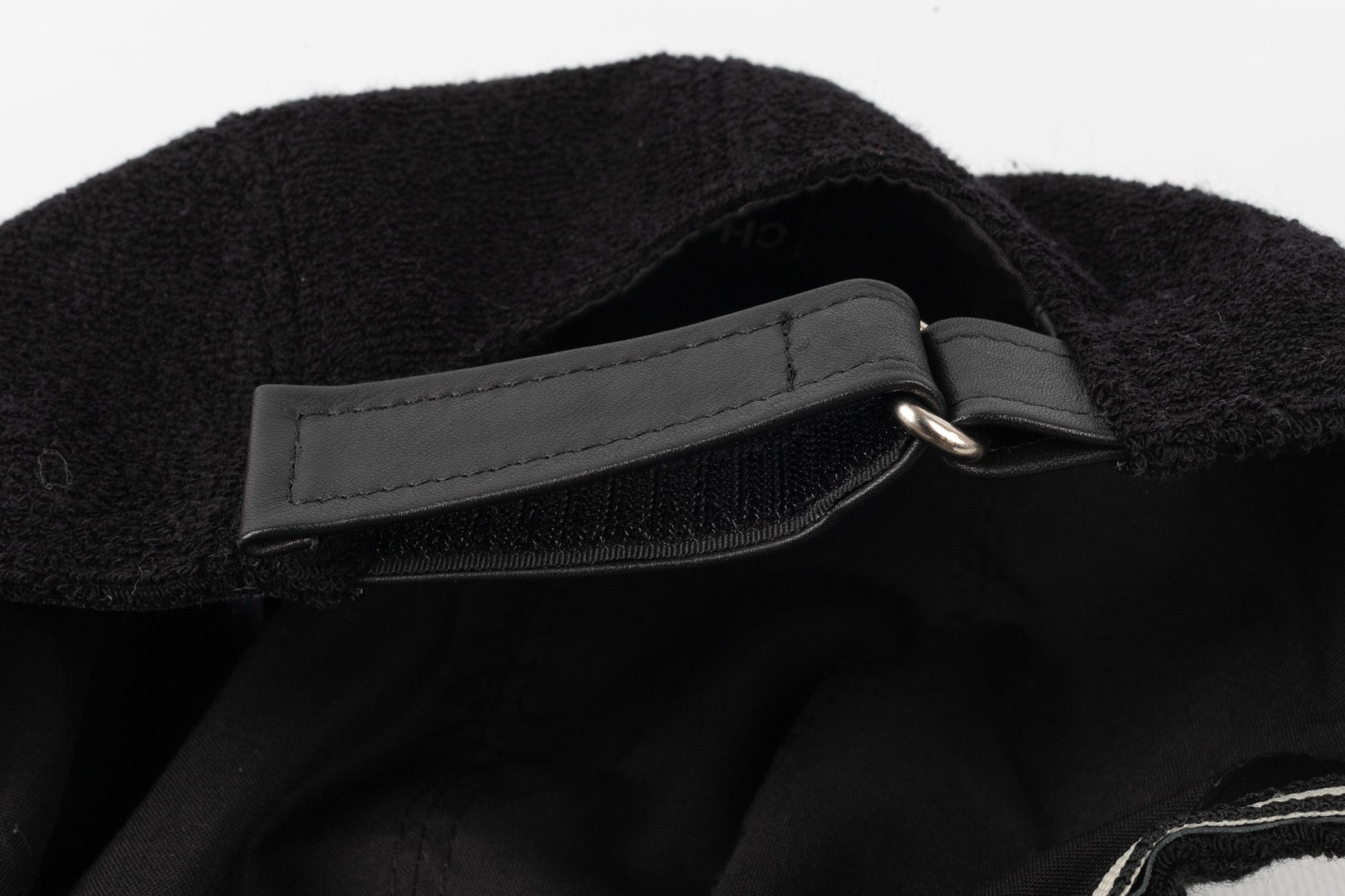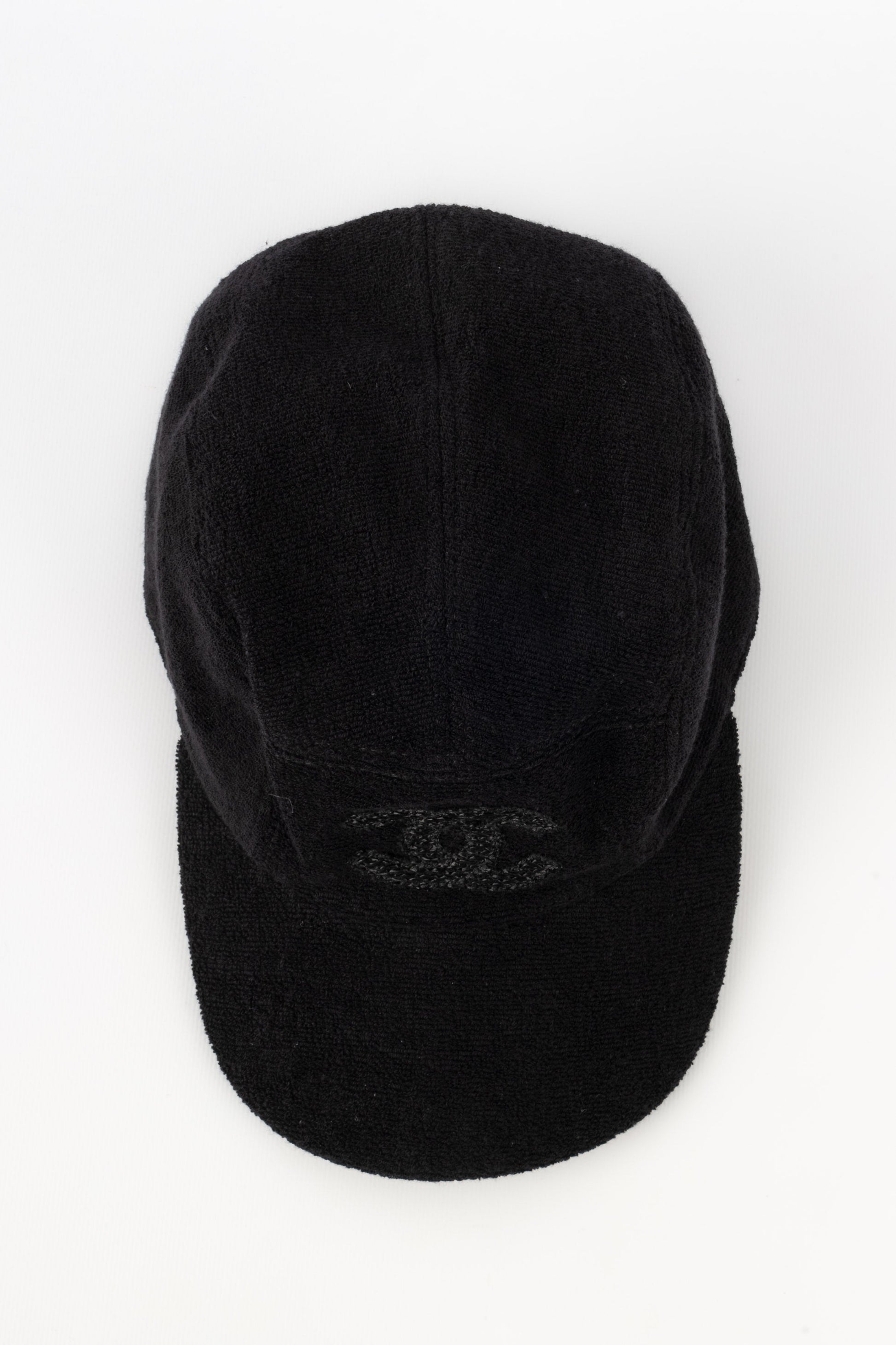 CHANEL - (Made in Italy) Casquette en coton et raphia noir.