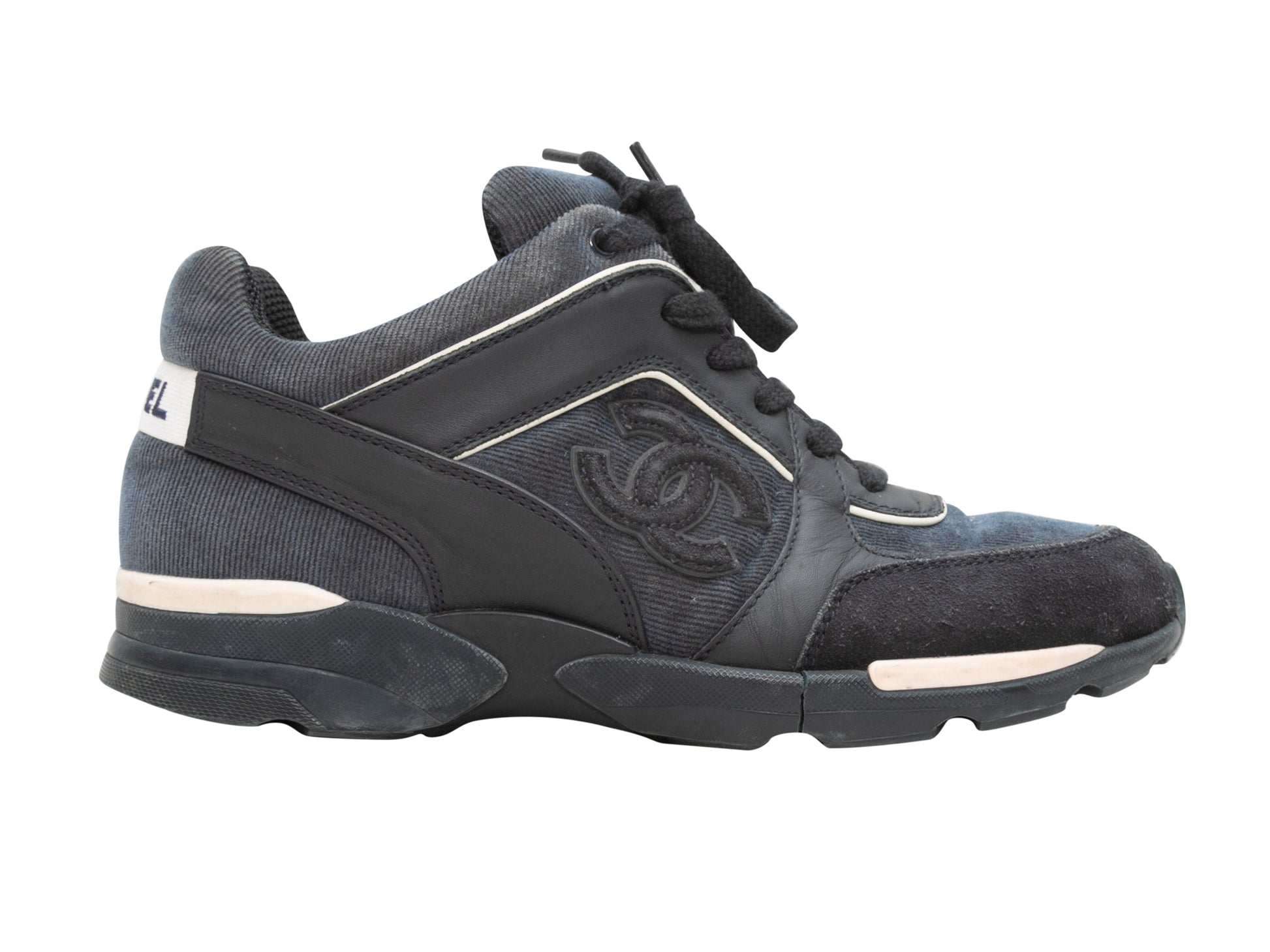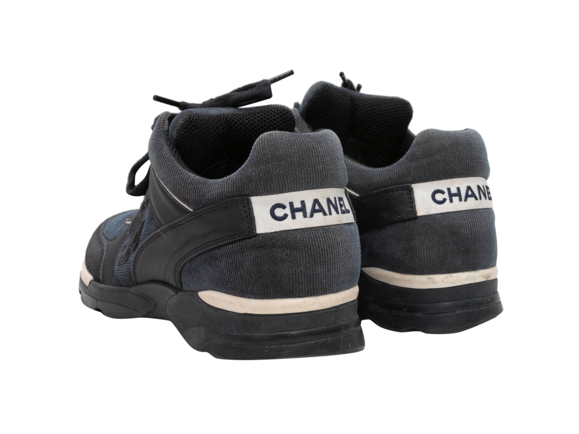 Charcoal & Navy Chanel CC Corduroy Low-Top Sneakers Size 37