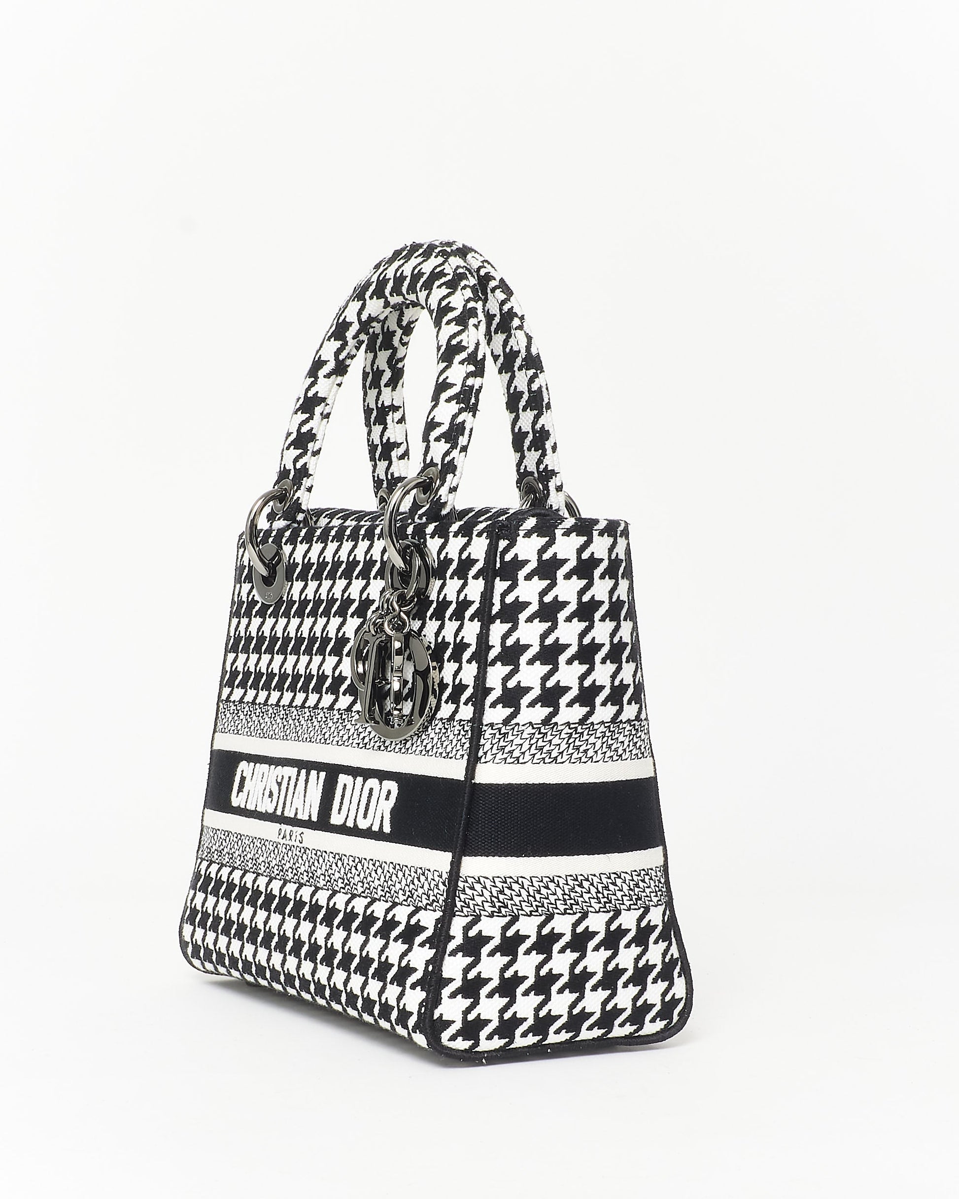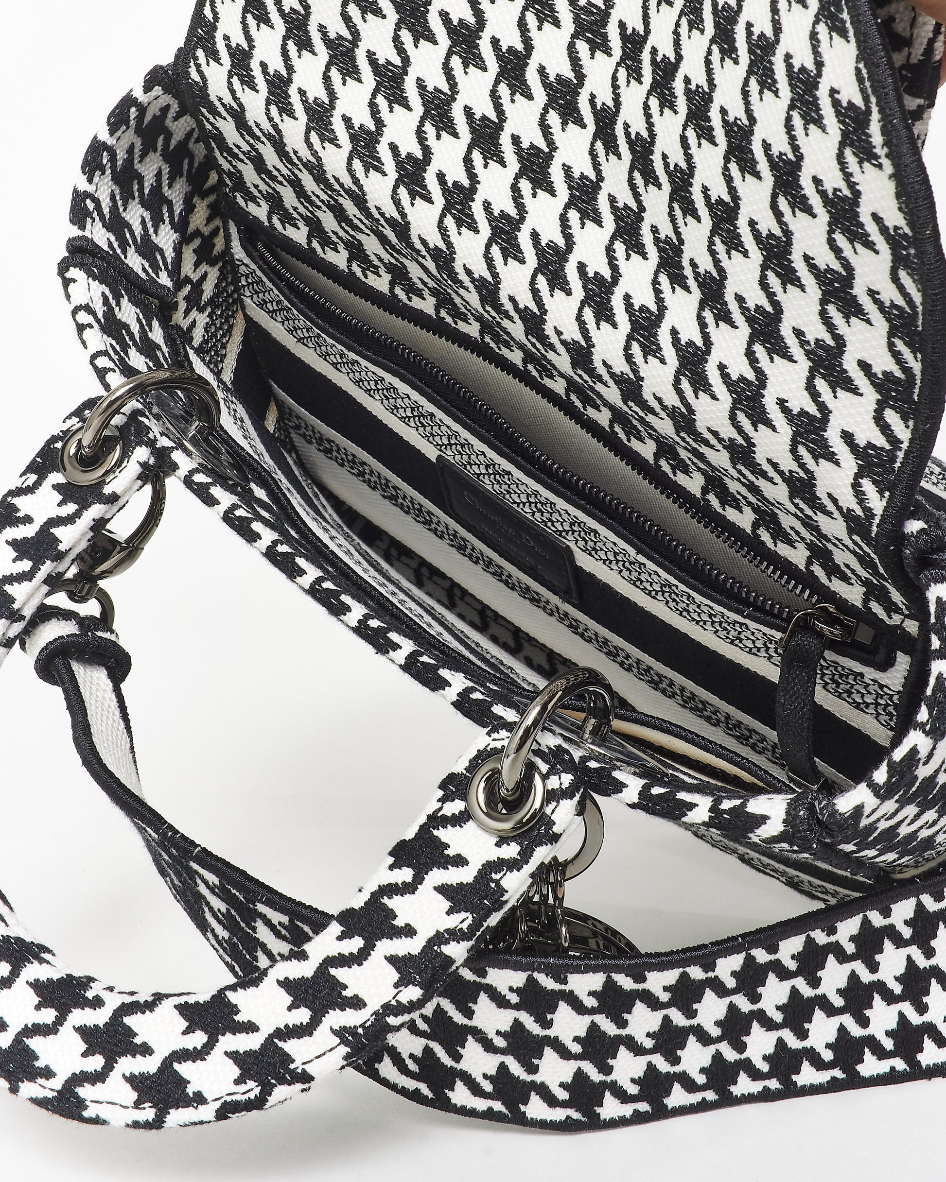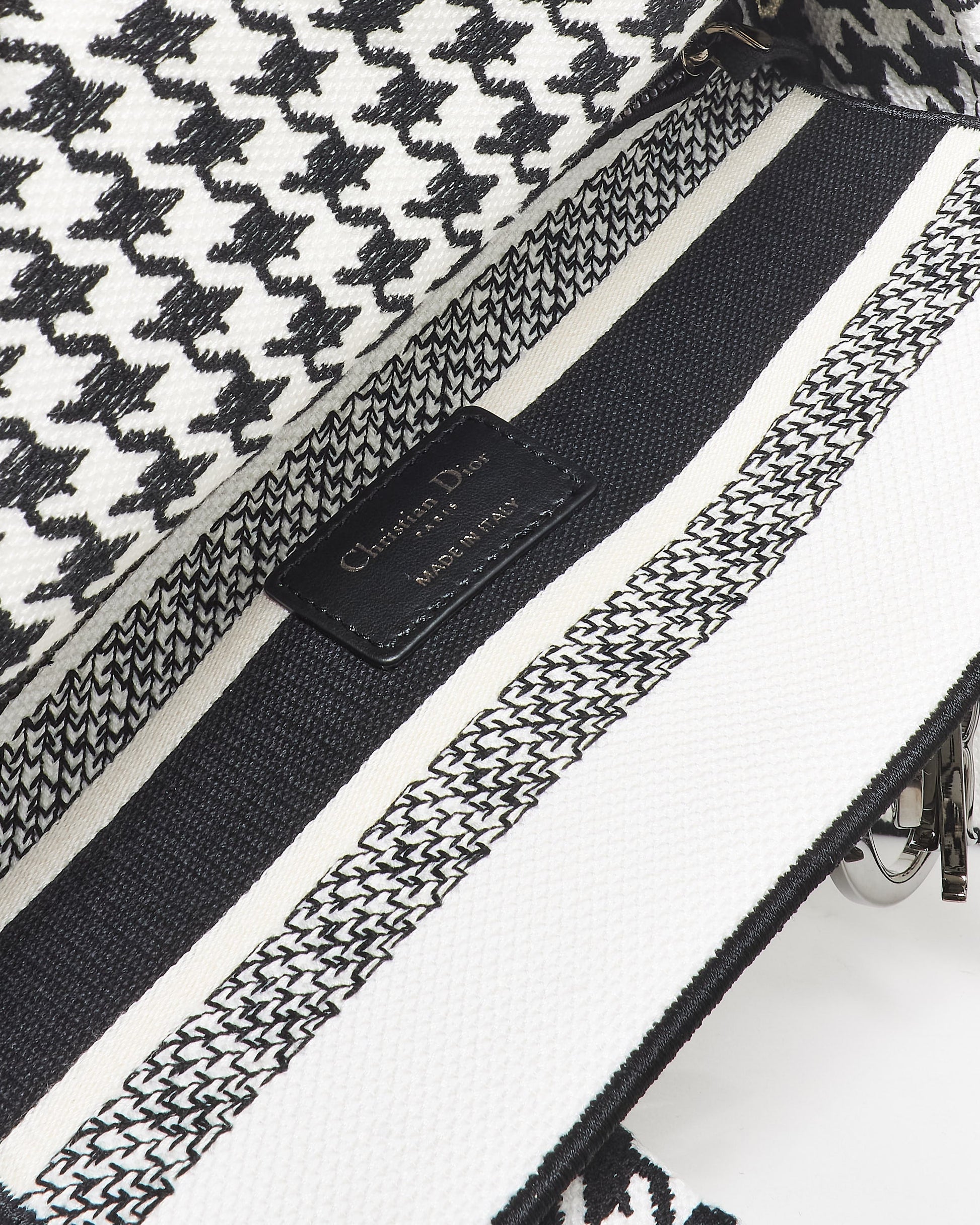Dior Black & White Houndstooth Embroidered Lady D - Lite Bag