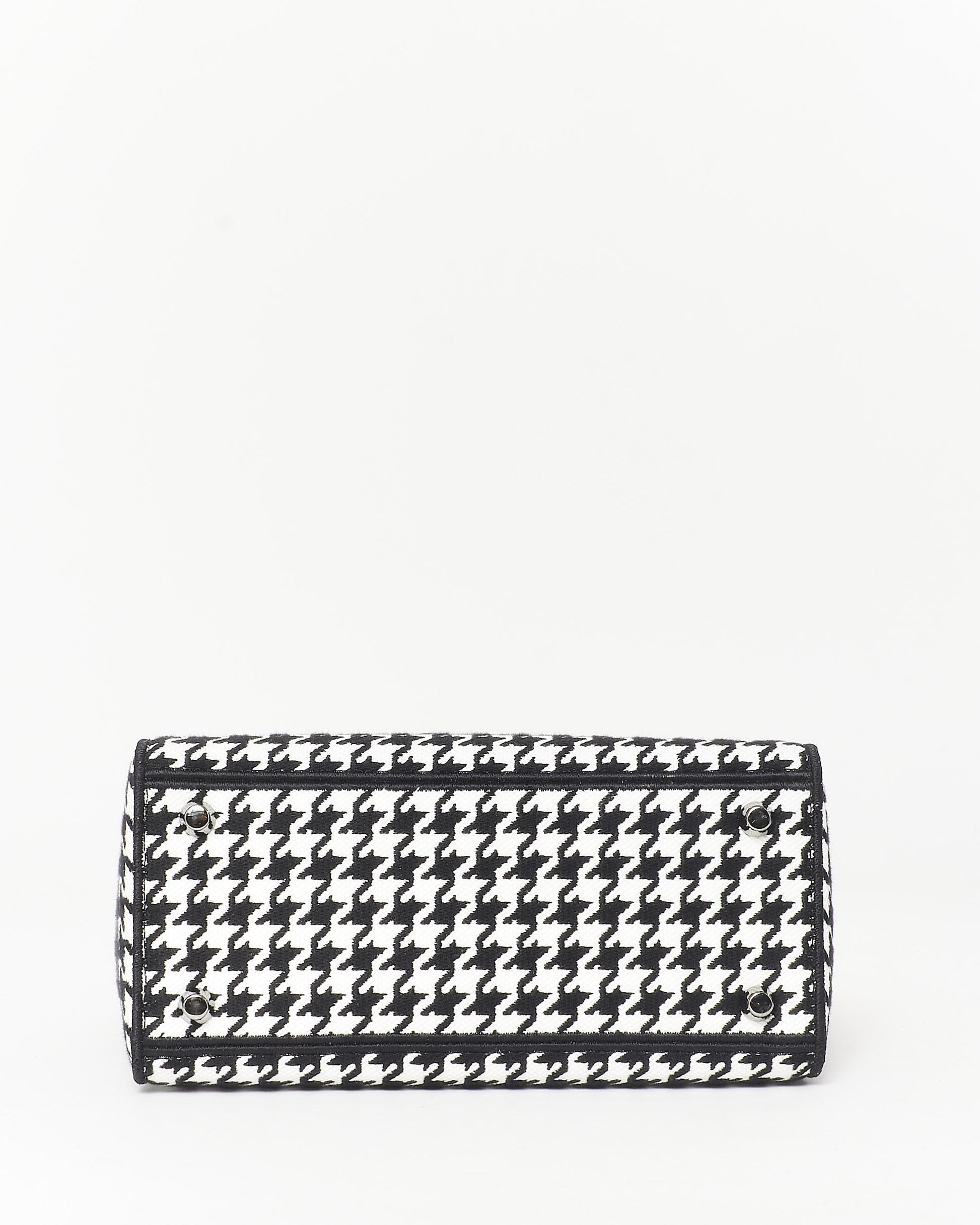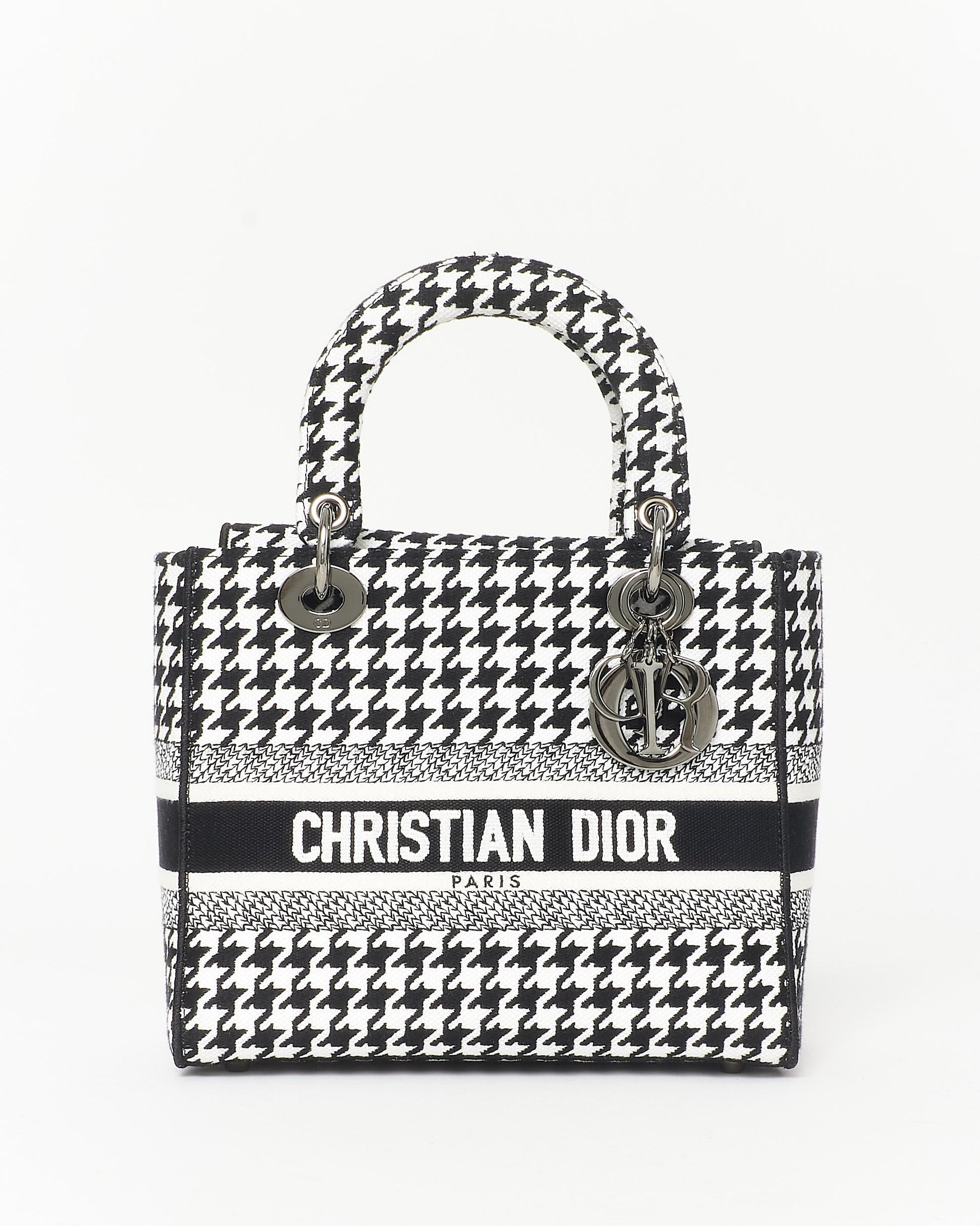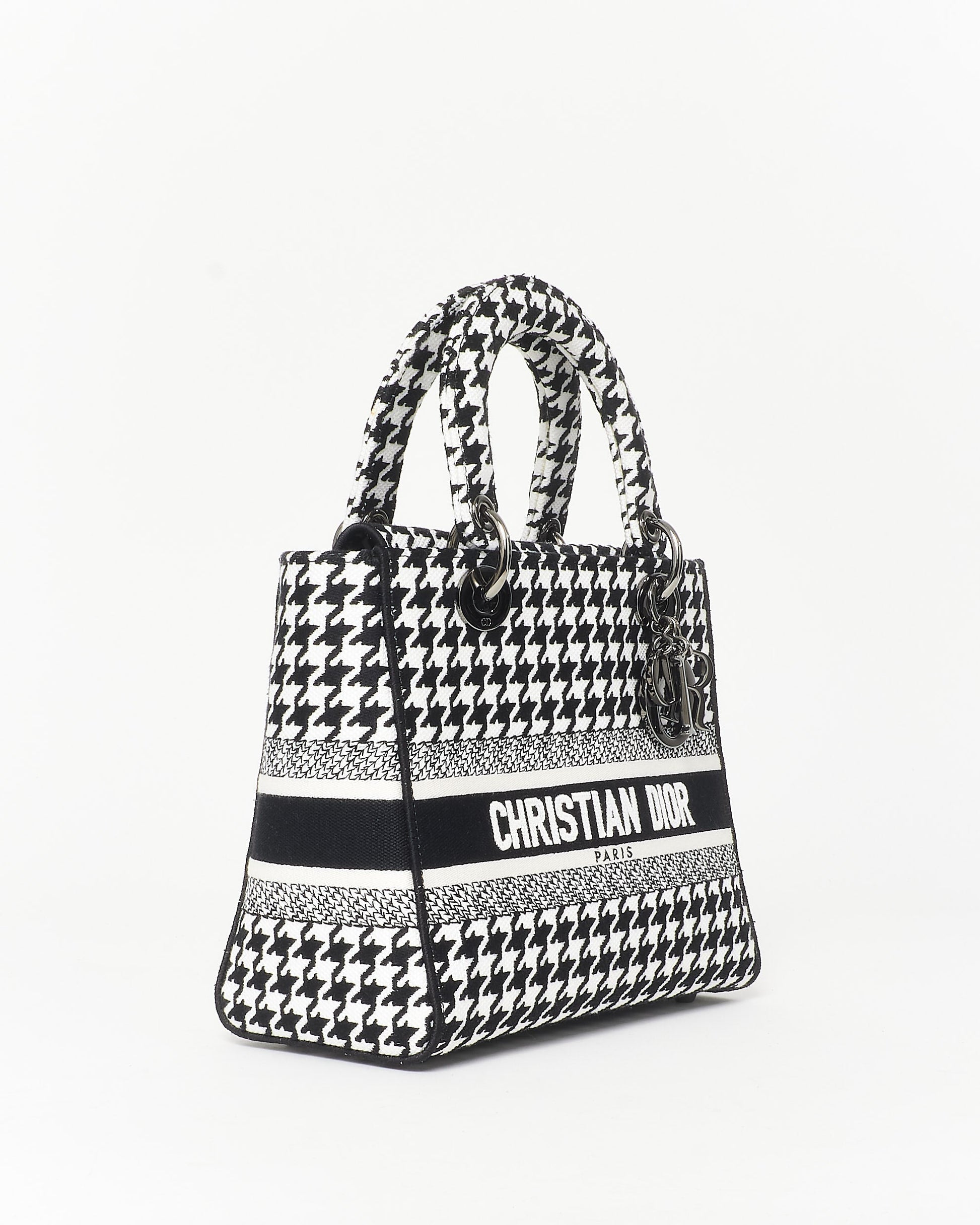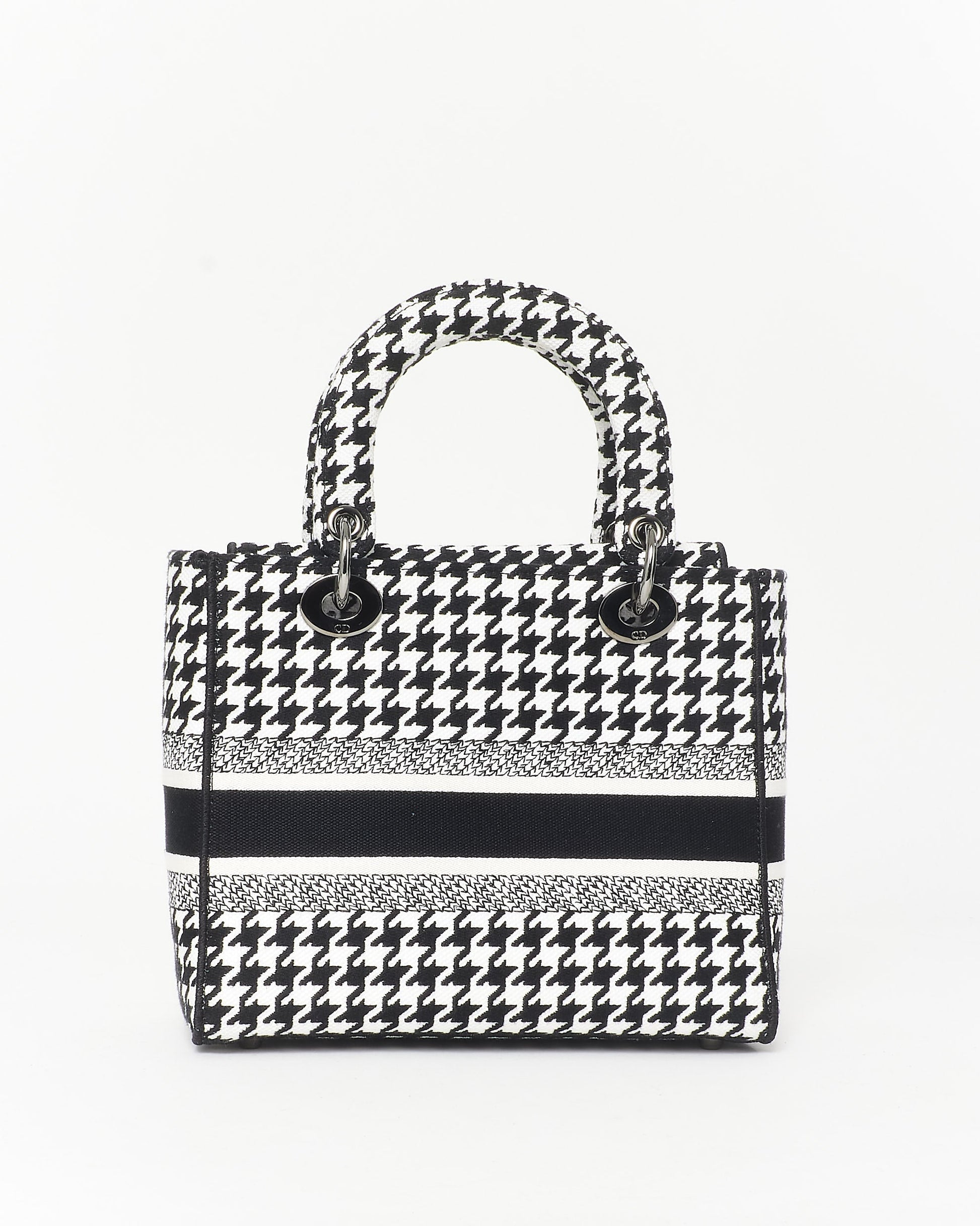Dior Black & White Houndstooth Embroidered Lady D - Lite Bag