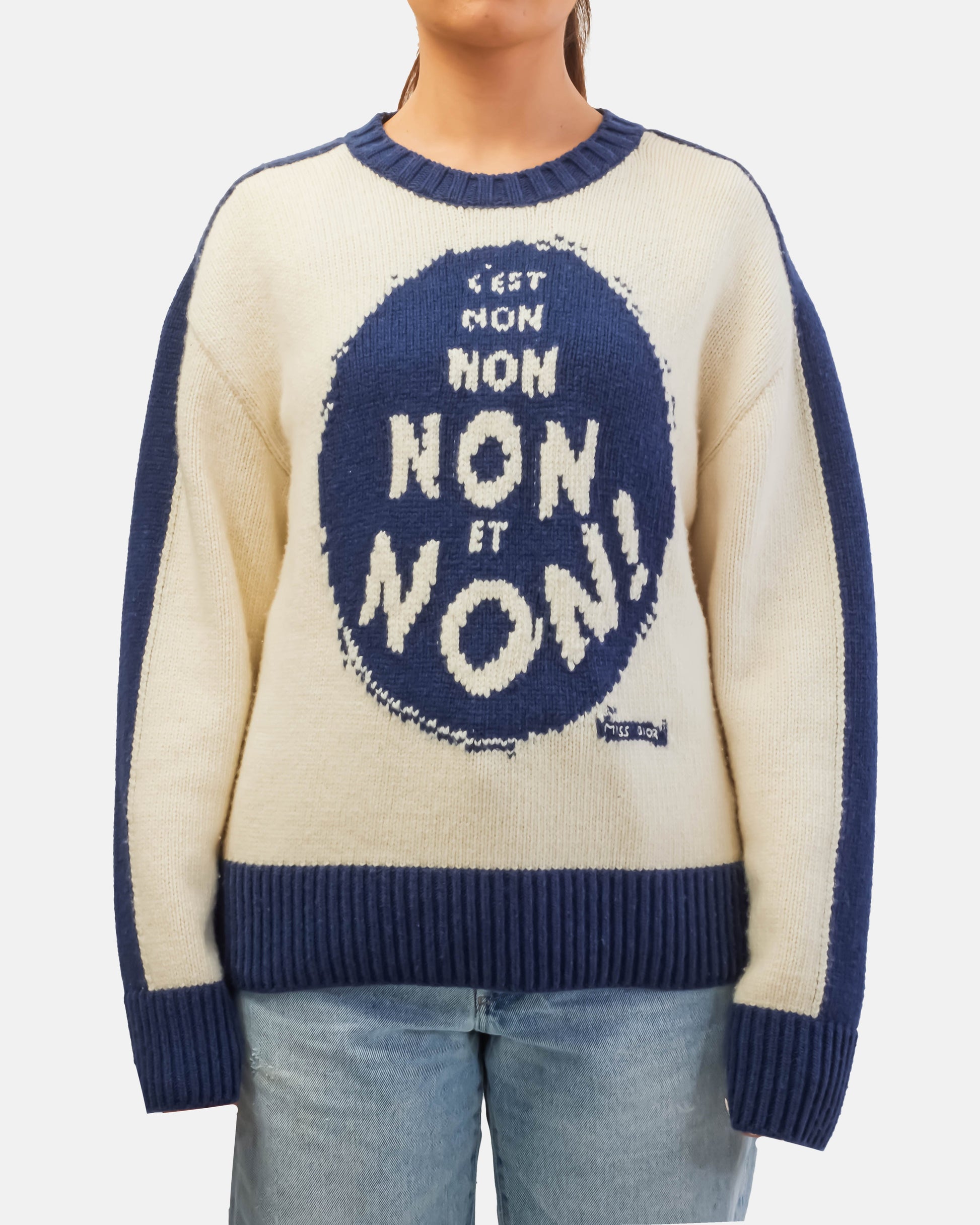 Dior Blue & White C'est Non Wool & Cashmere Knit Sweater - 40