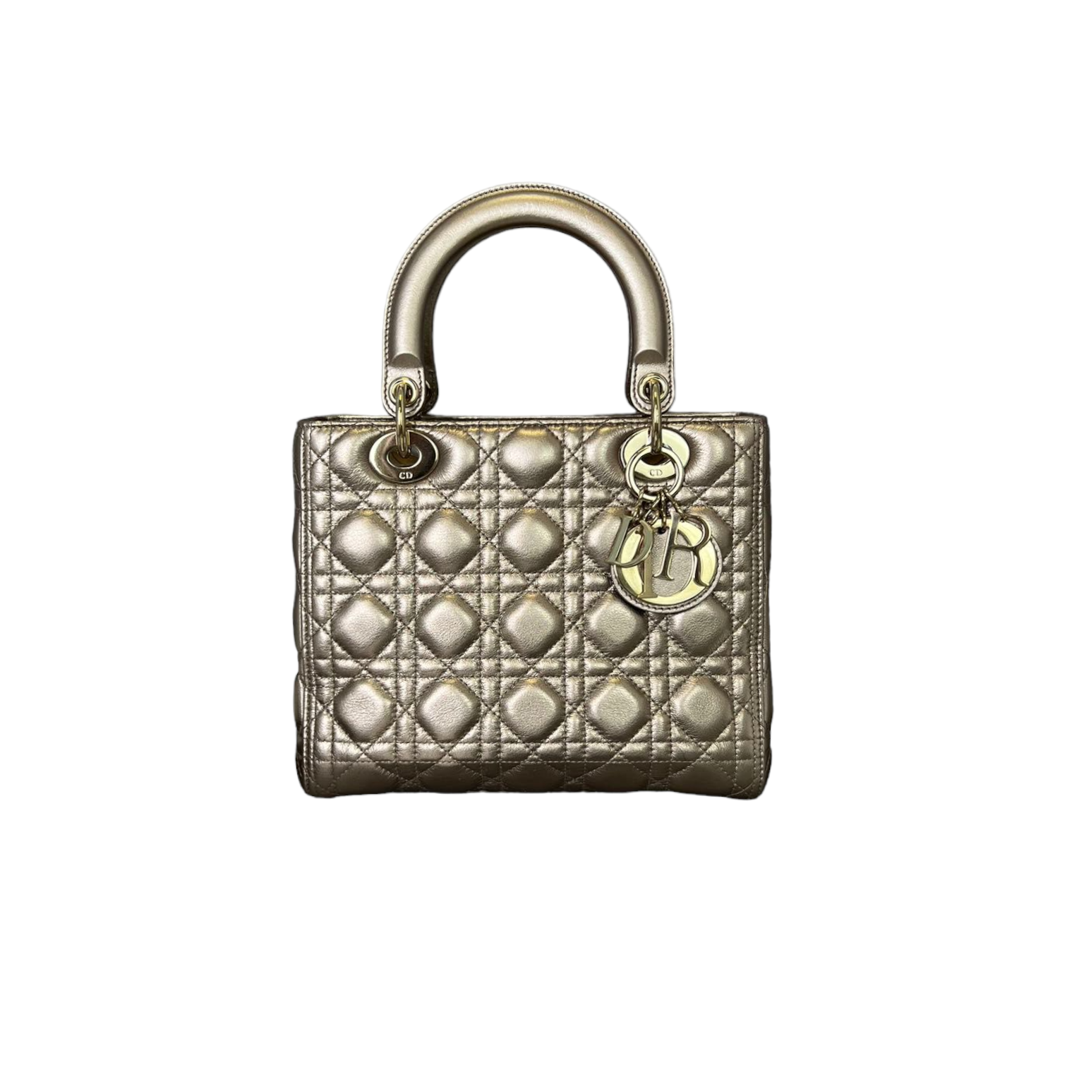Calfskin Cannage Medium Lady Dior Gold GHW