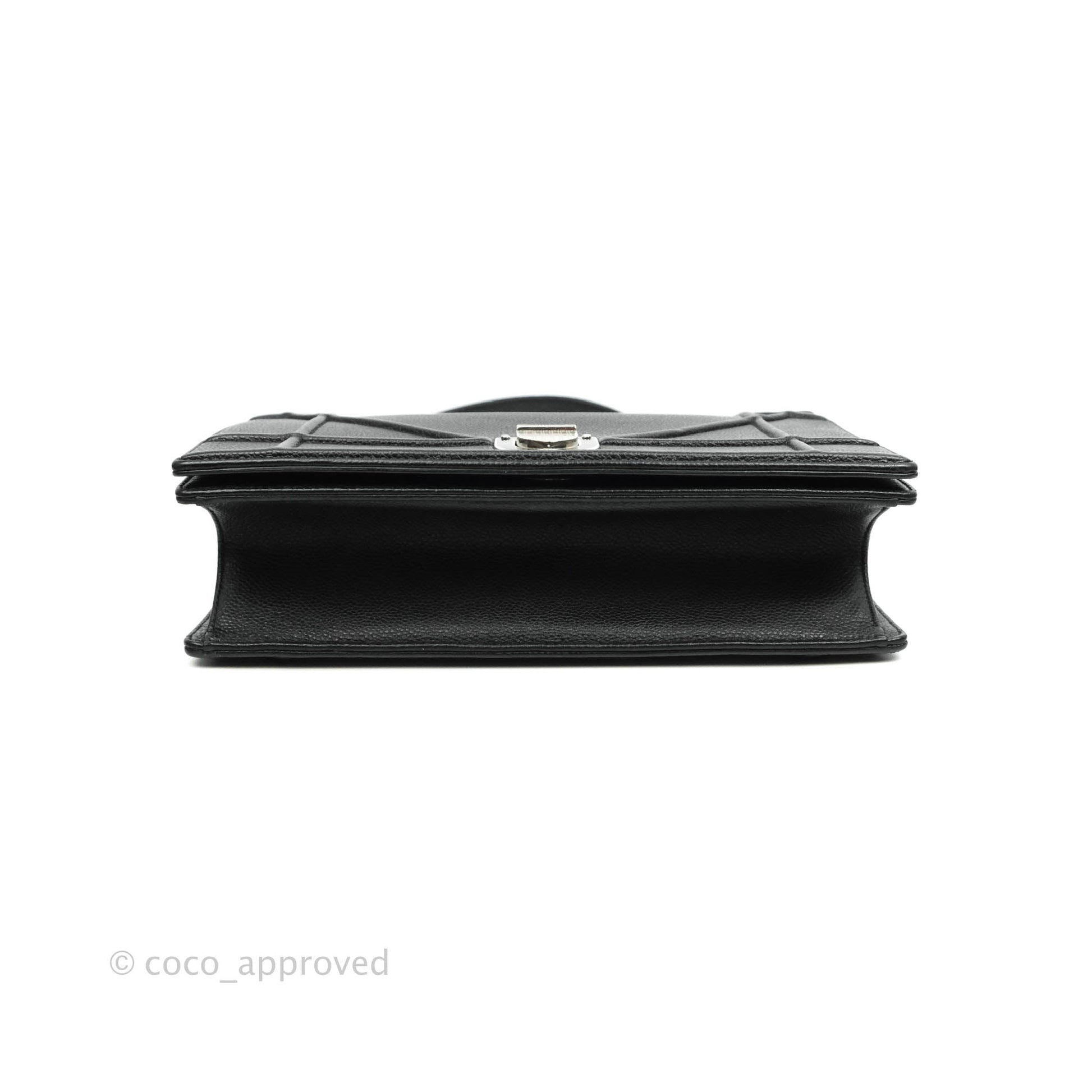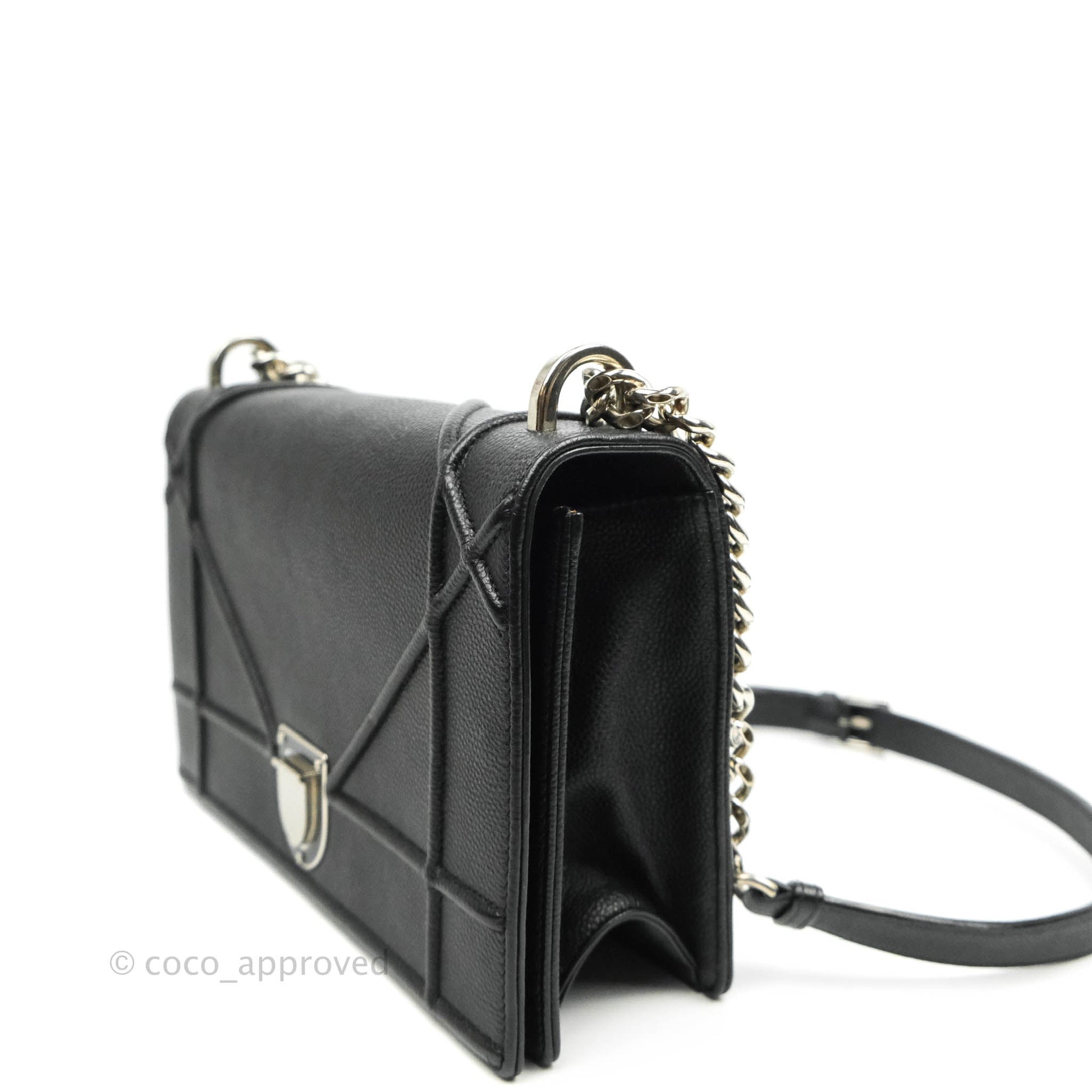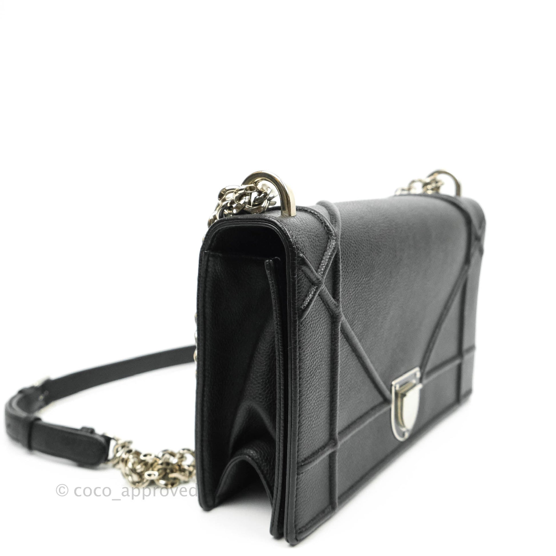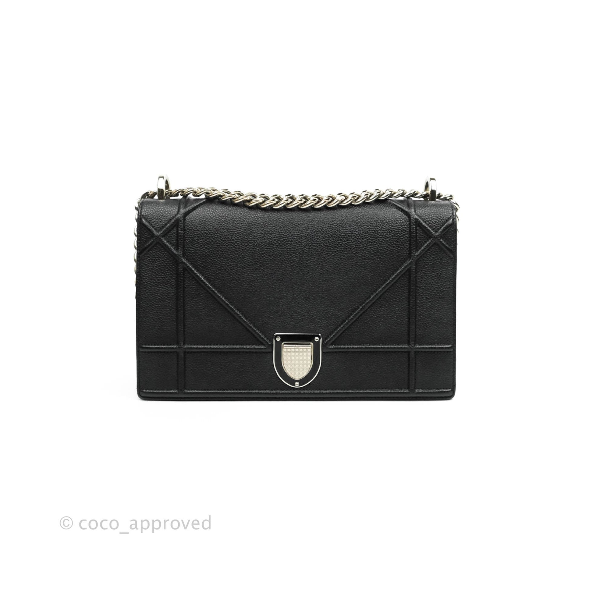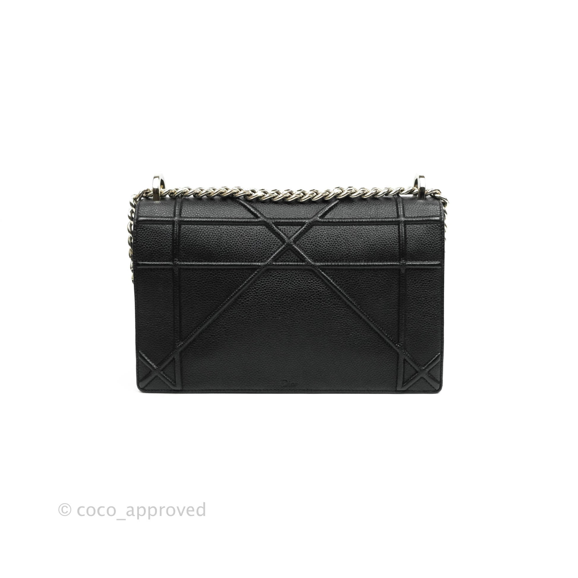 Christian Dior Diorama Medium Flap Shoulder Bag Black Grained Leather Silver Hardware