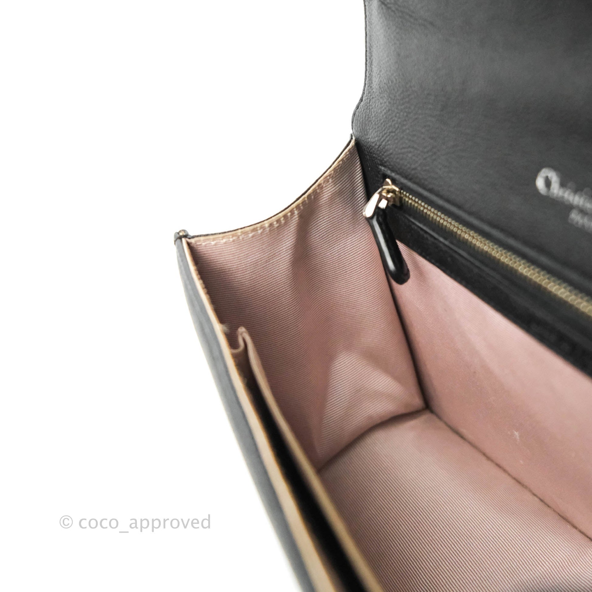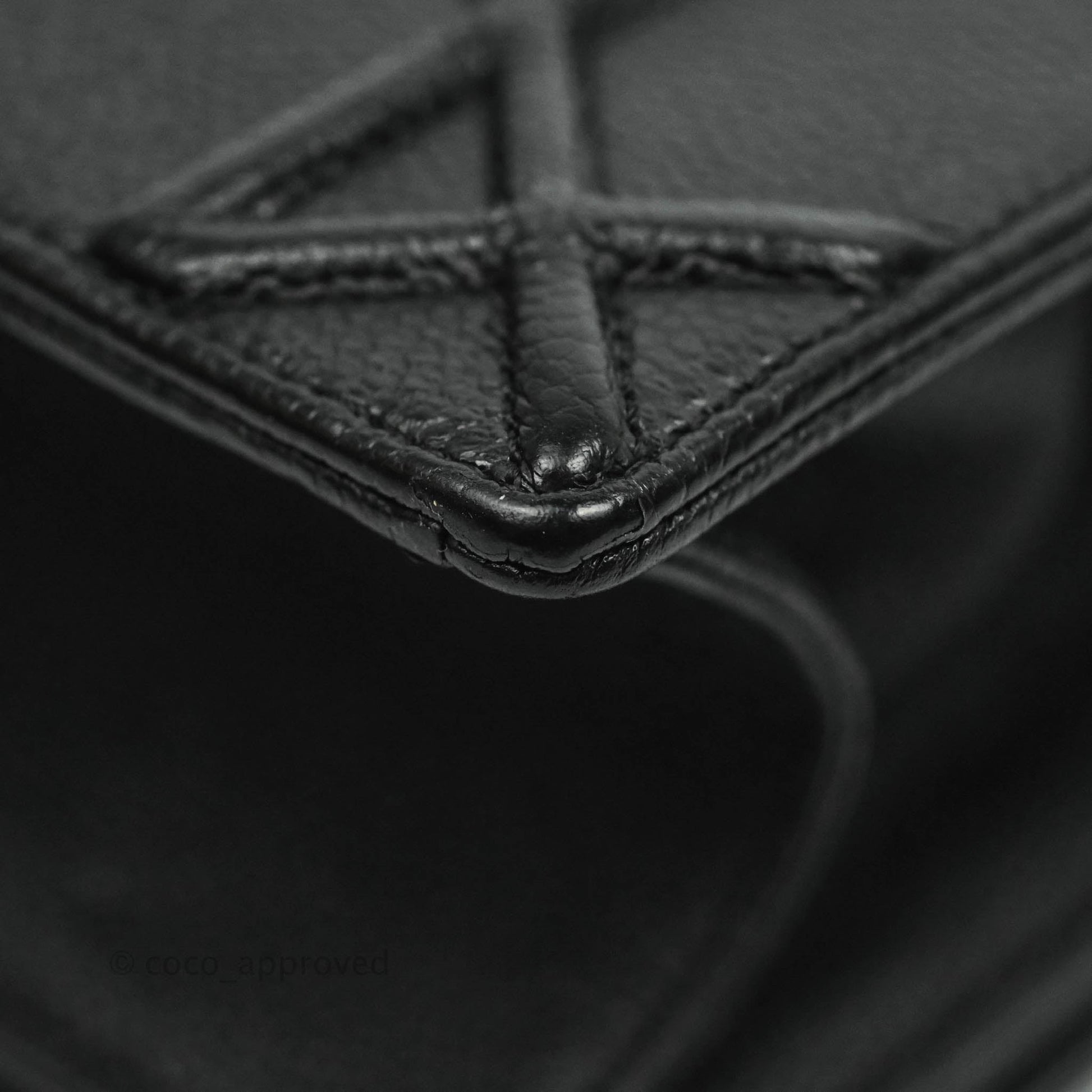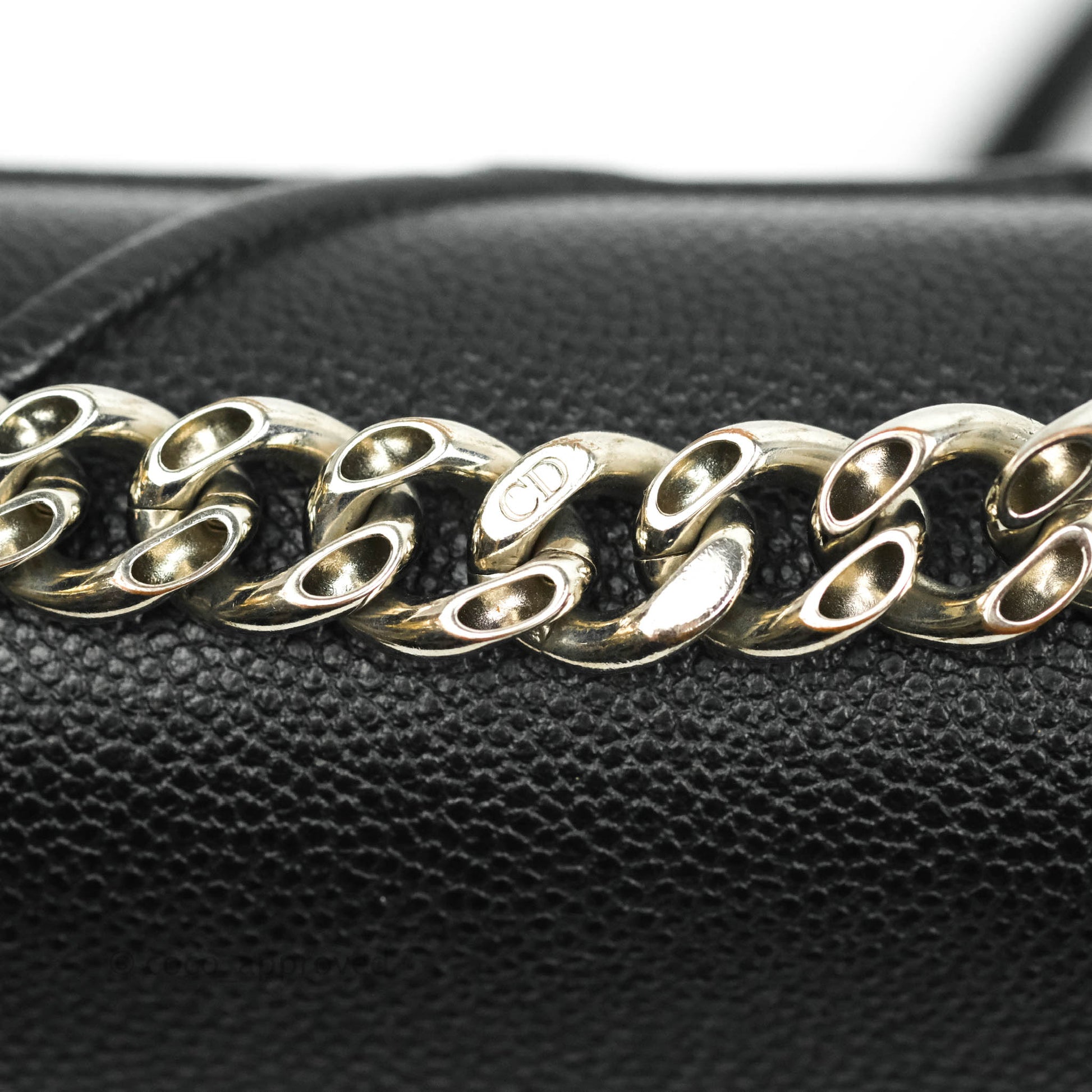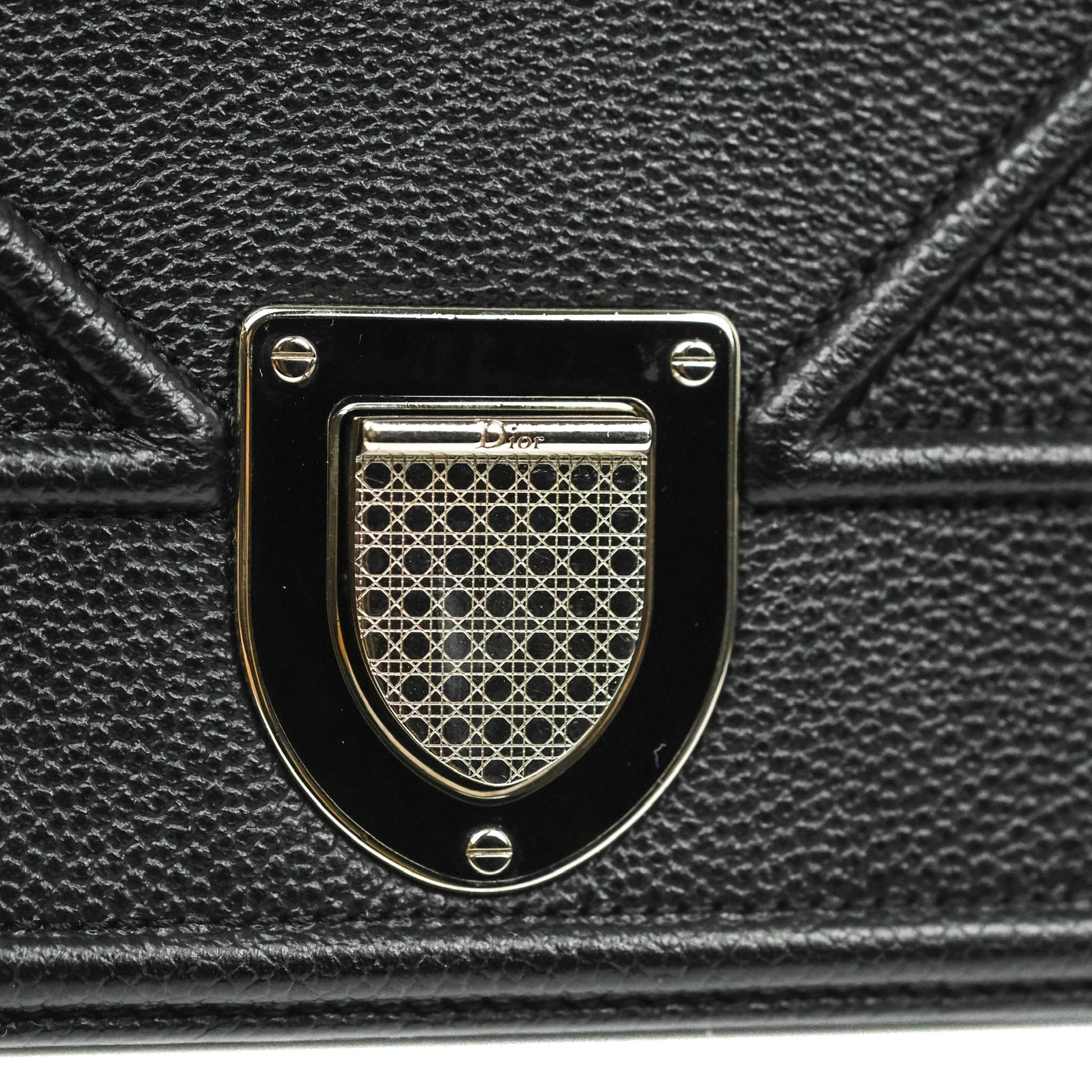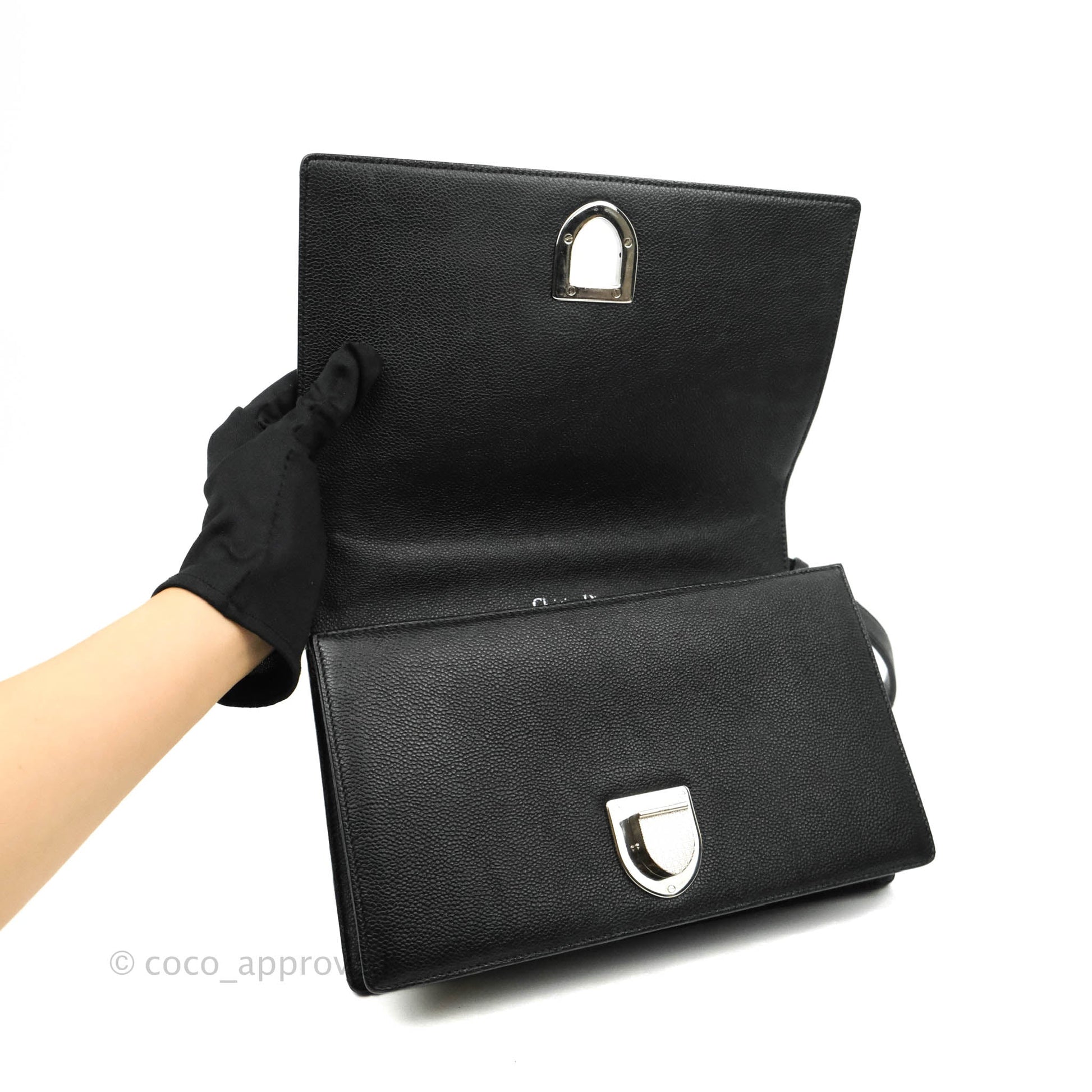 Christian Dior Diorama Medium Flap Shoulder Bag Black Grained Leather Silver Hardware