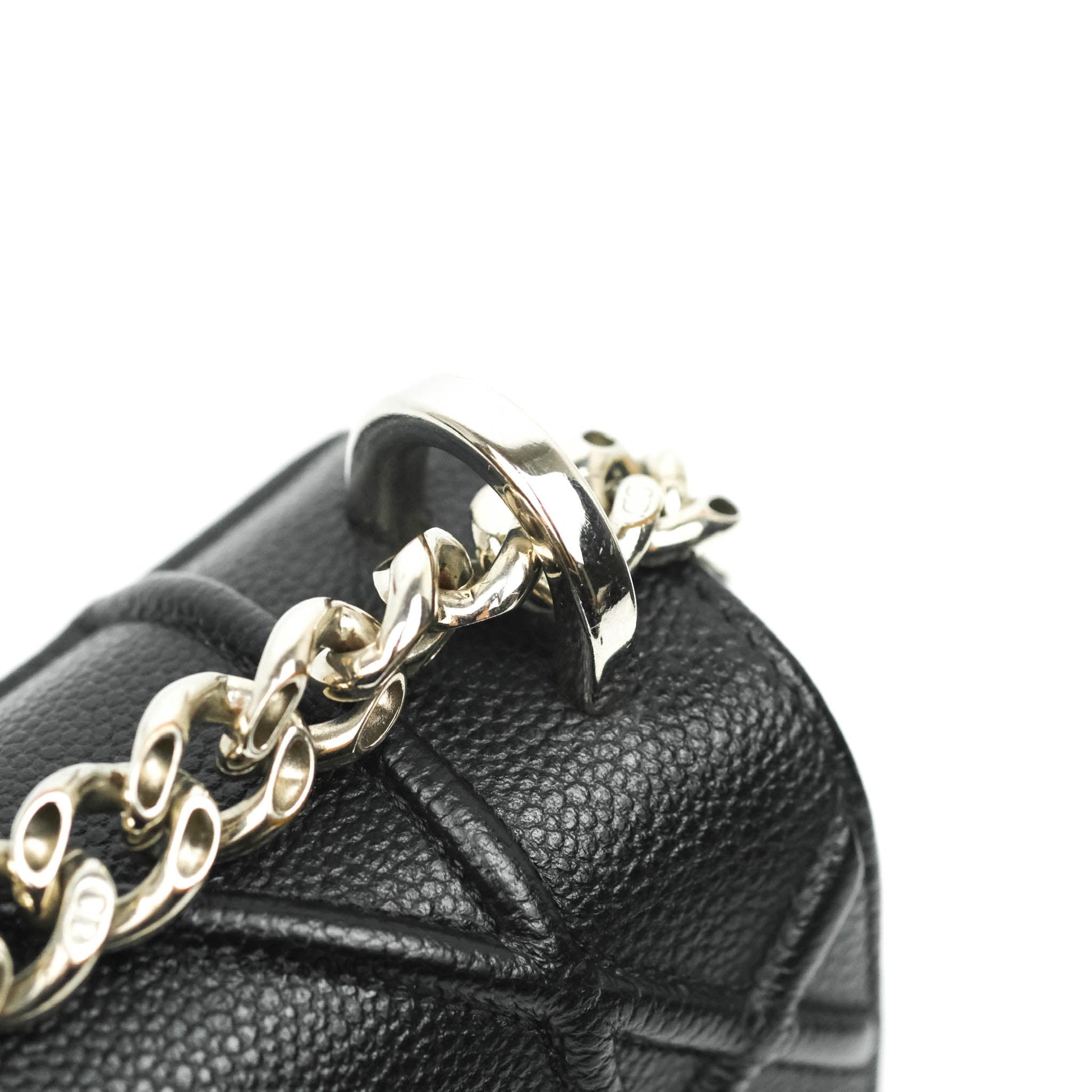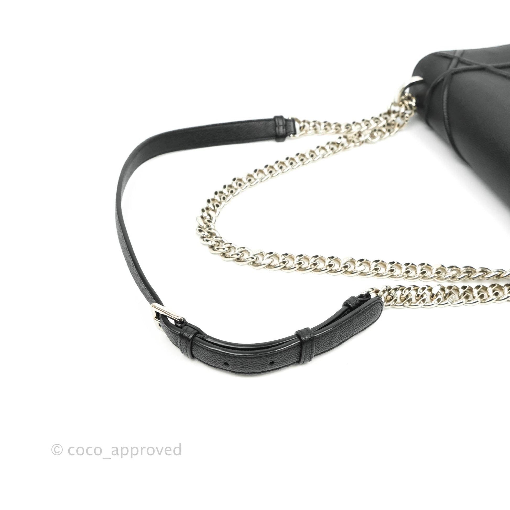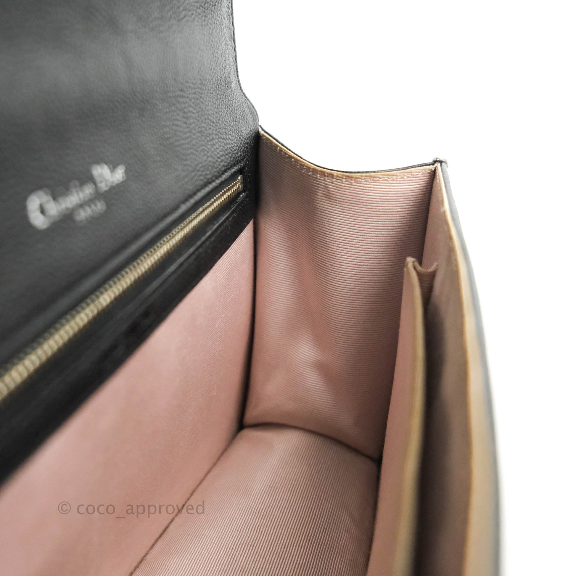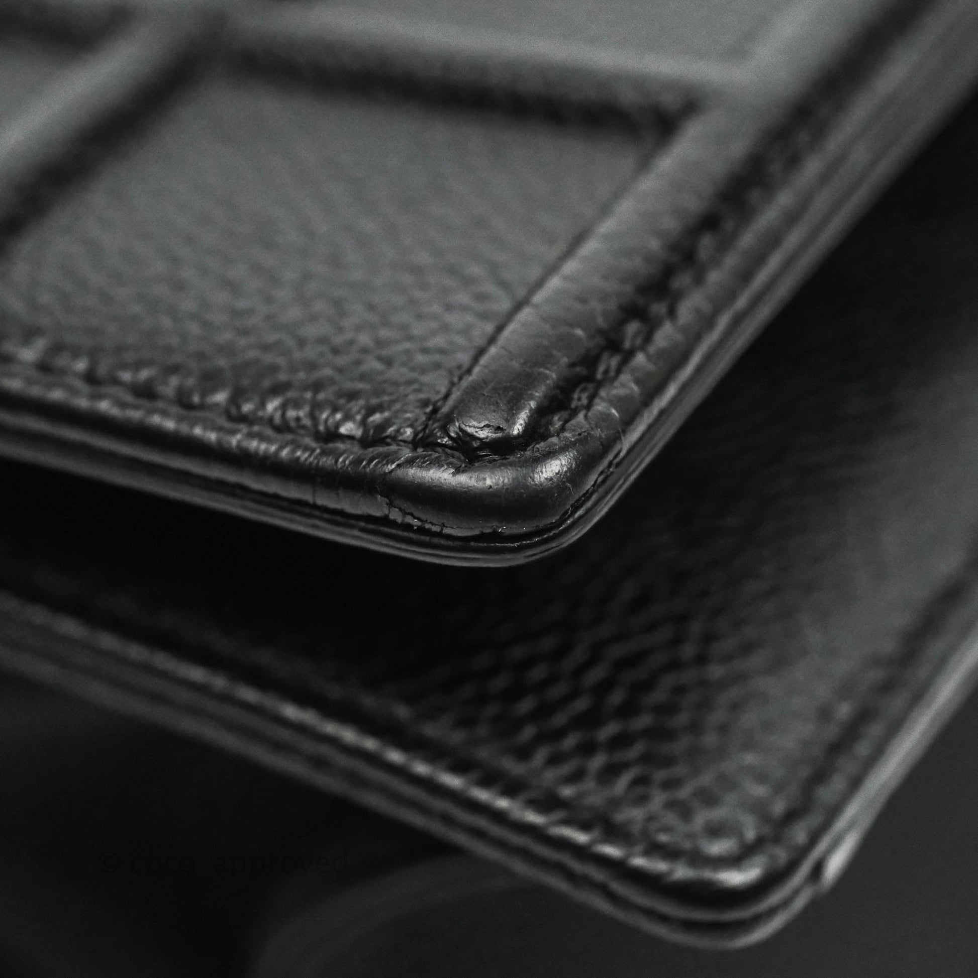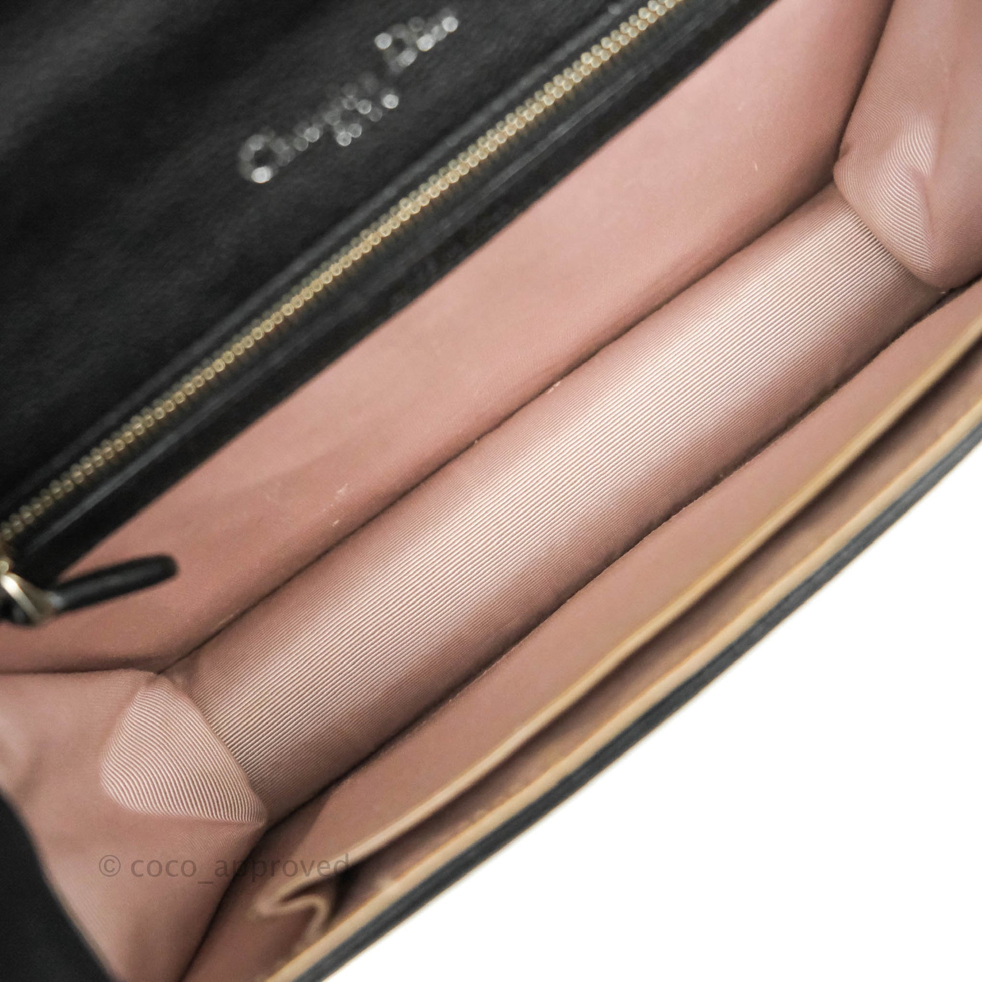 Christian Dior Diorama Medium Flap Shoulder Bag Black Grained Leather Silver Hardware