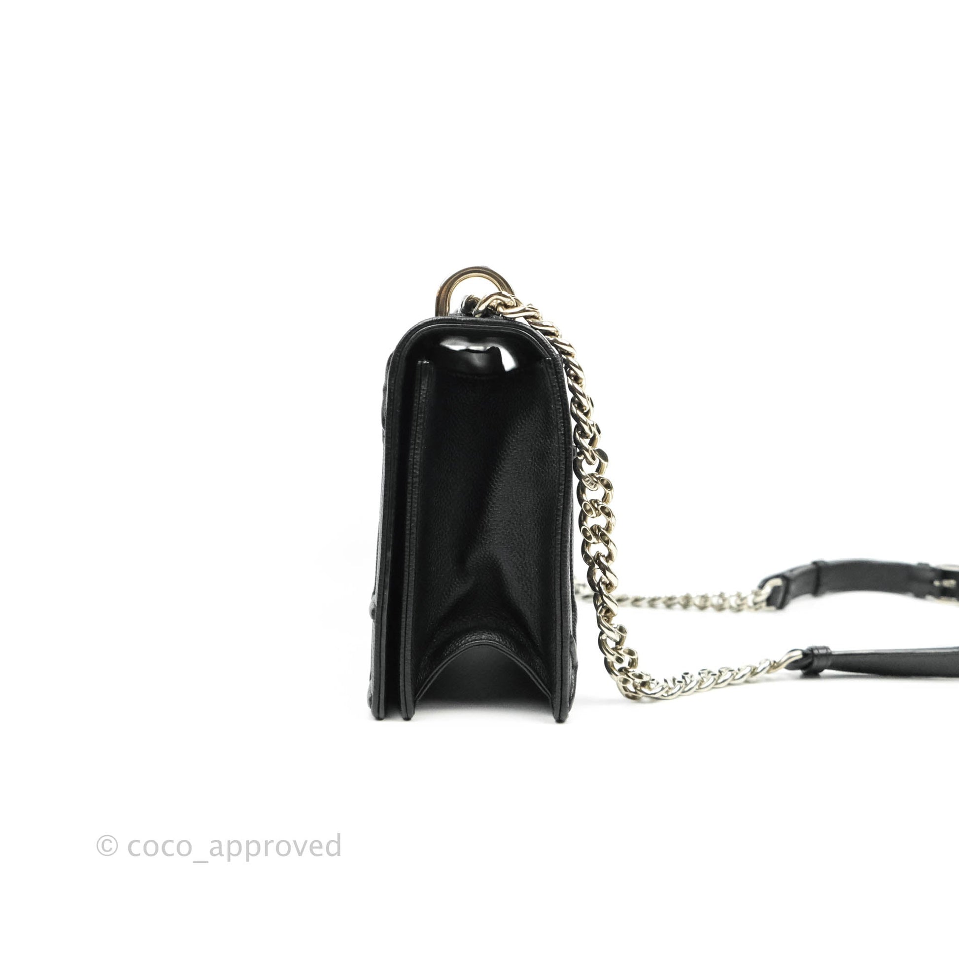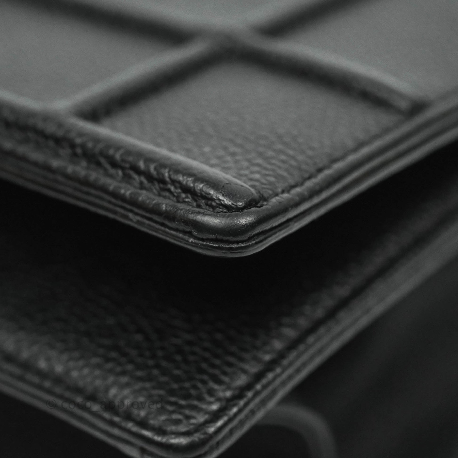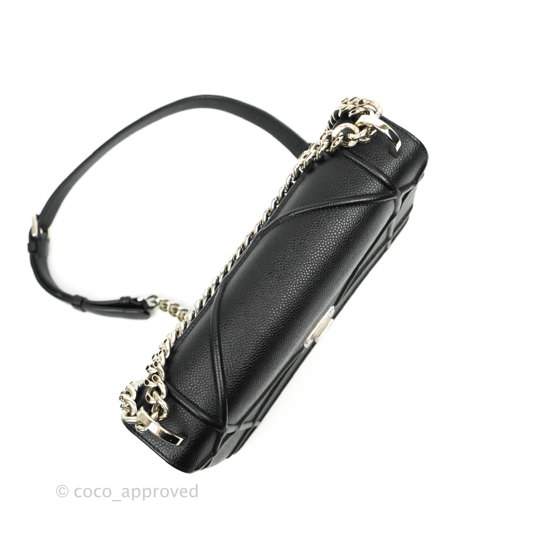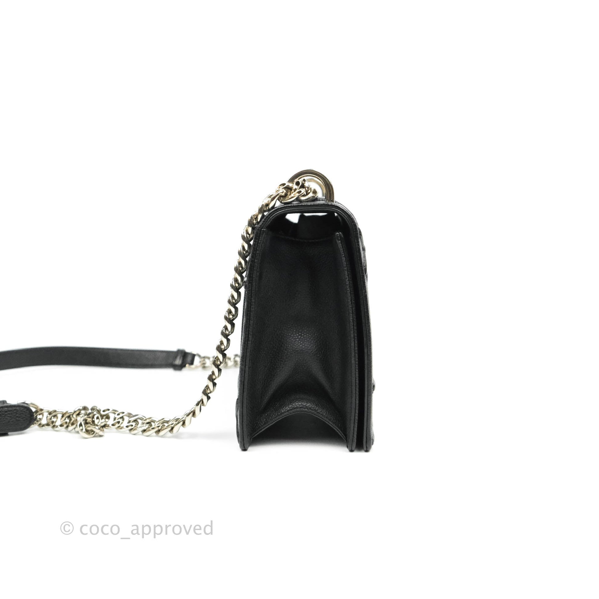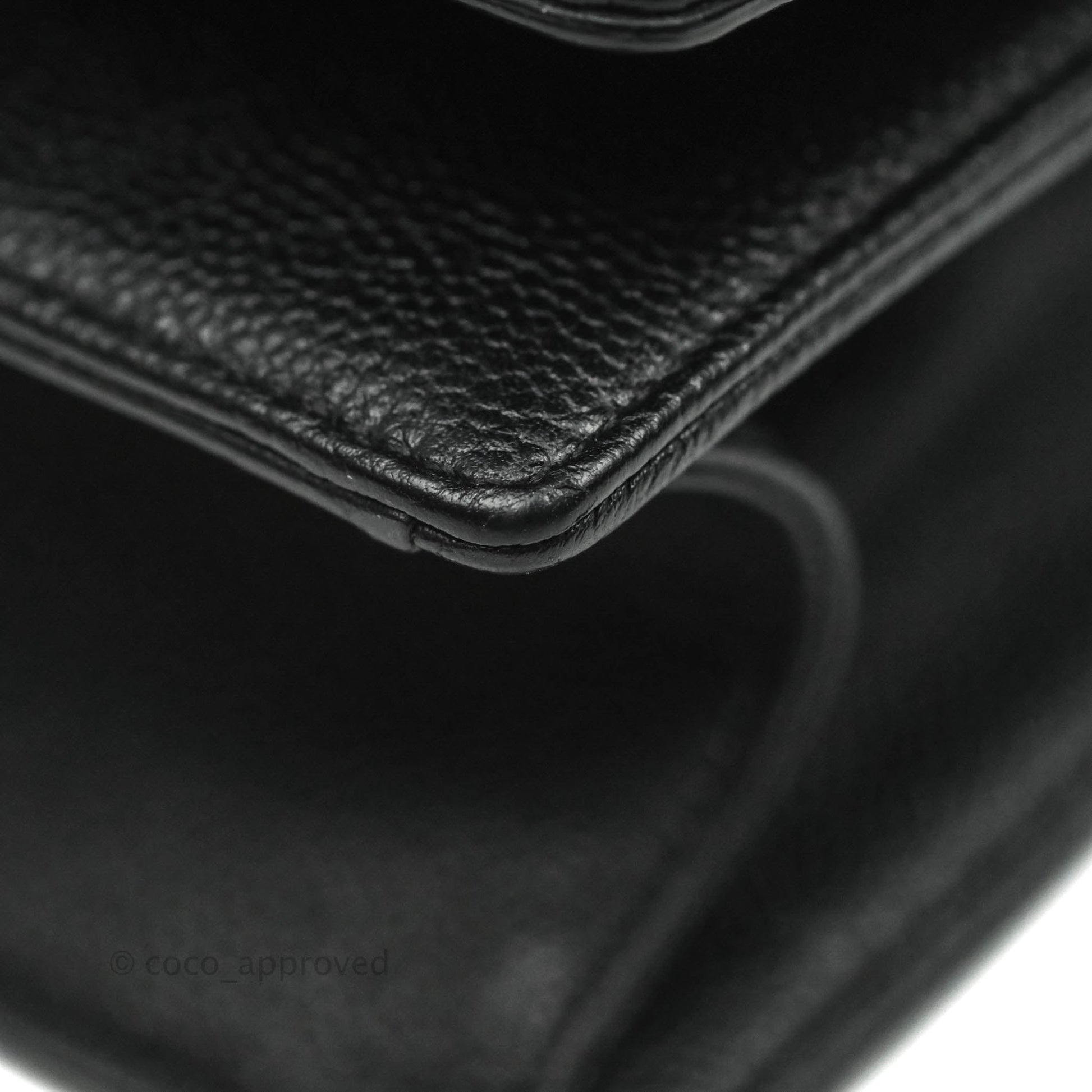 Christian Dior Diorama Medium Flap Shoulder Bag Black Grained Leather Silver Hardware