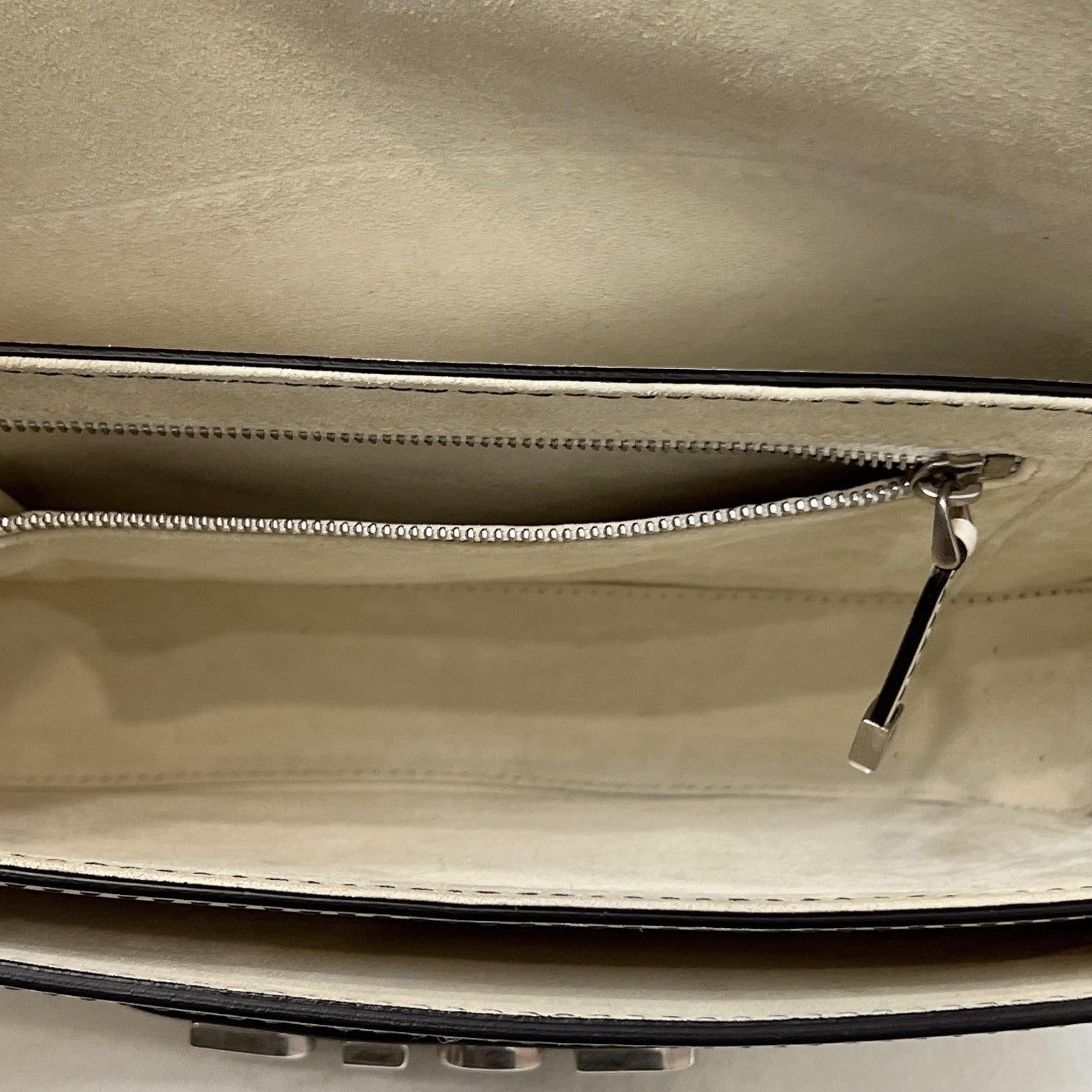 This is an Christian Dior Evolution Flap Smooth Calfskin in Off White. This stylish shoulder bag is made of soft calfskin leather and has a full front flap with a slot handclasp. The bag has a wide shoulder strap with aged ruthenium anchors and an aged ruthenium Dior emblem. The flap opens to an ivory suede interior with a zipper pocket.
