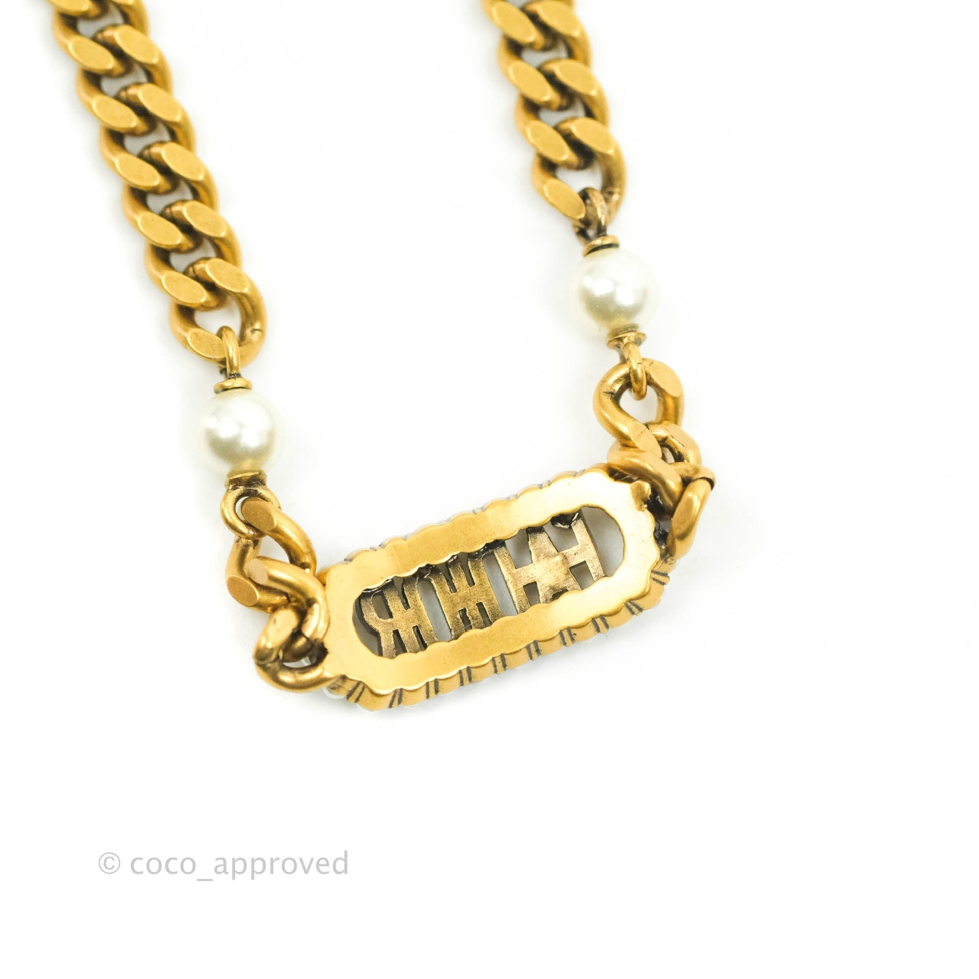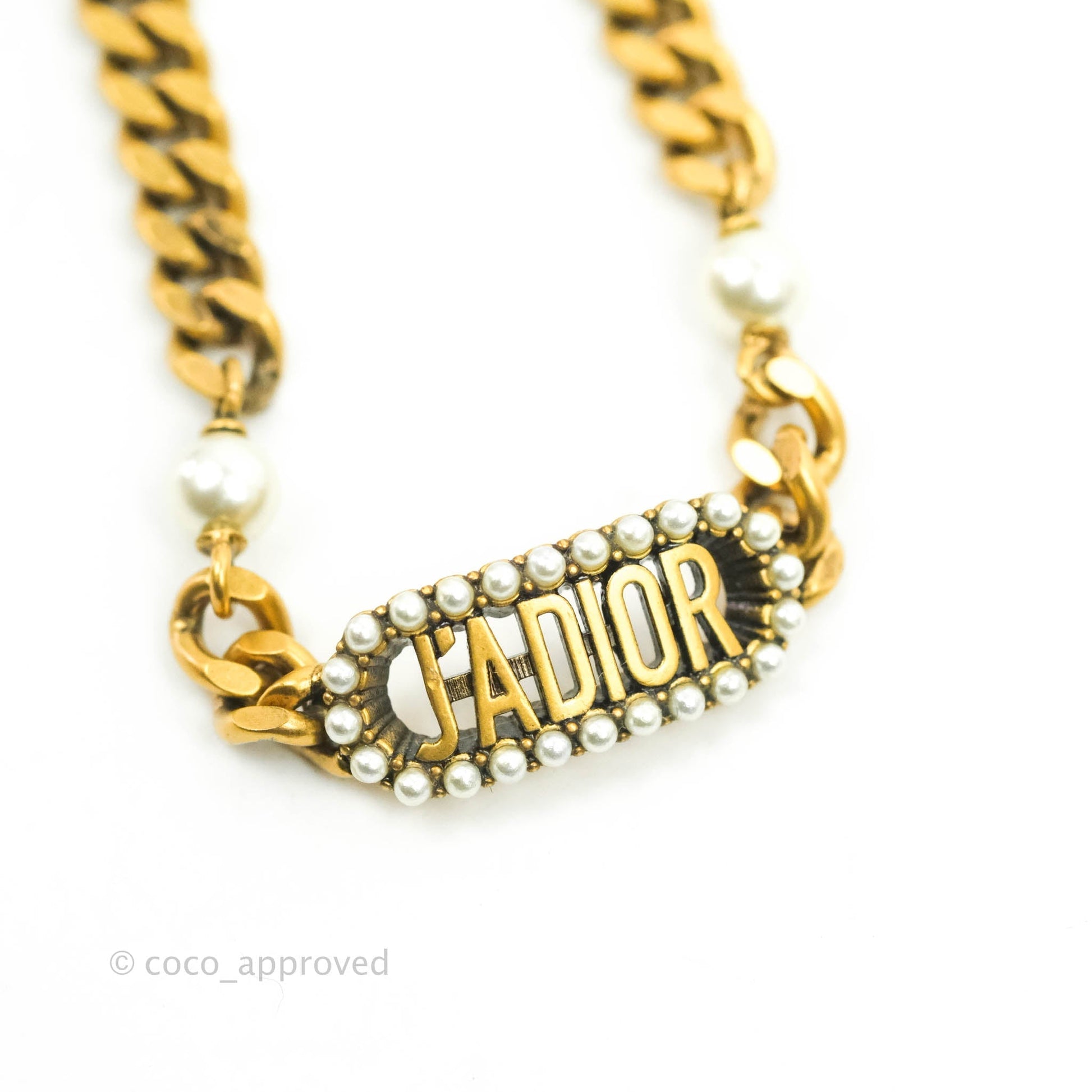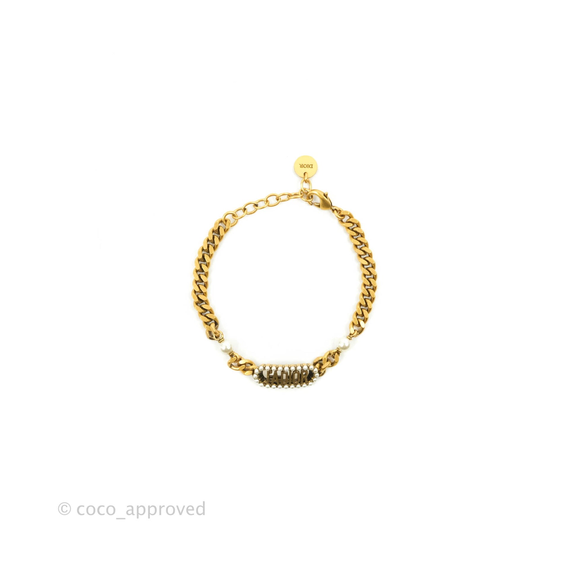 Christian Dior J'Adior Pearl Plate Bracelet Antique Gold