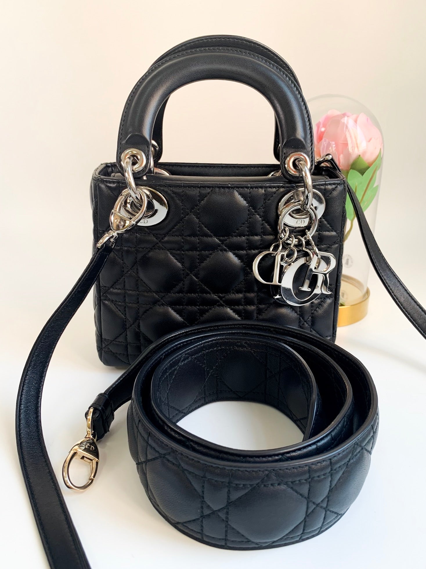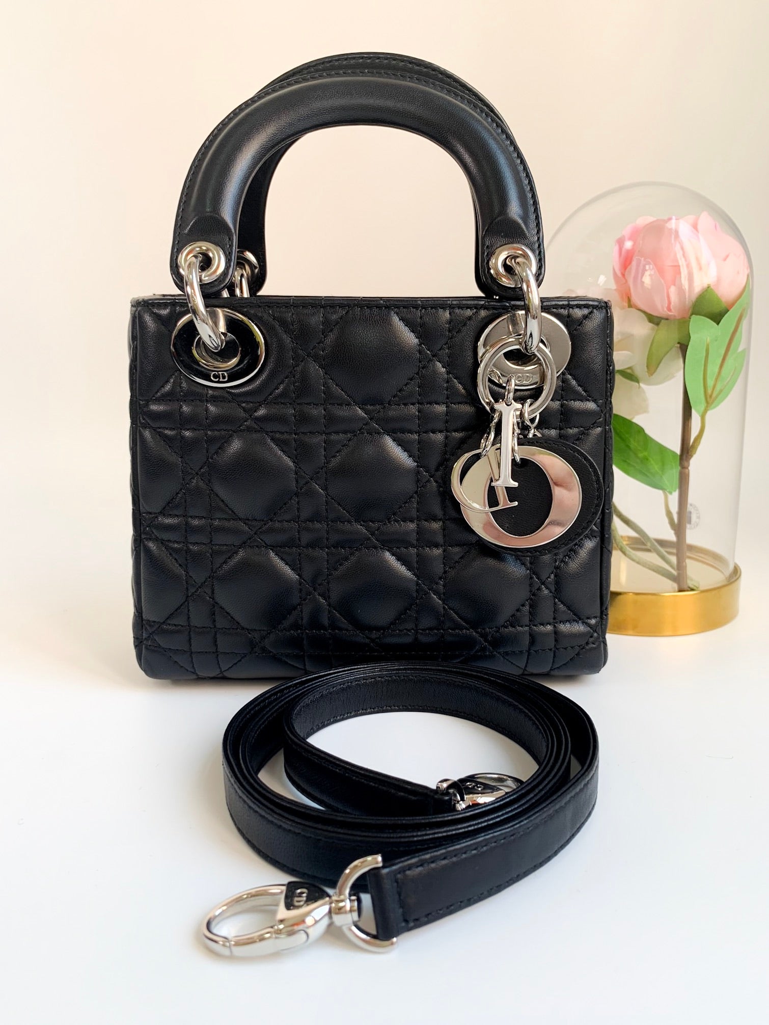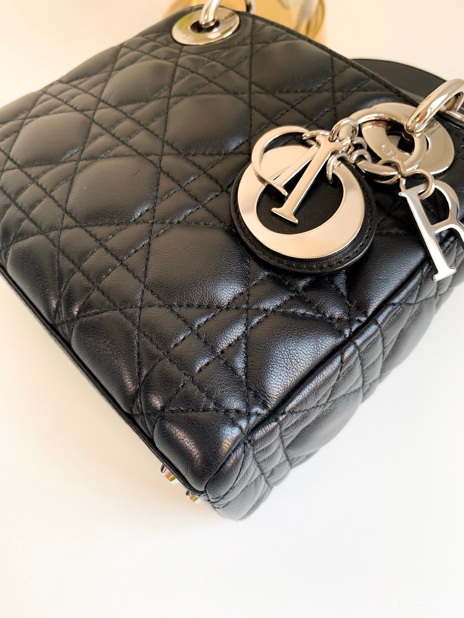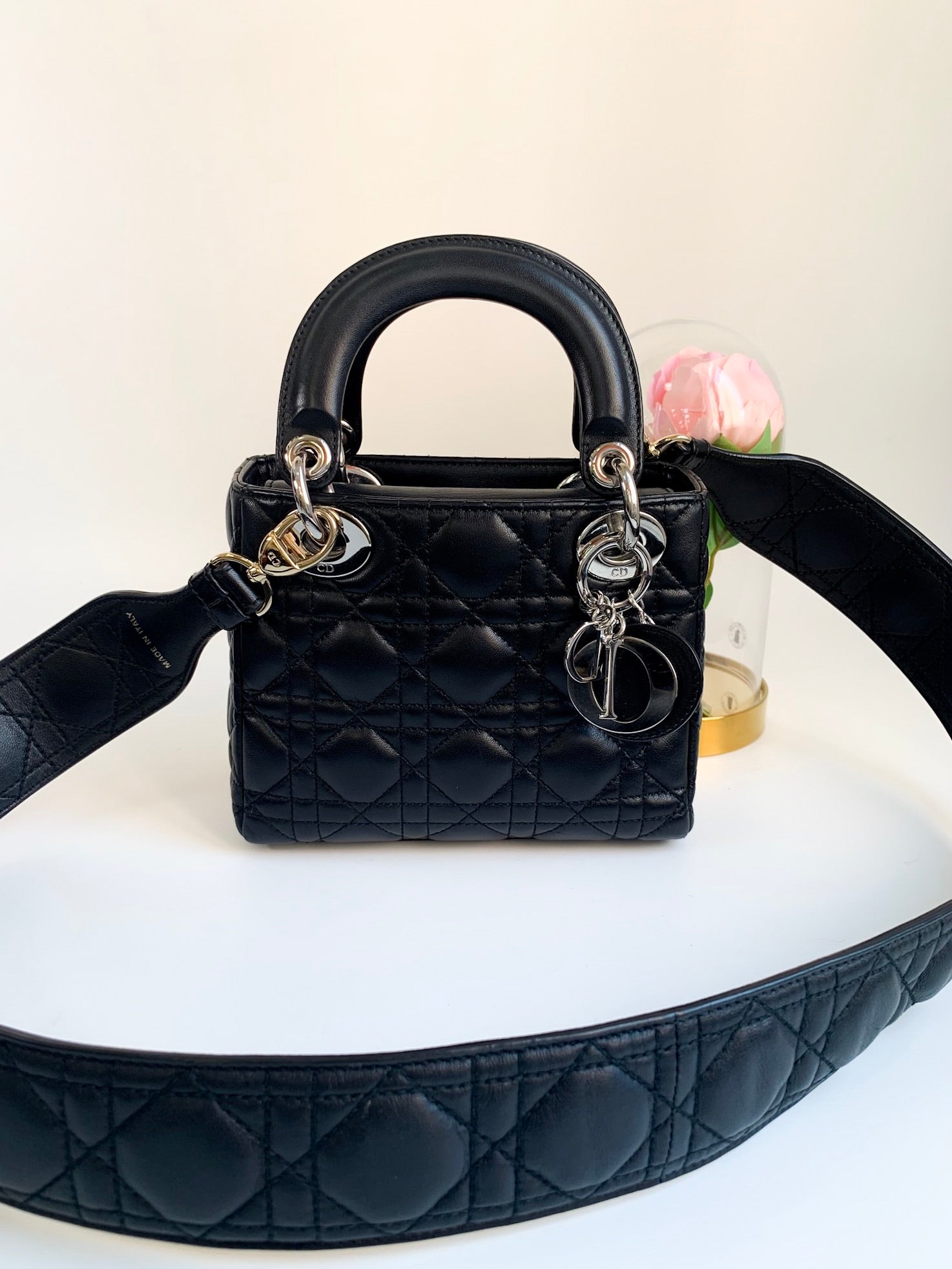 Christian Dior Lambskin Cannage Mini Lady Dior Black (2 Straps)