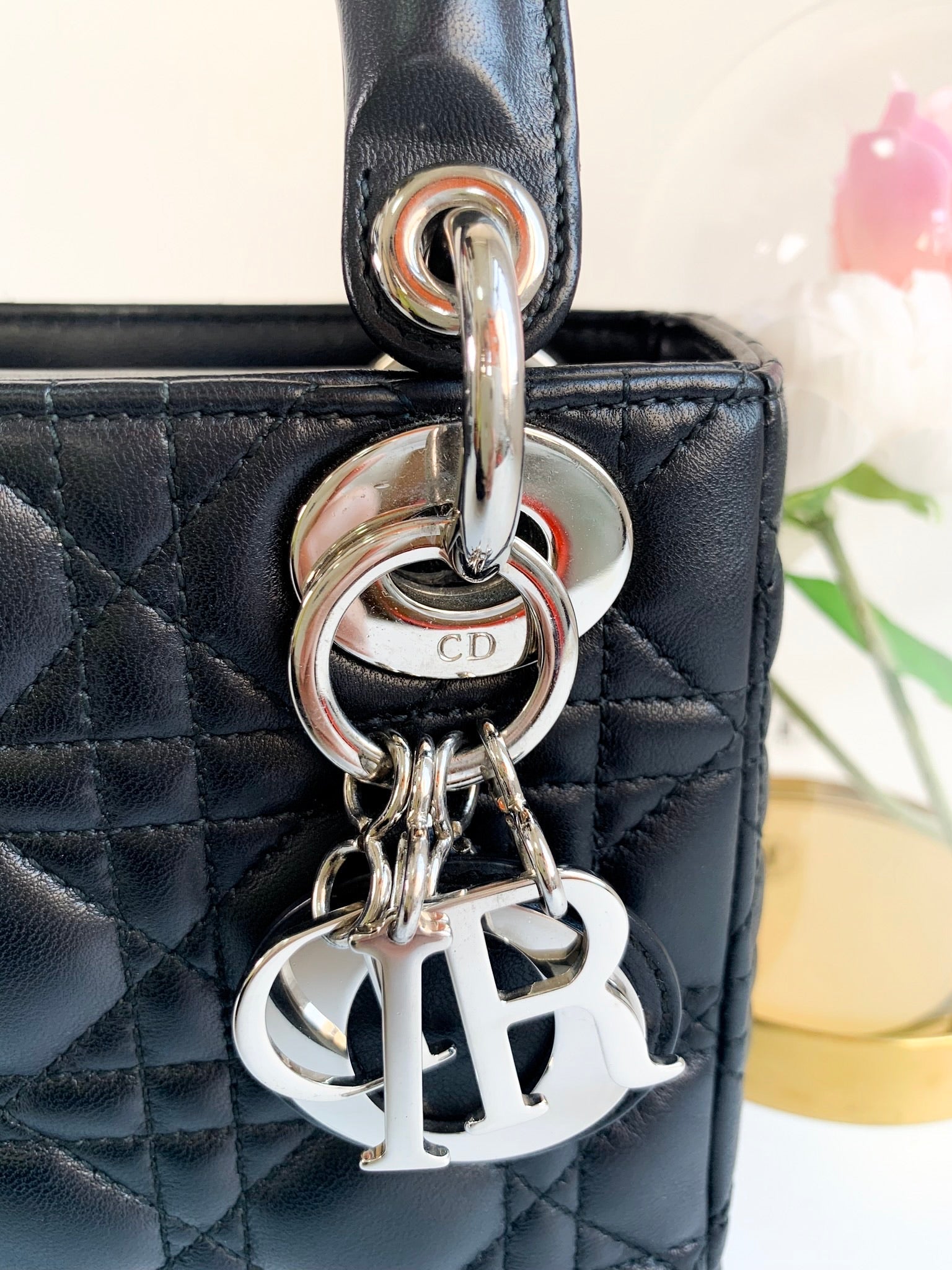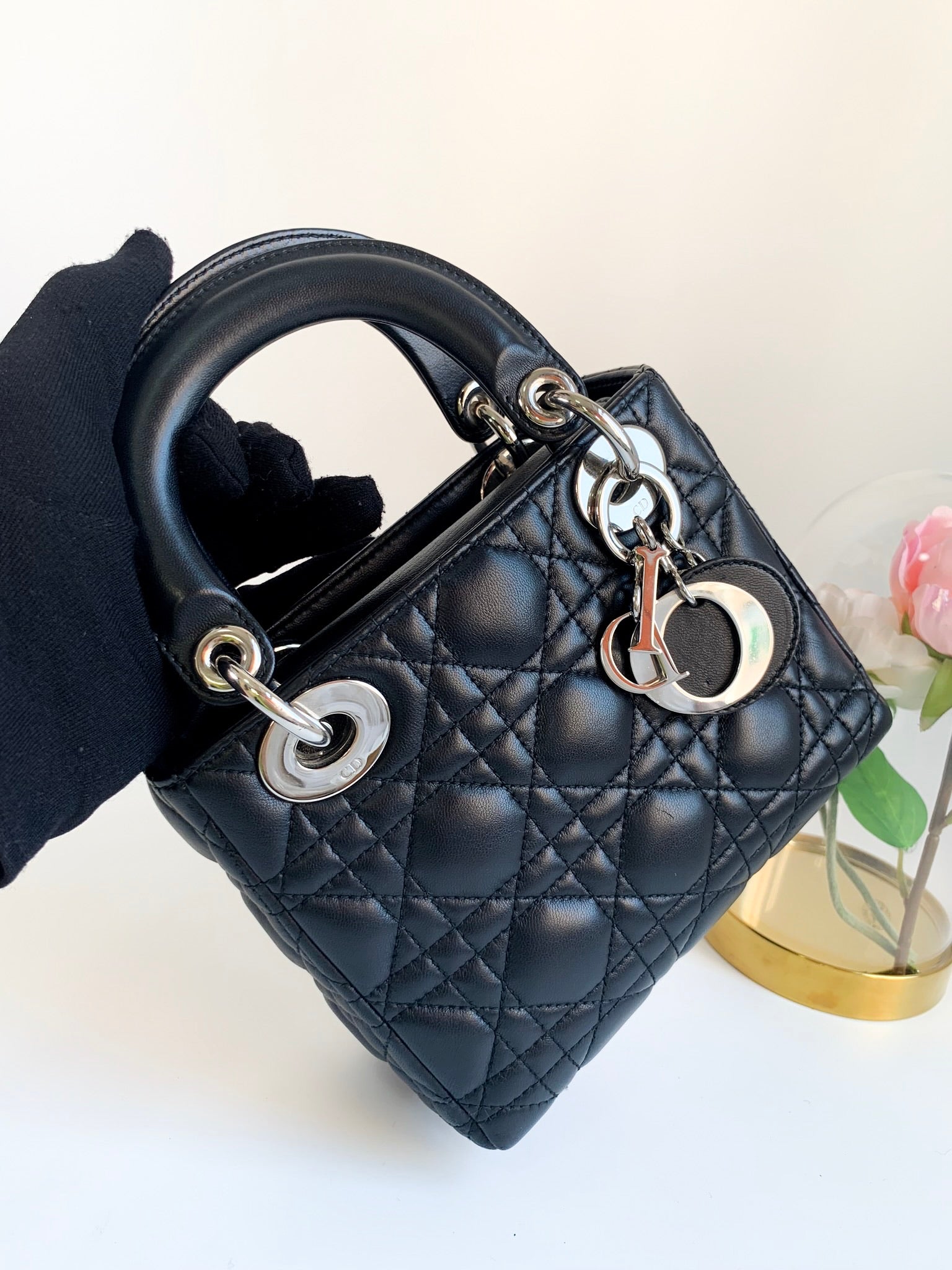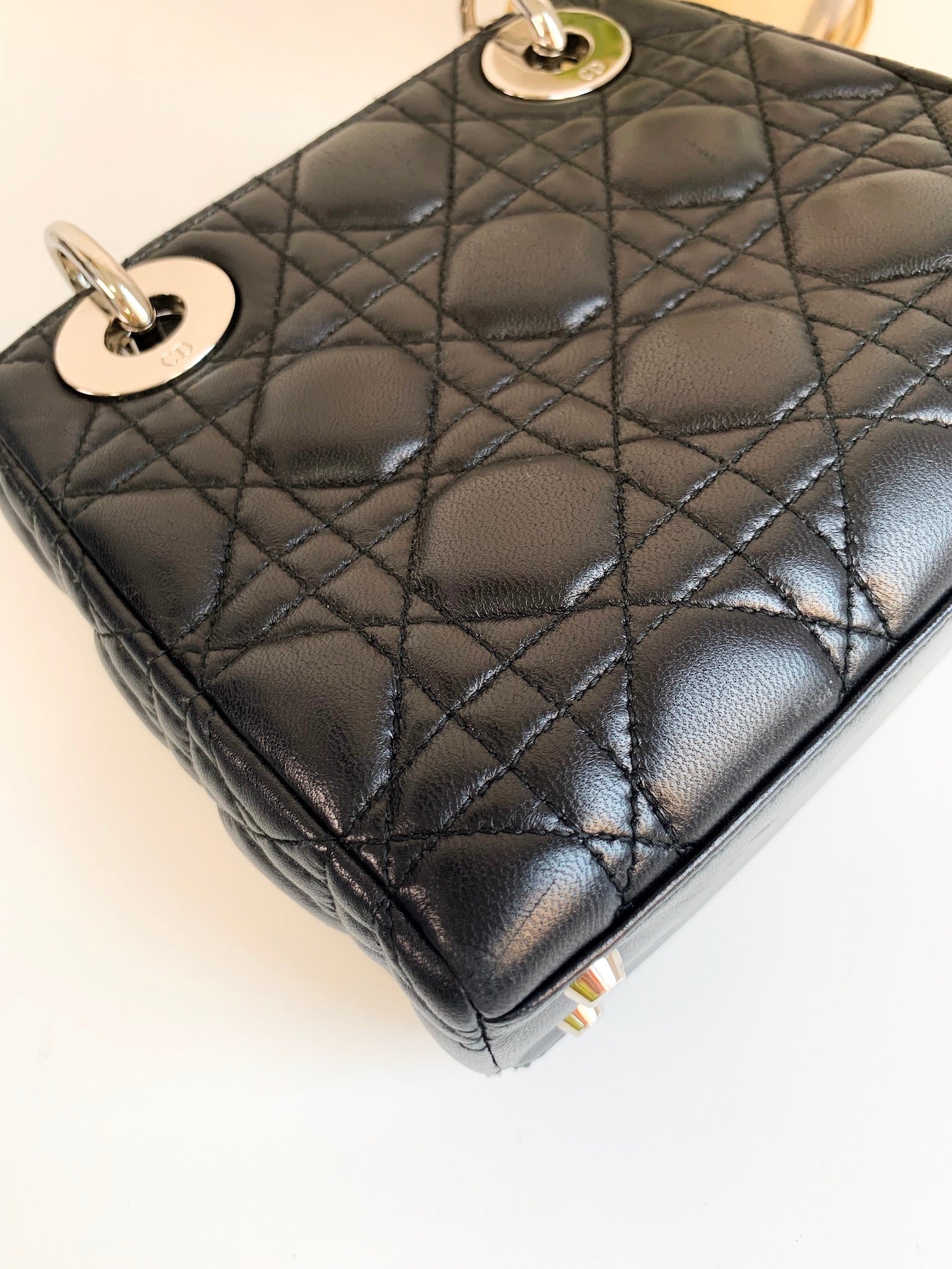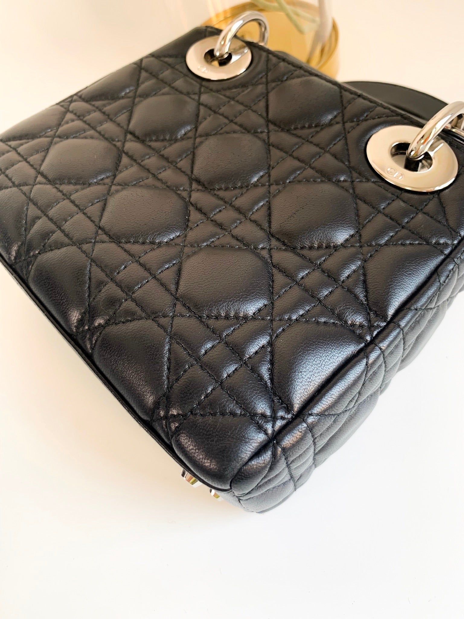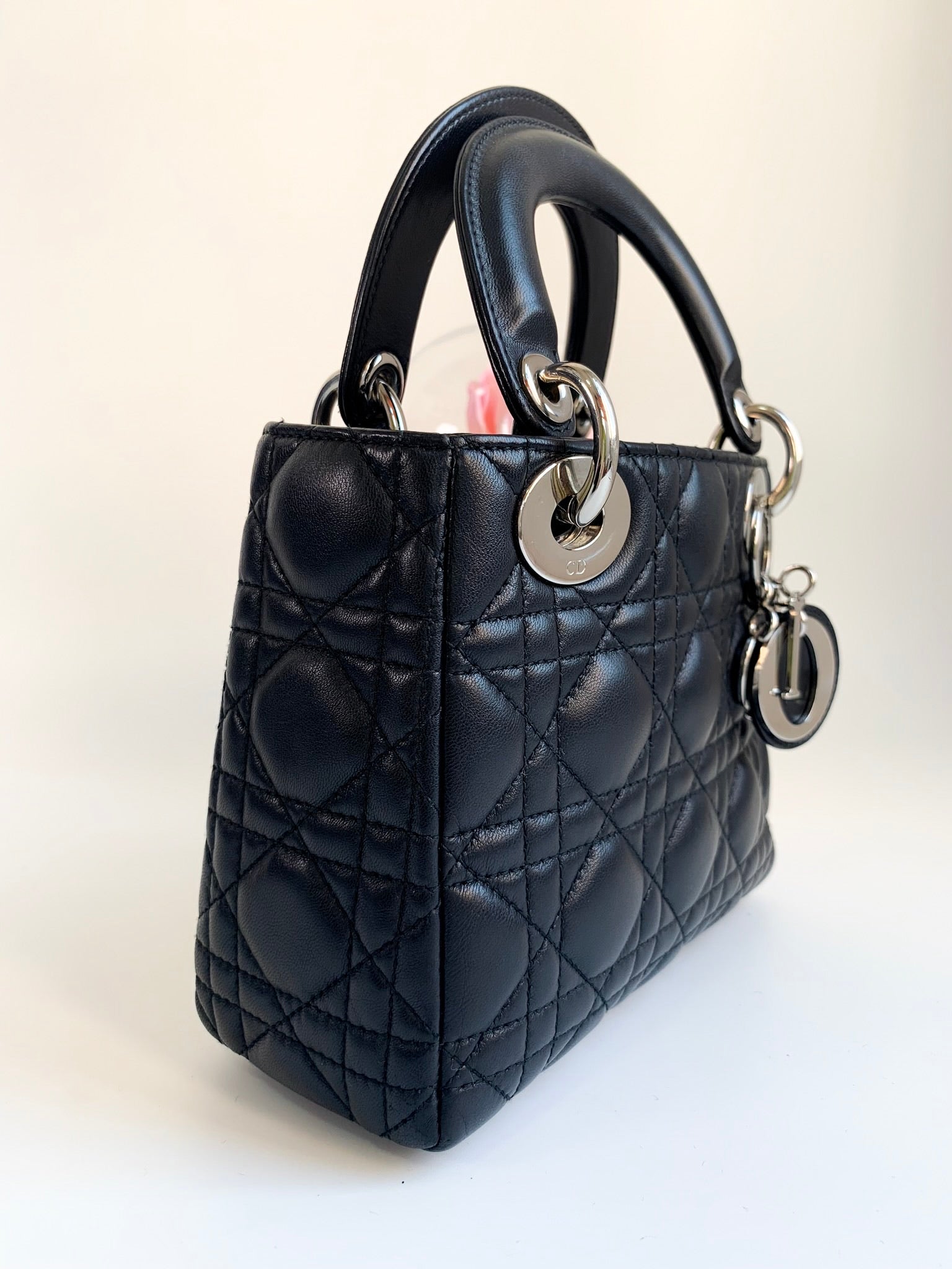 Christian Dior Lambskin Cannage Mini Lady Dior Black (2 Straps)
