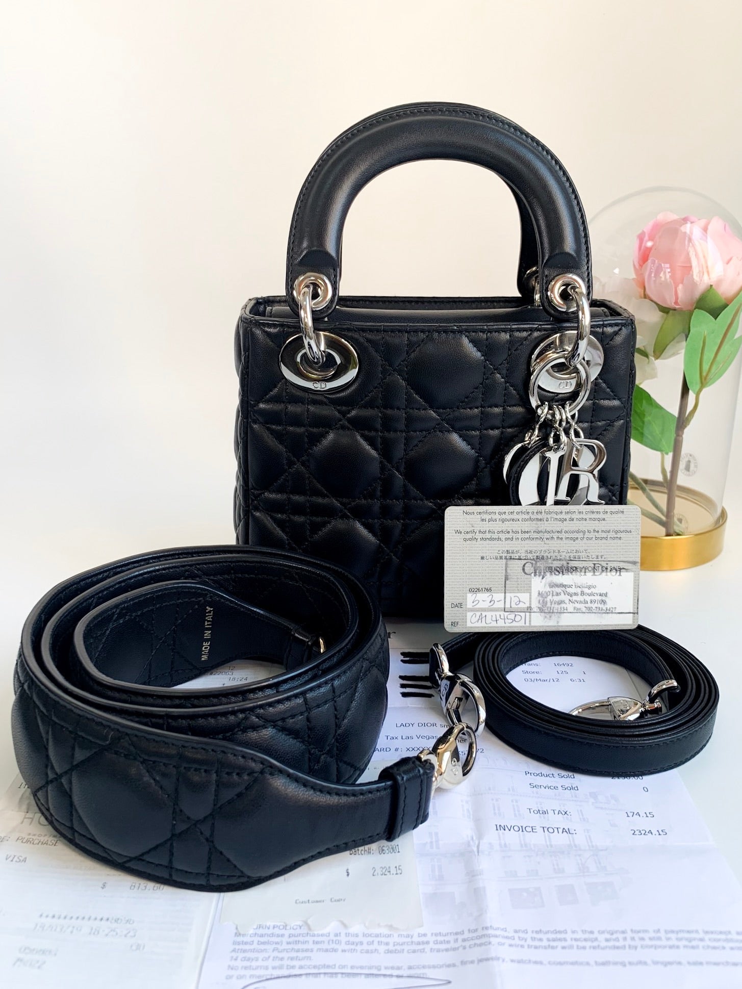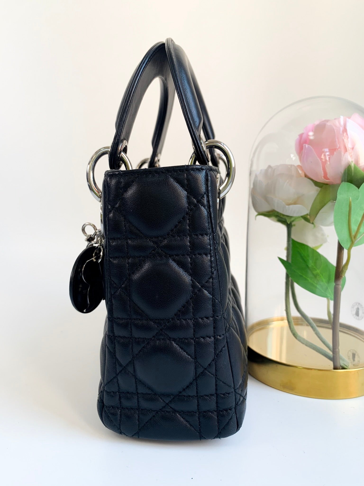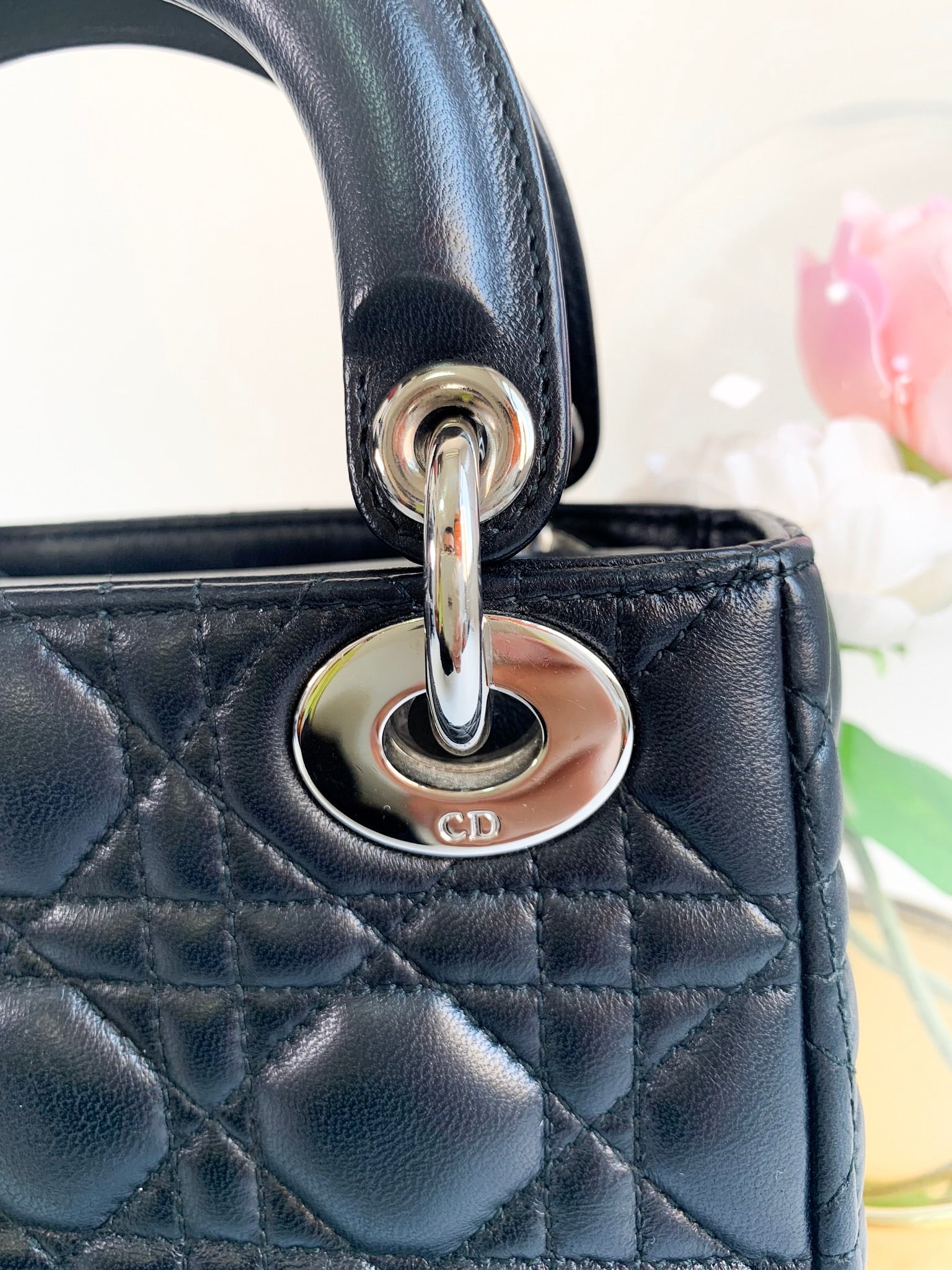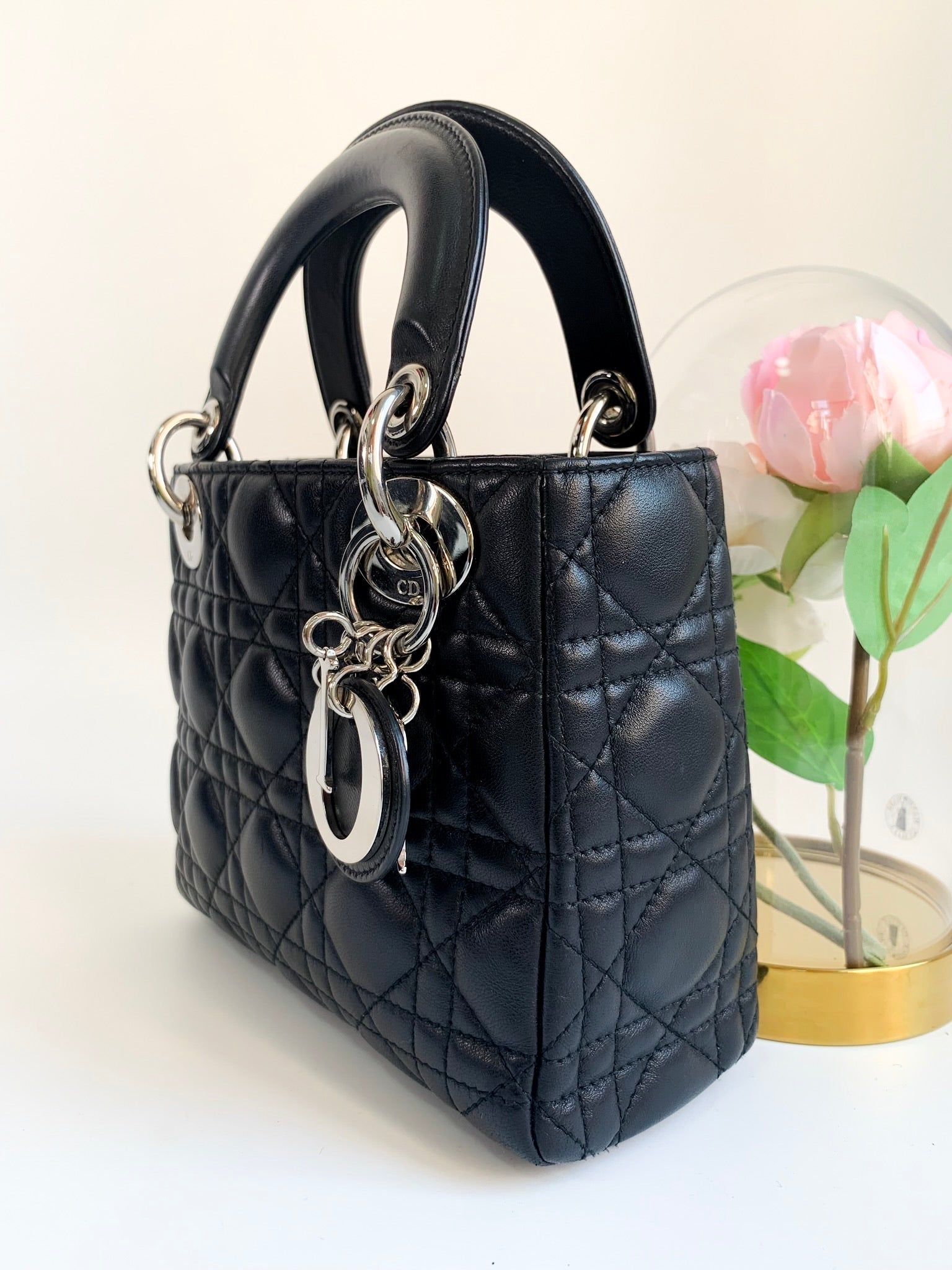 Christian Dior Lambskin Cannage Mini Lady Dior Black (2 Straps)