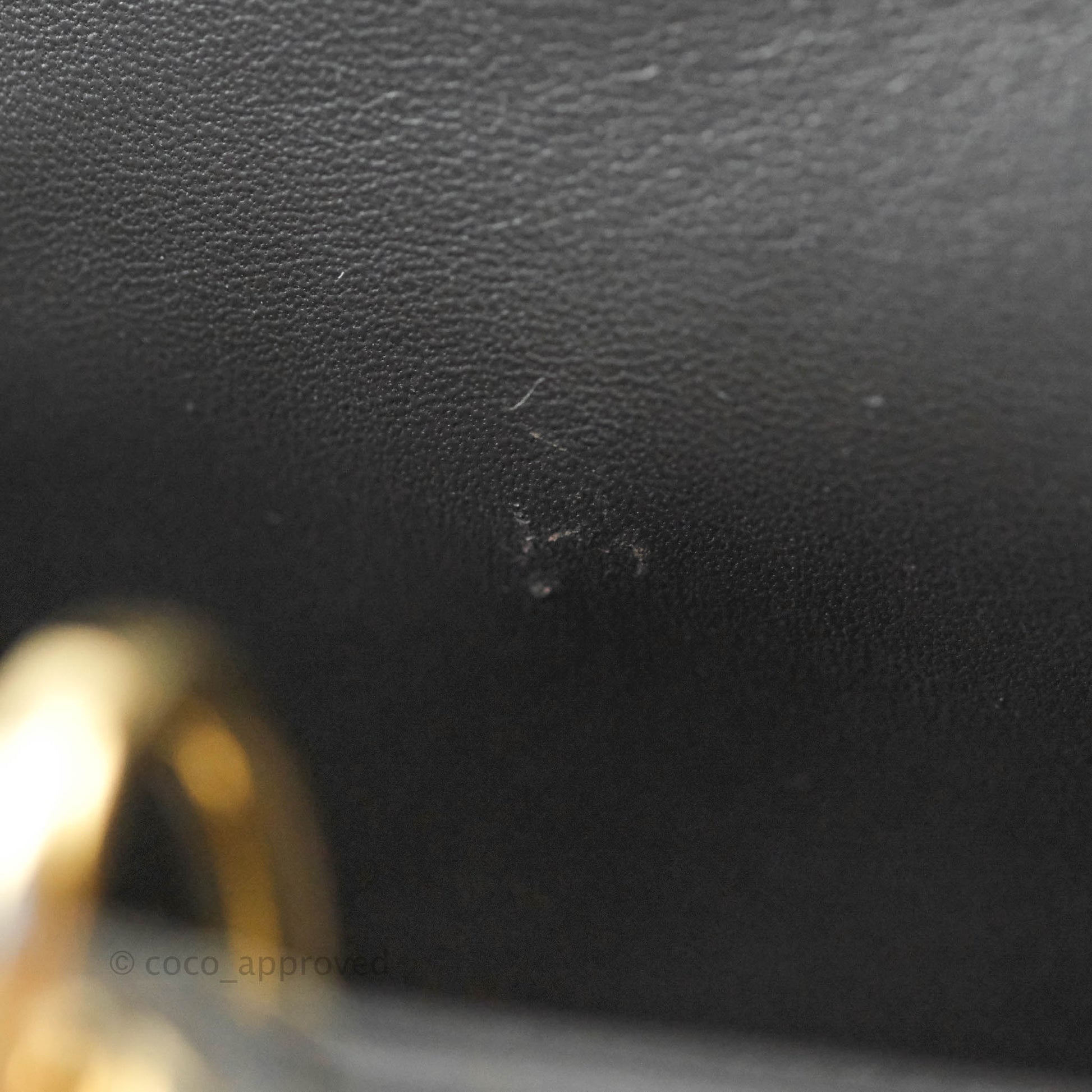 9/10 excellent condition. Scratches on hardwares. Rubbing at corners, handle, top rim, bottom rim and under the flap. Unavoidable dents on the flap. Stainson back right and interior bottom.