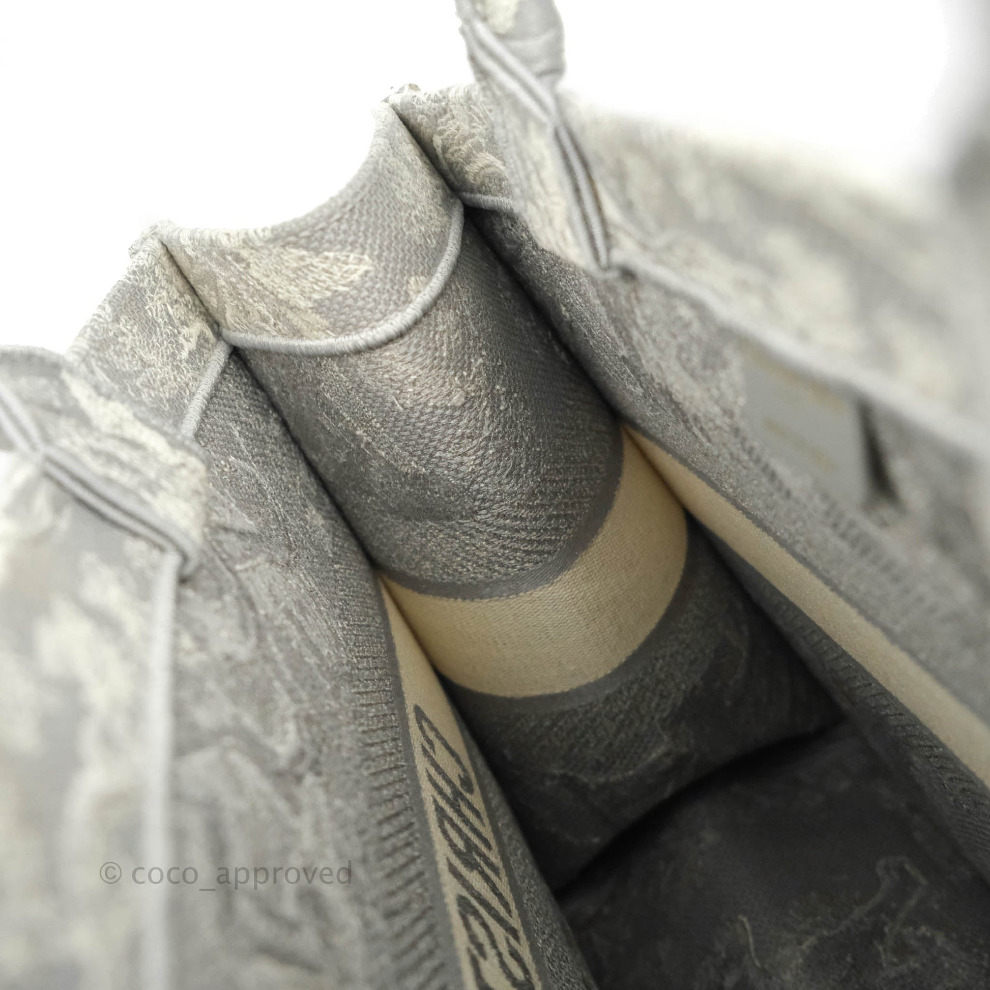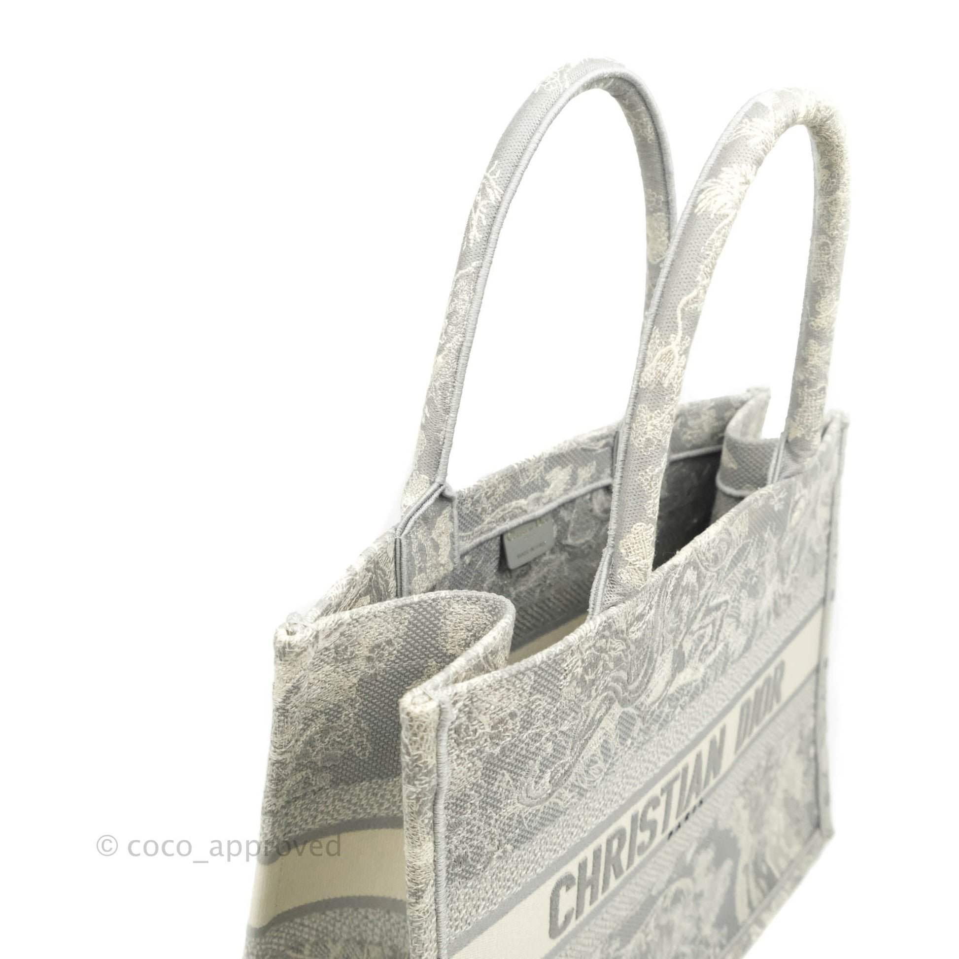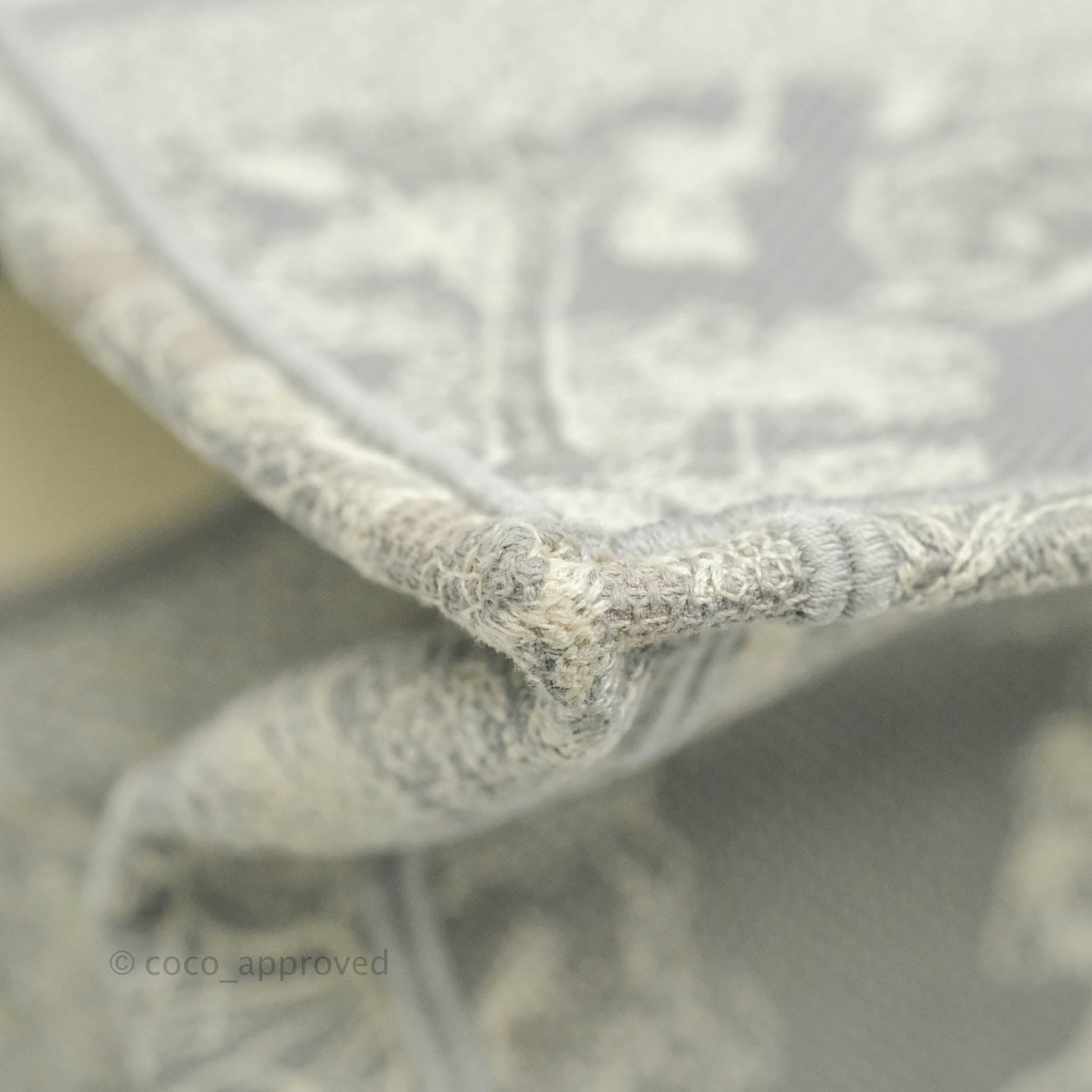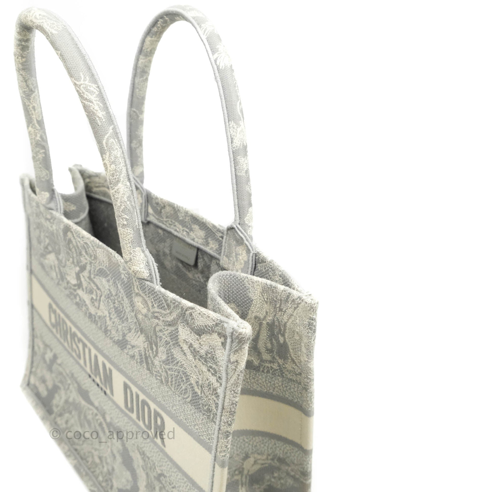 Christian Dior Medium (Old Small) Embroidered Toile De Jouy Light Grey Canvas Book Tote
