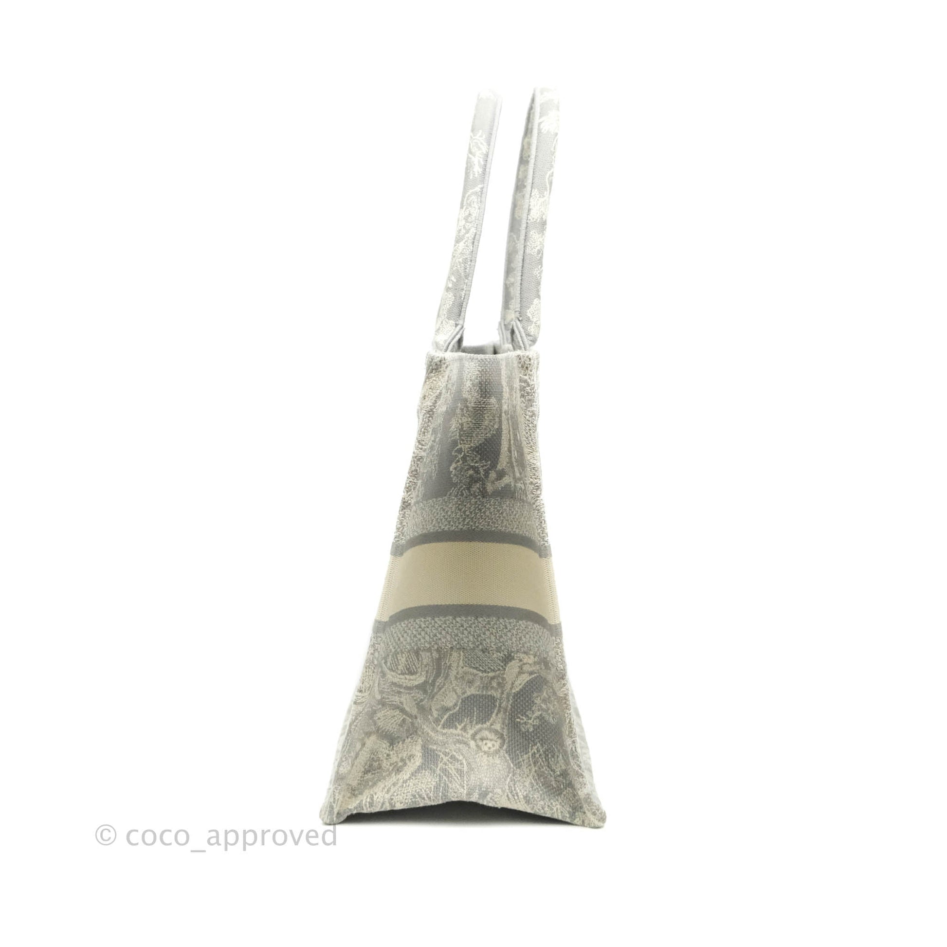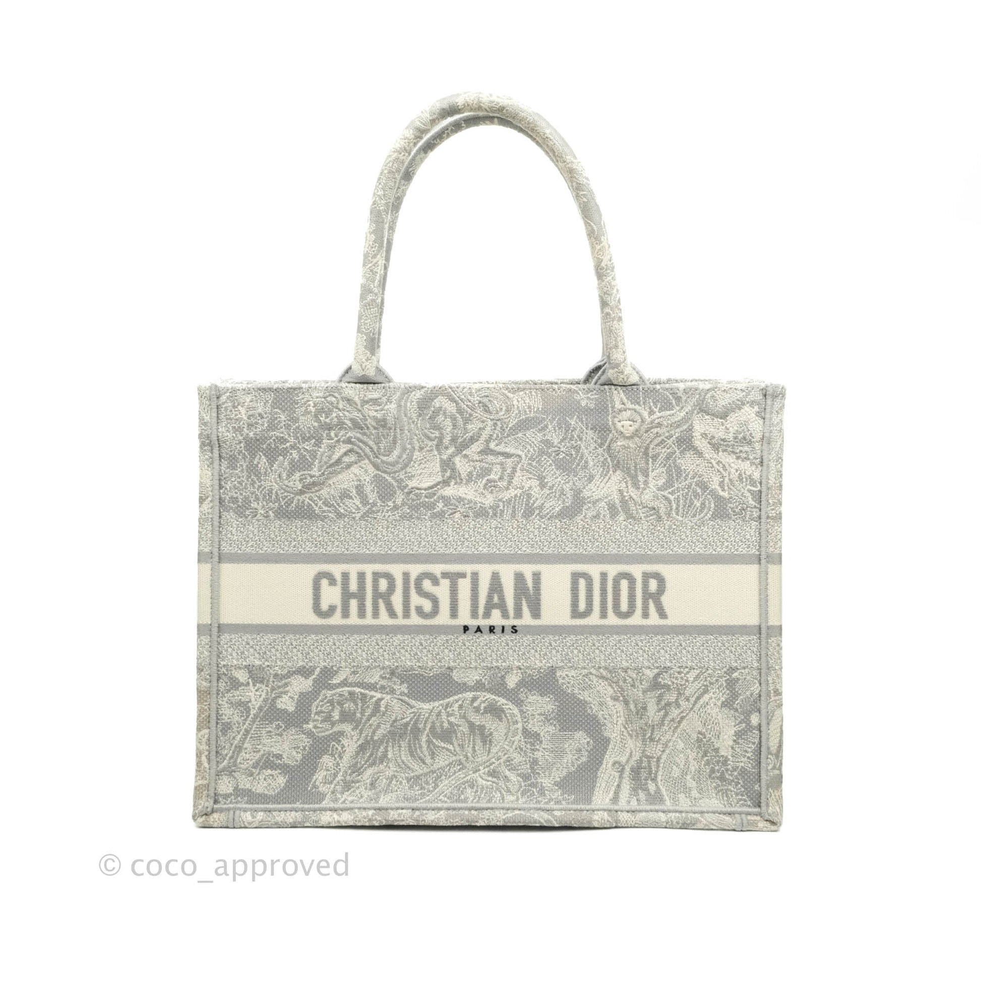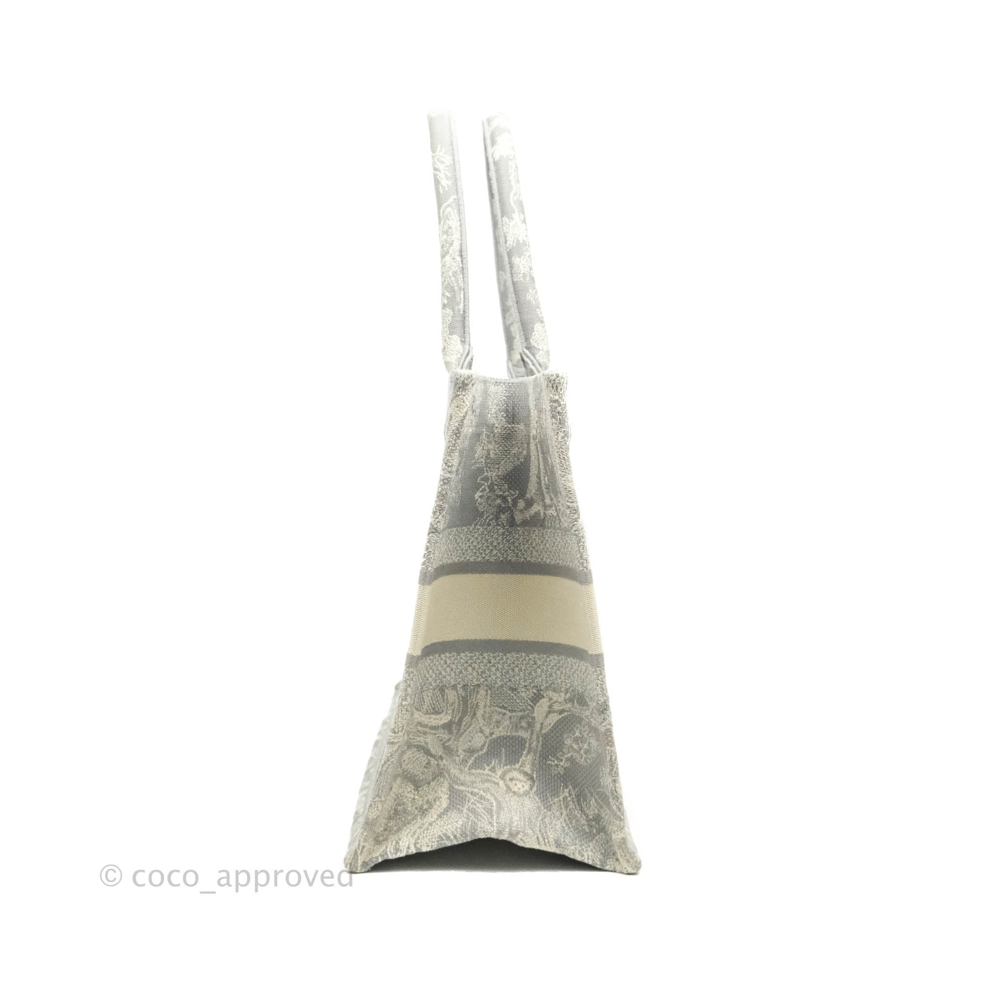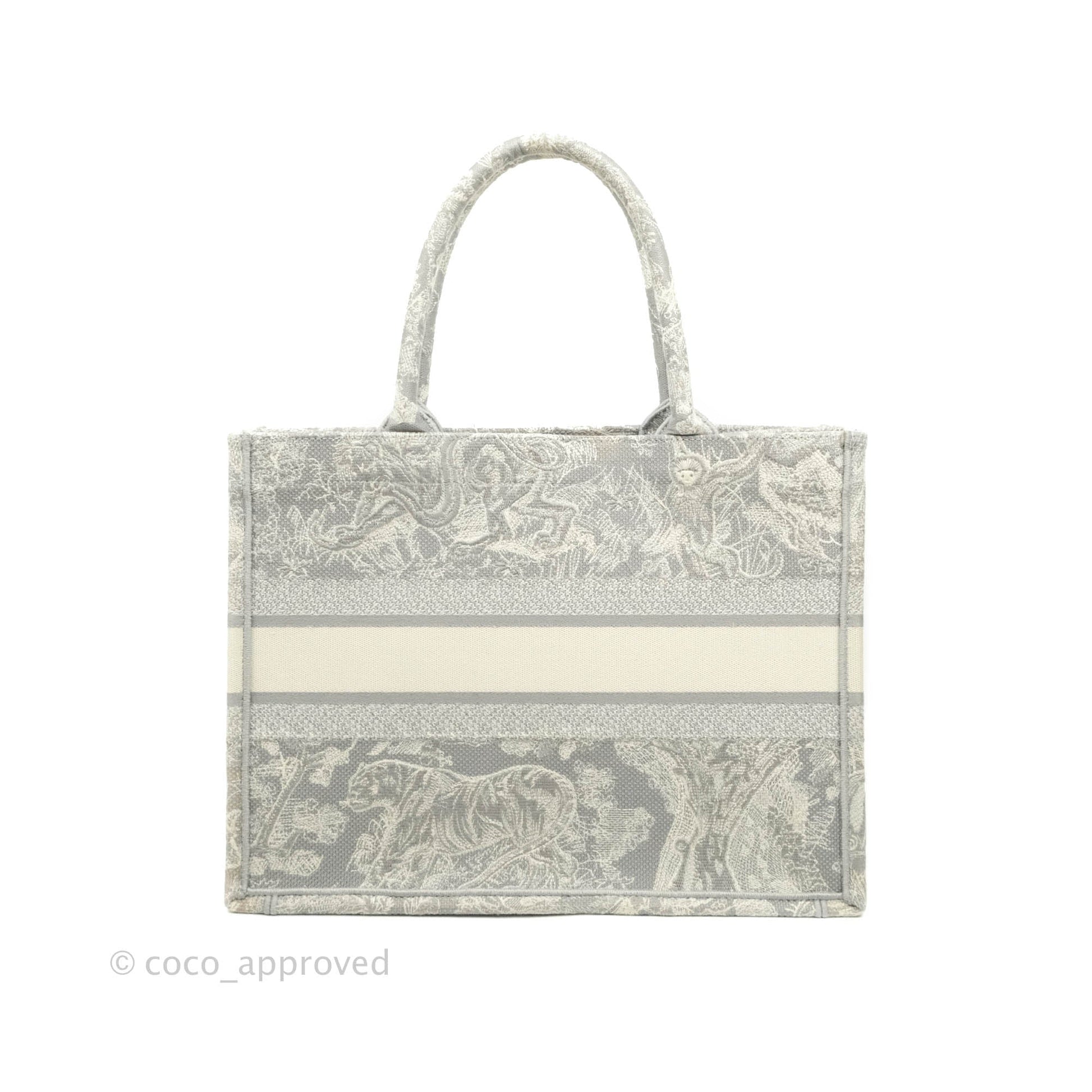 Christian Dior Medium (Old Small) Embroidered Toile De Jouy Light Grey Canvas Book Tote