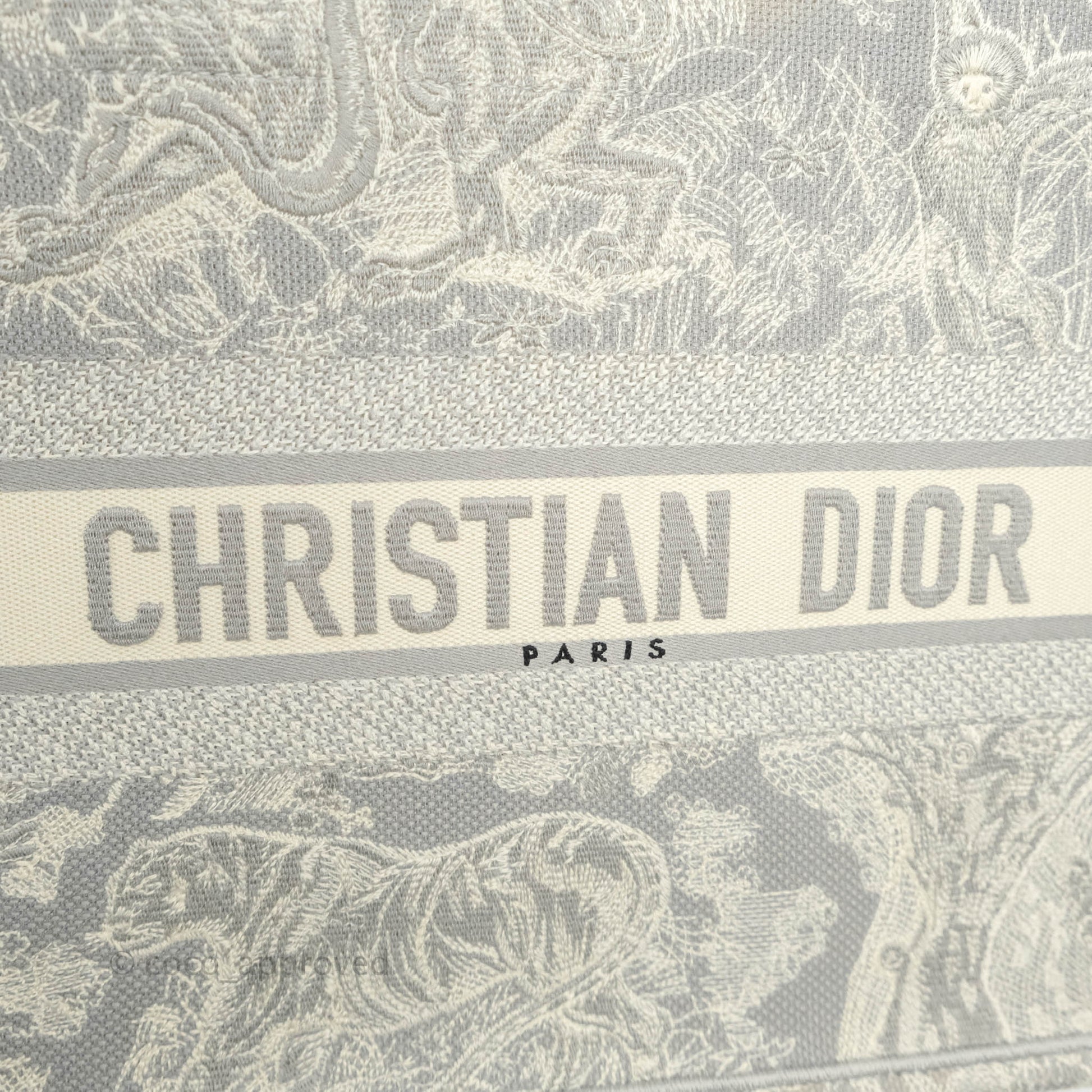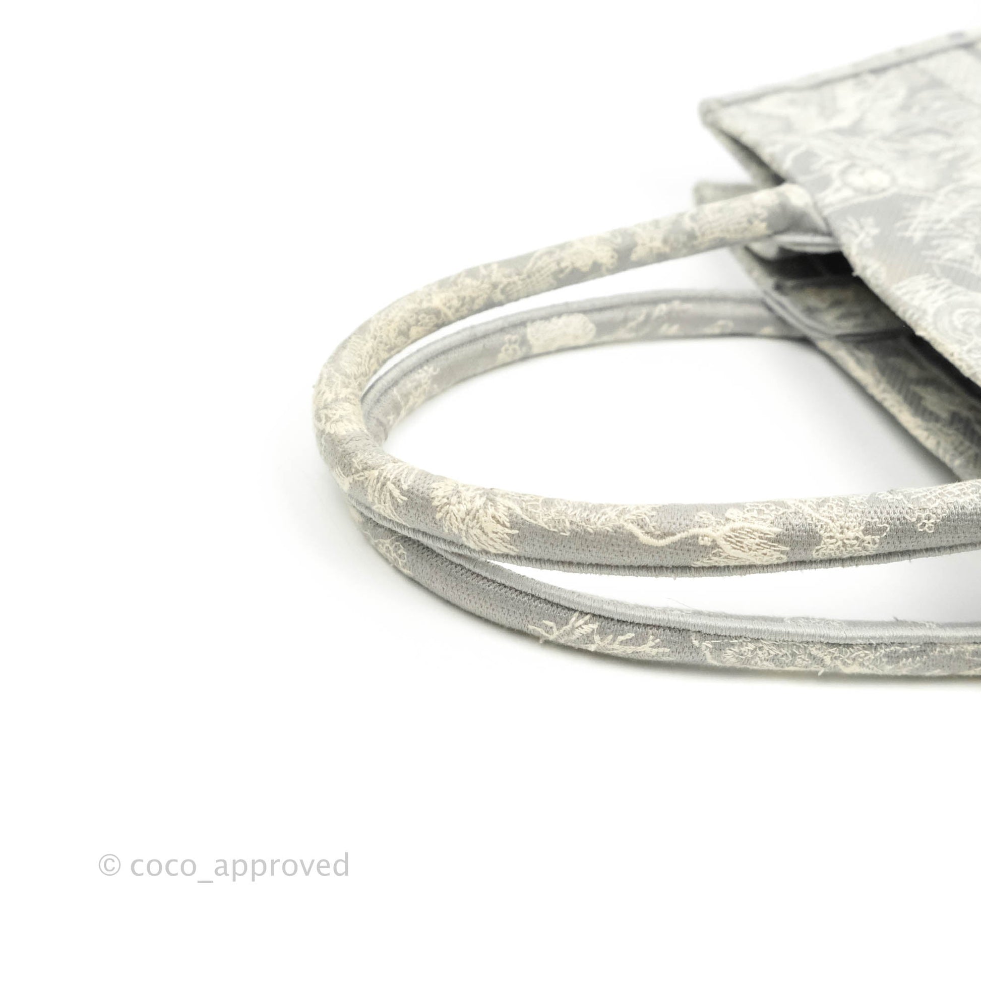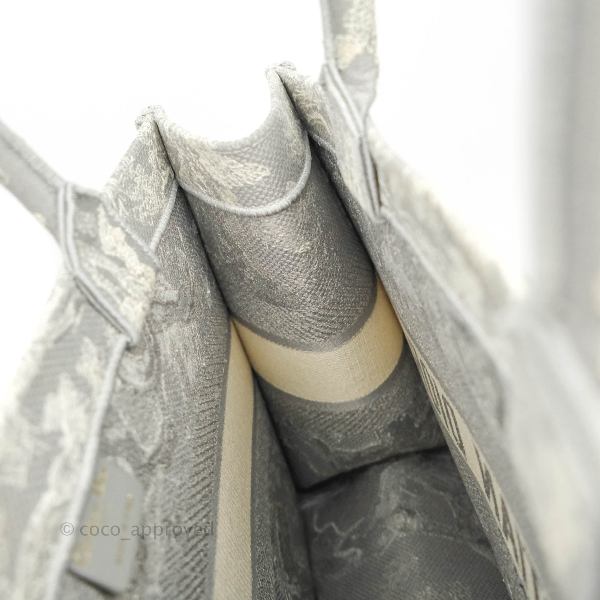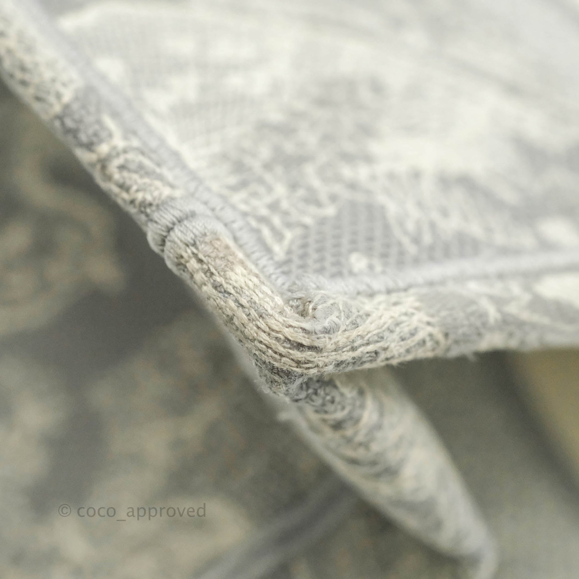 Christian Dior Medium (Old Small) Embroidered Toile De Jouy Light Grey Canvas Book Tote