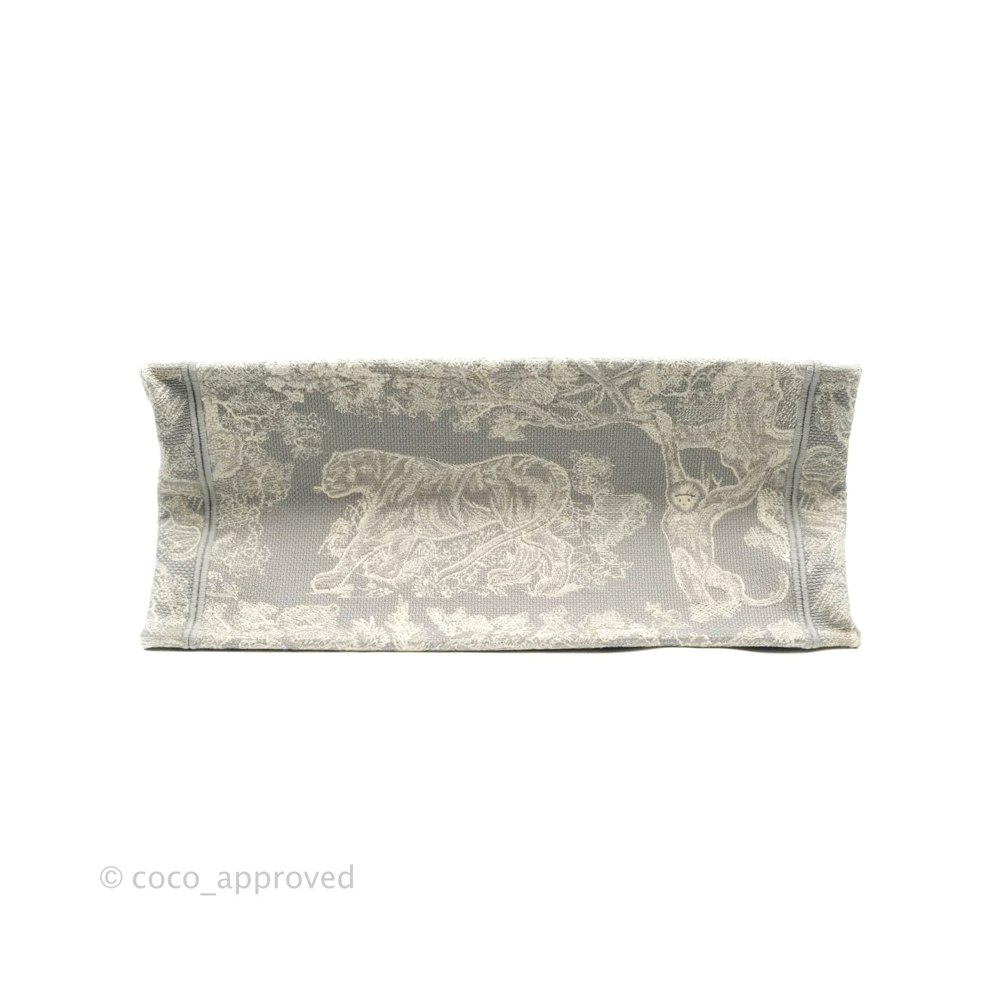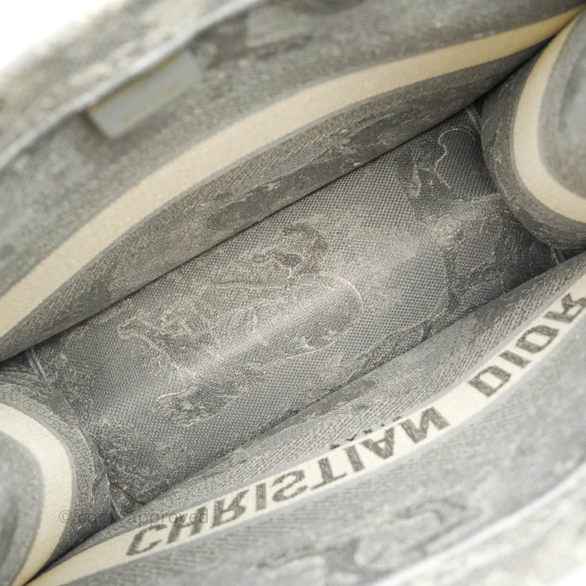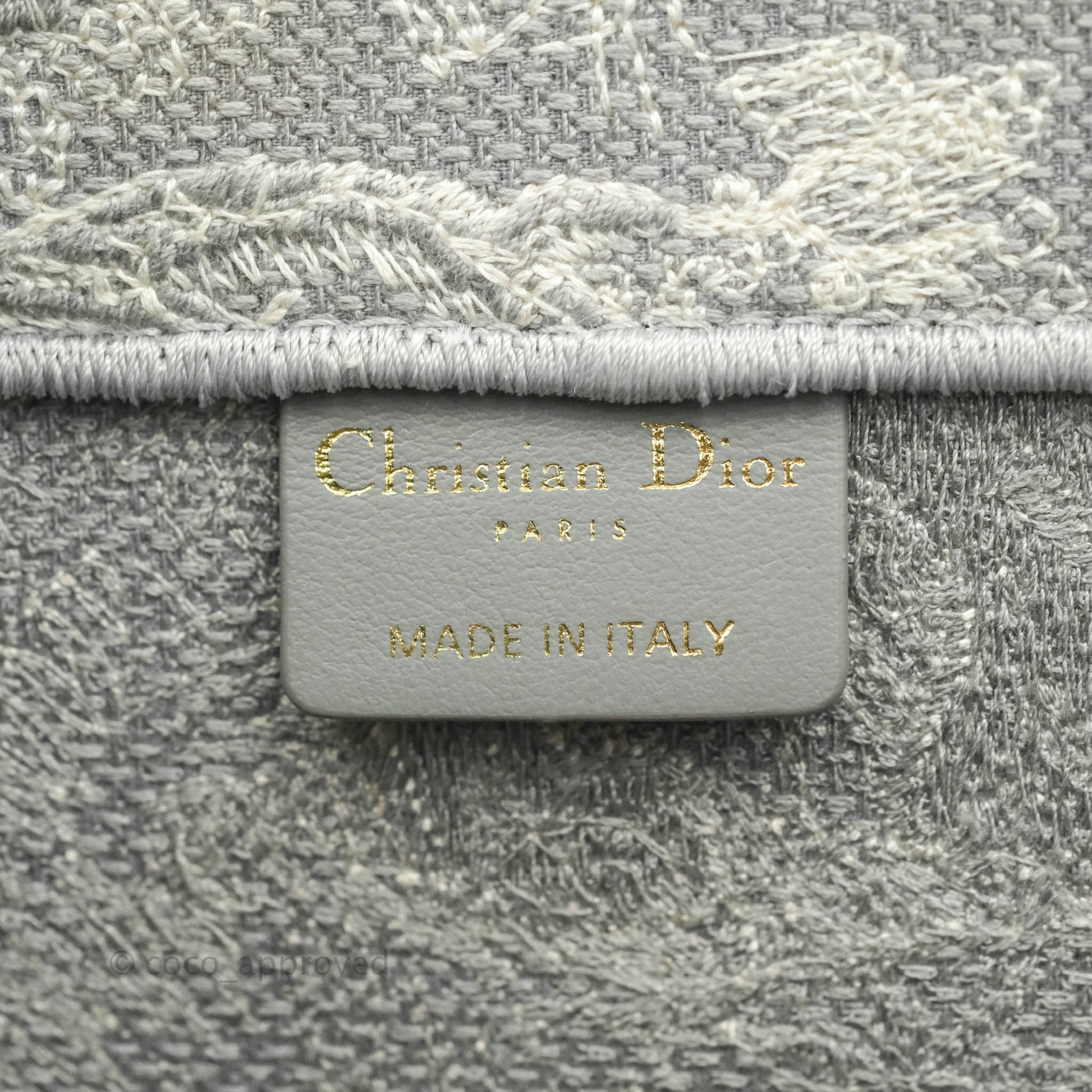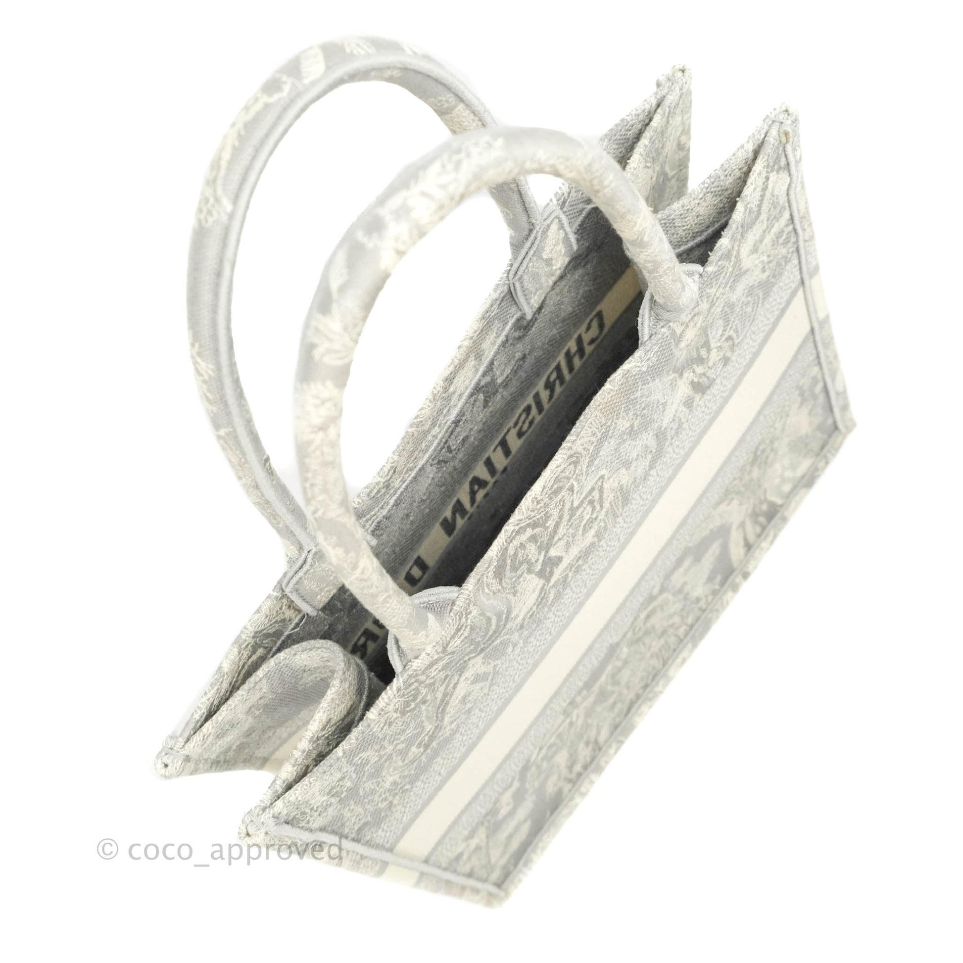 Christian Dior Medium (Old Small) Embroidered Toile De Jouy Light Grey Canvas Book Tote
