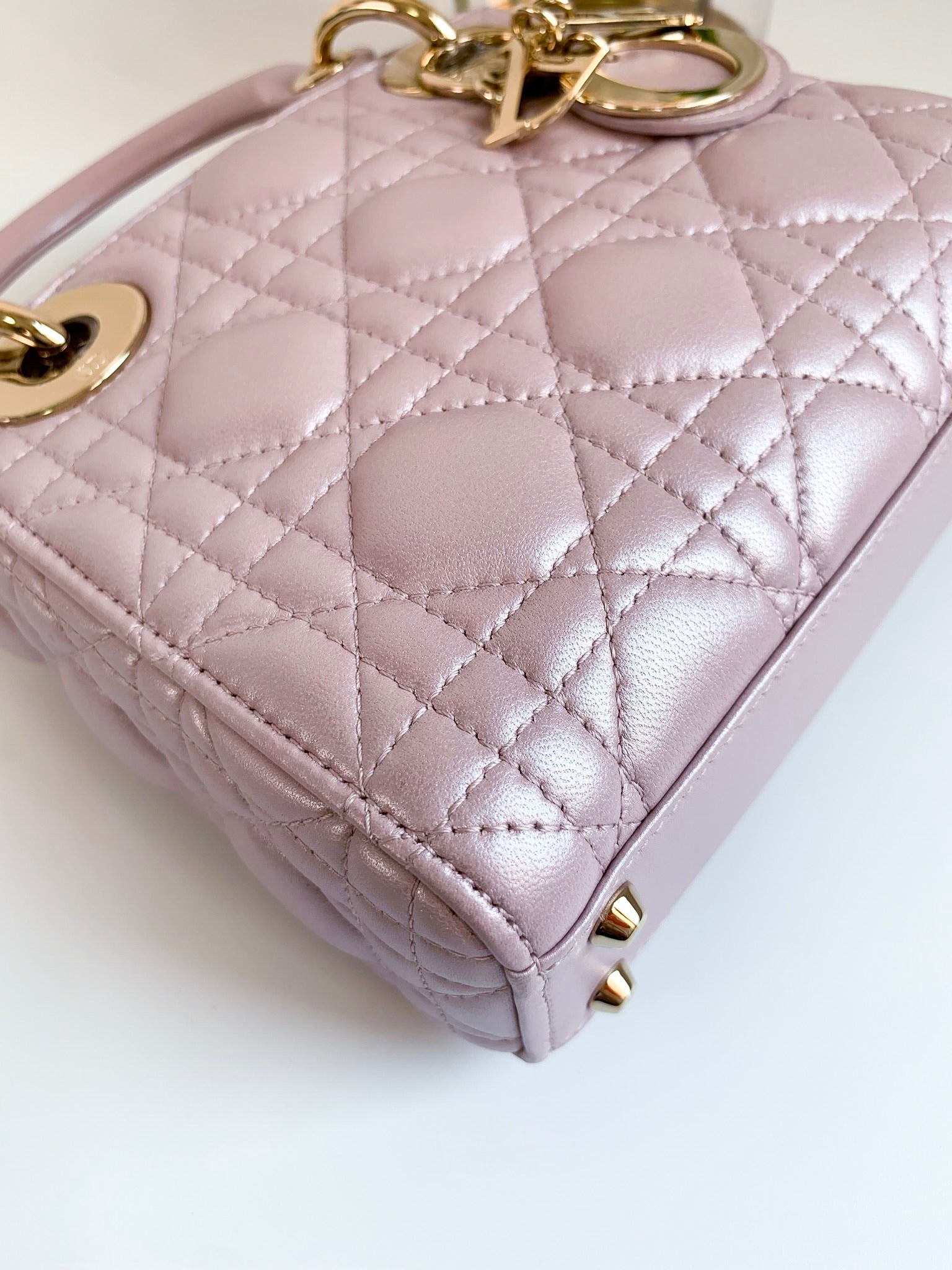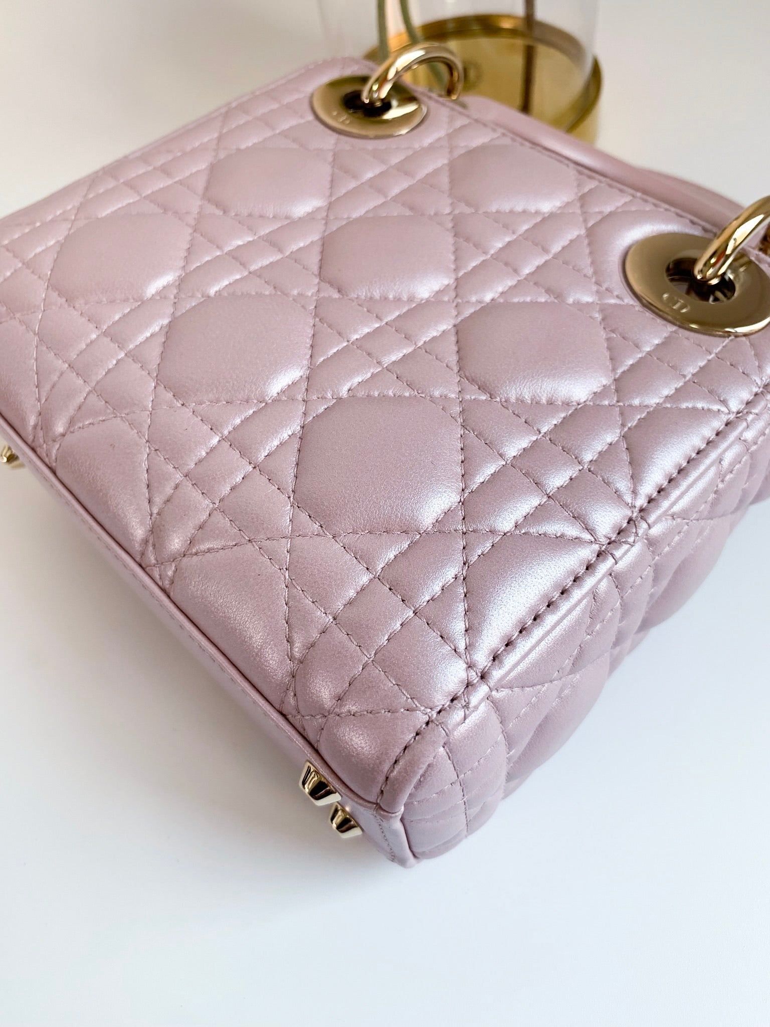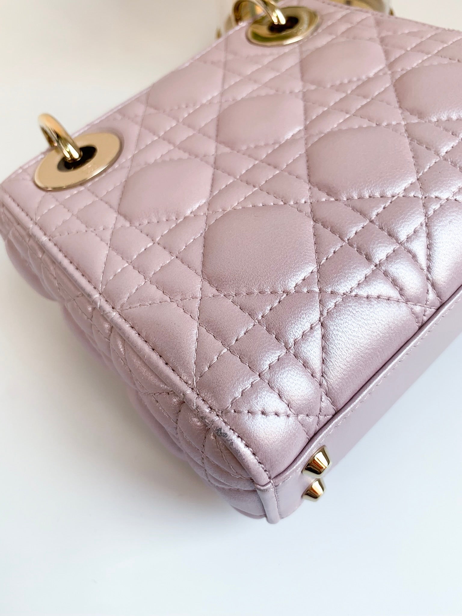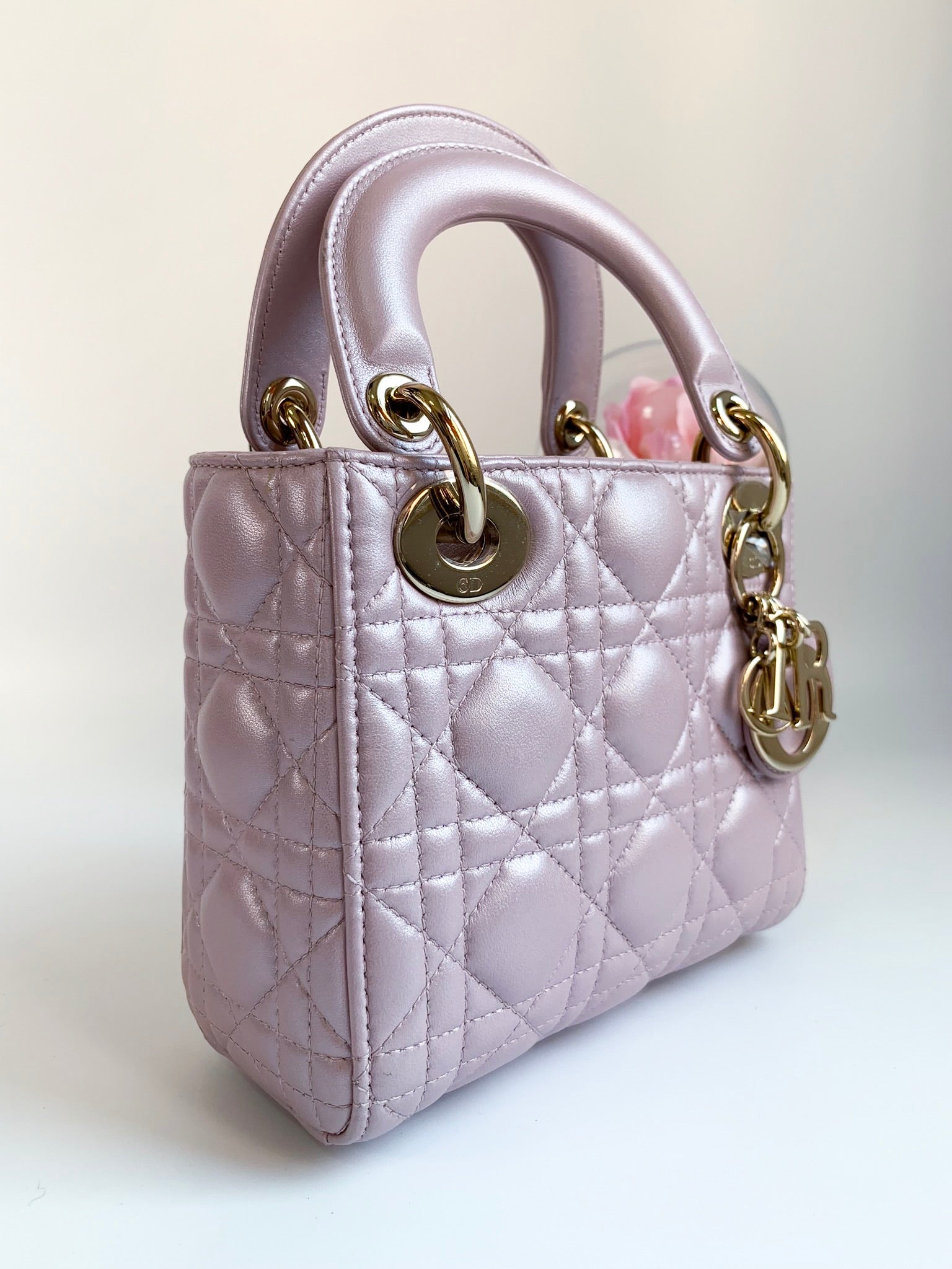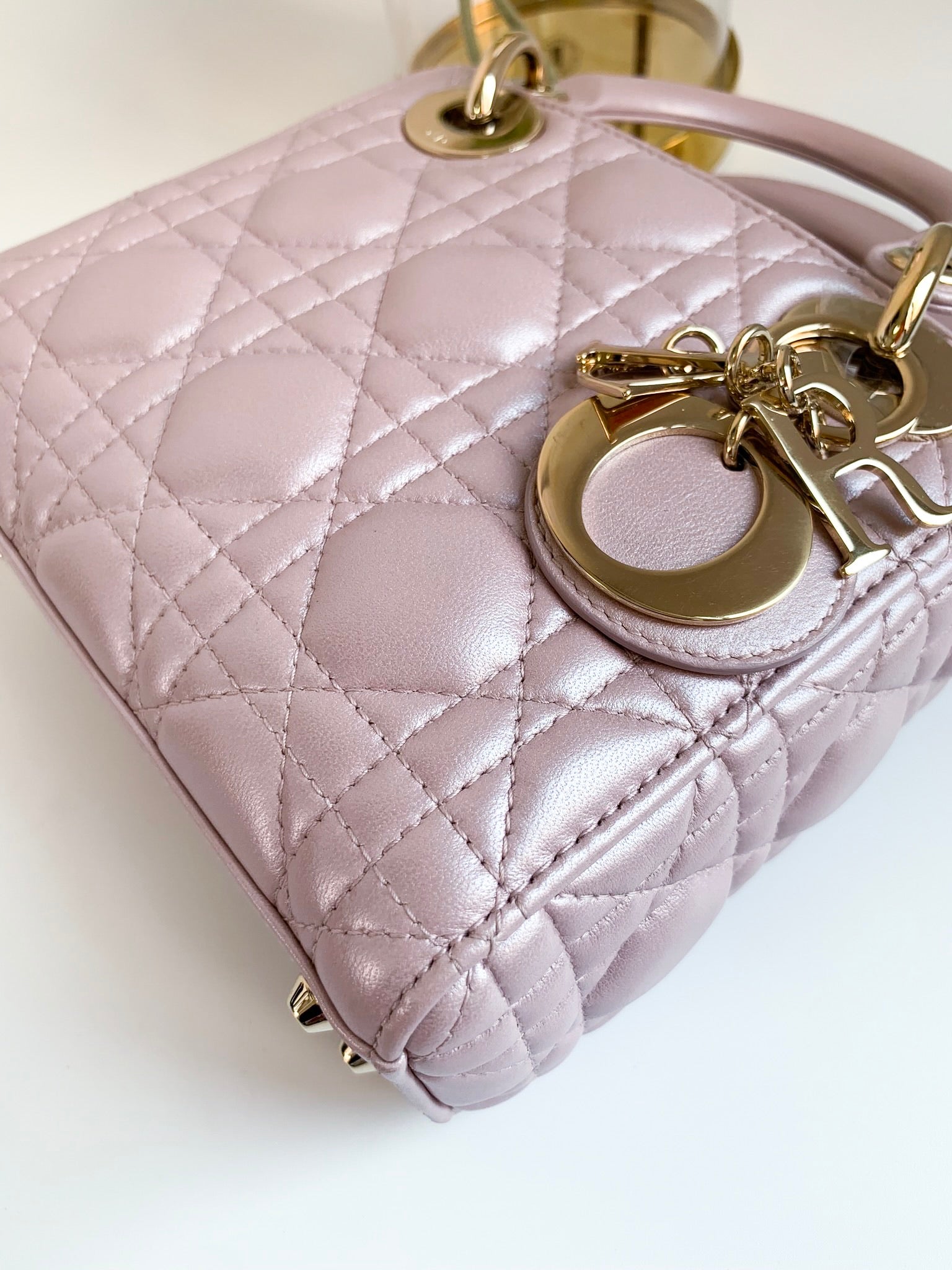 Christian Dior Metallic Calfskin Cannage Mini Lady Dior Pink