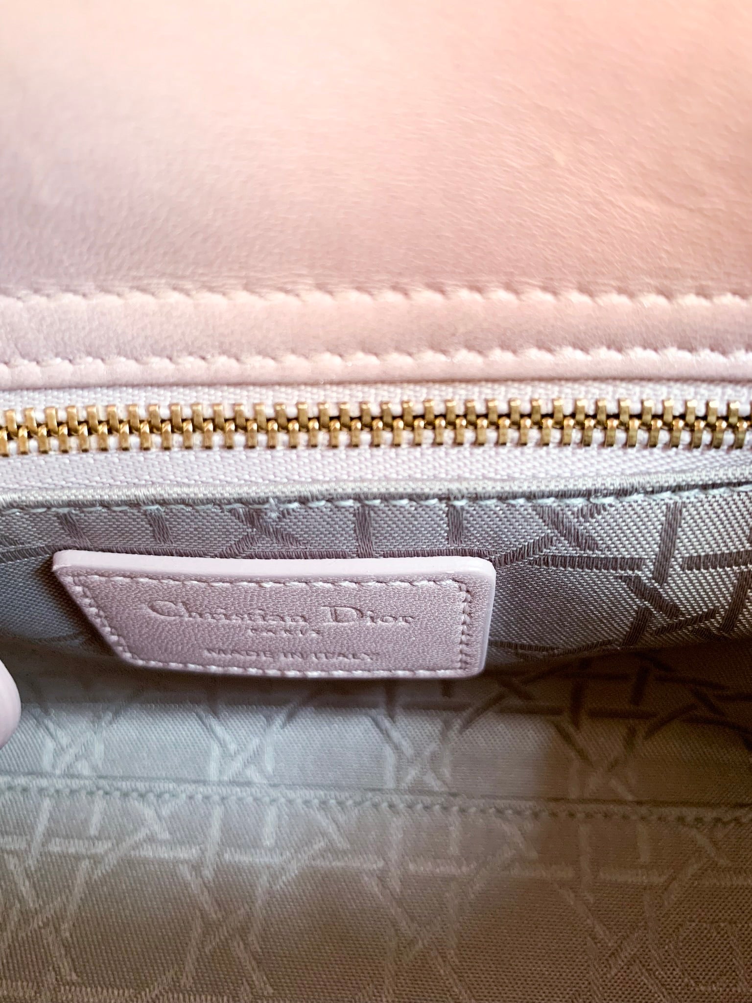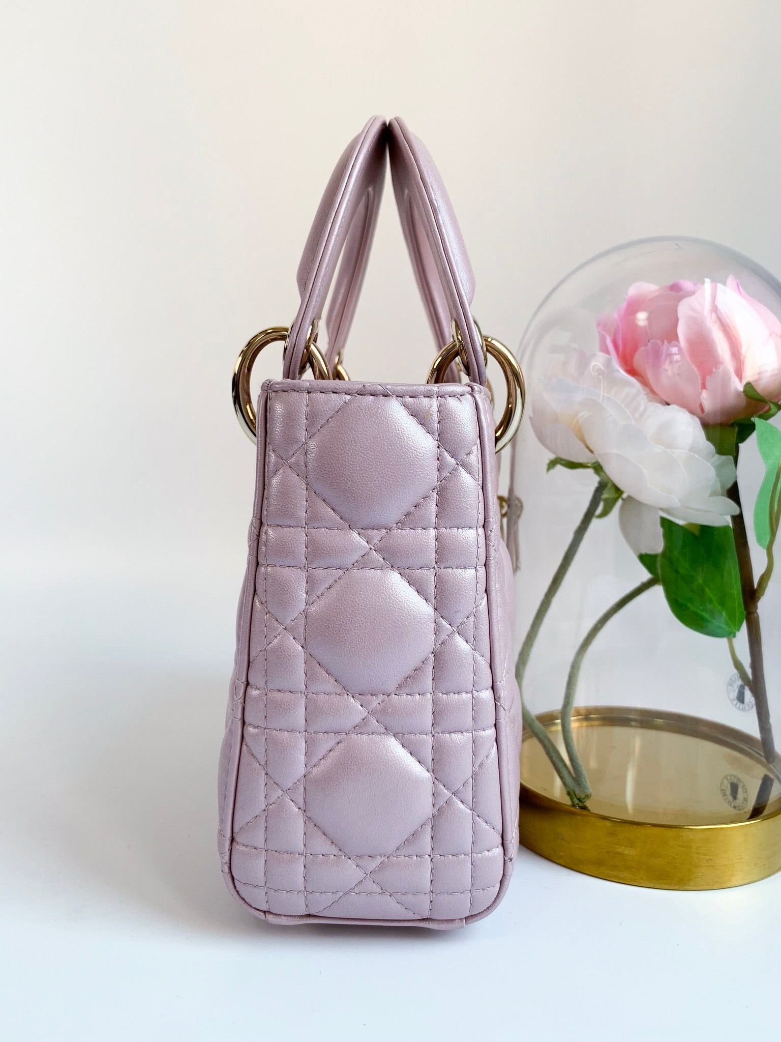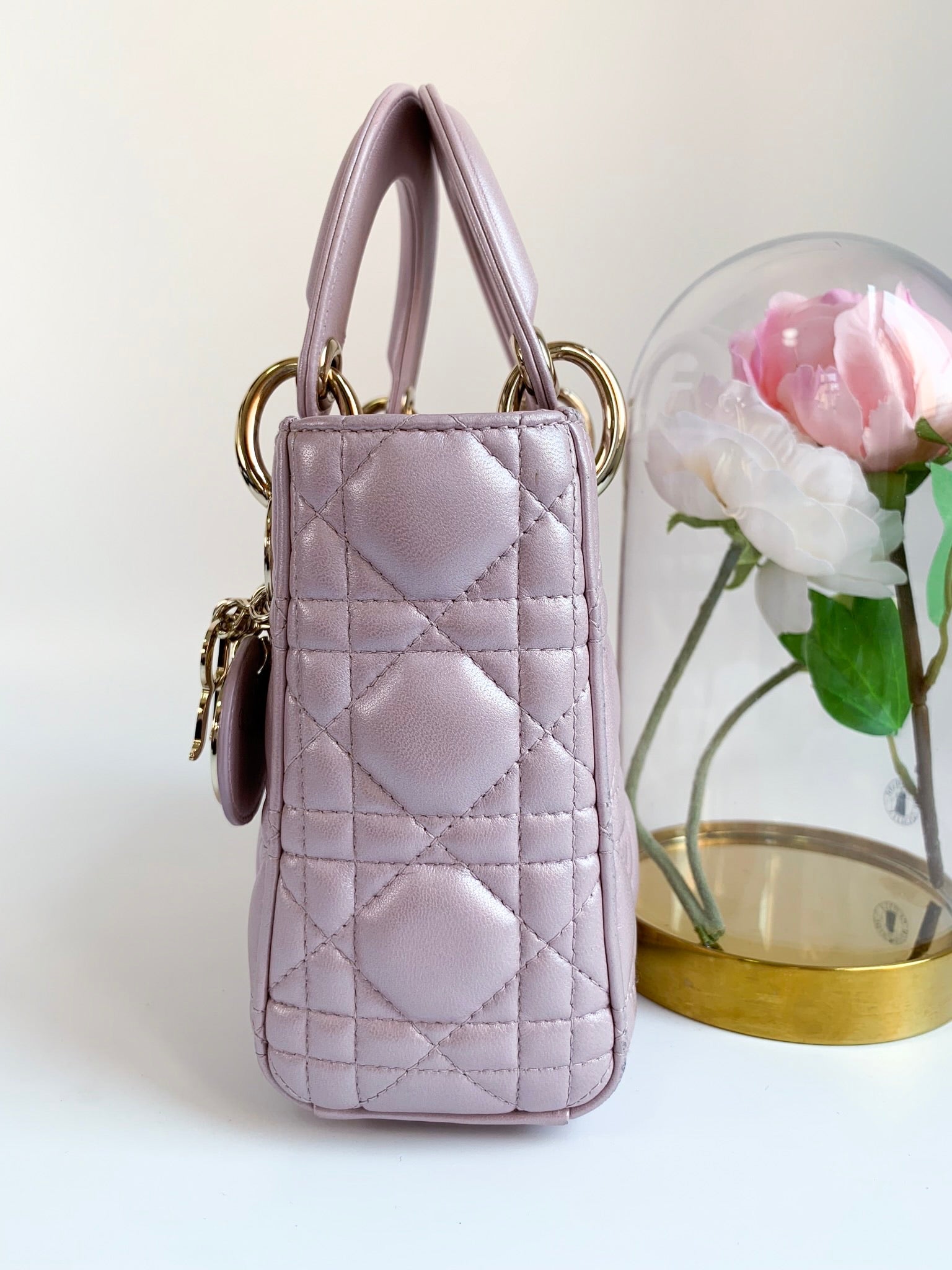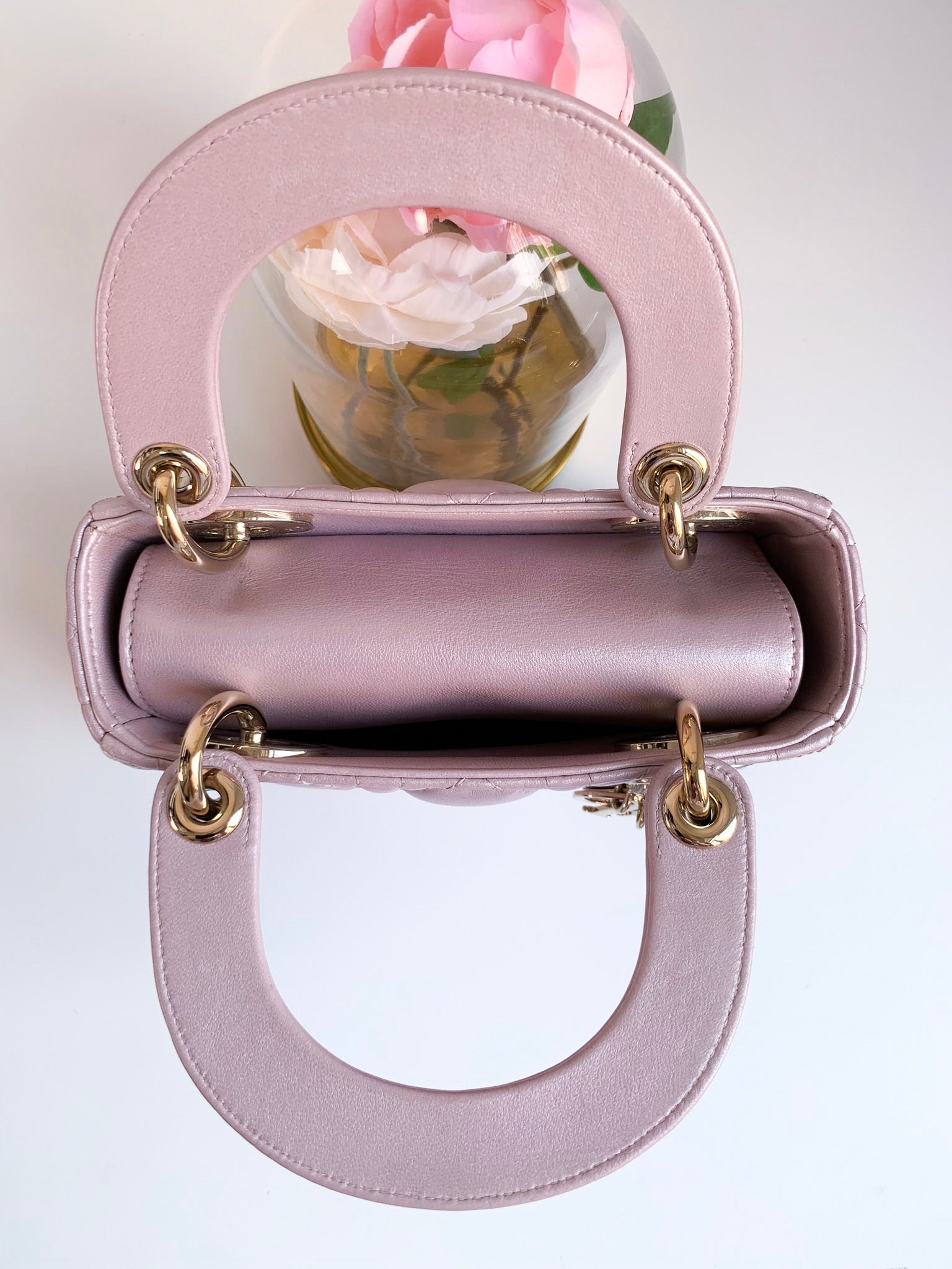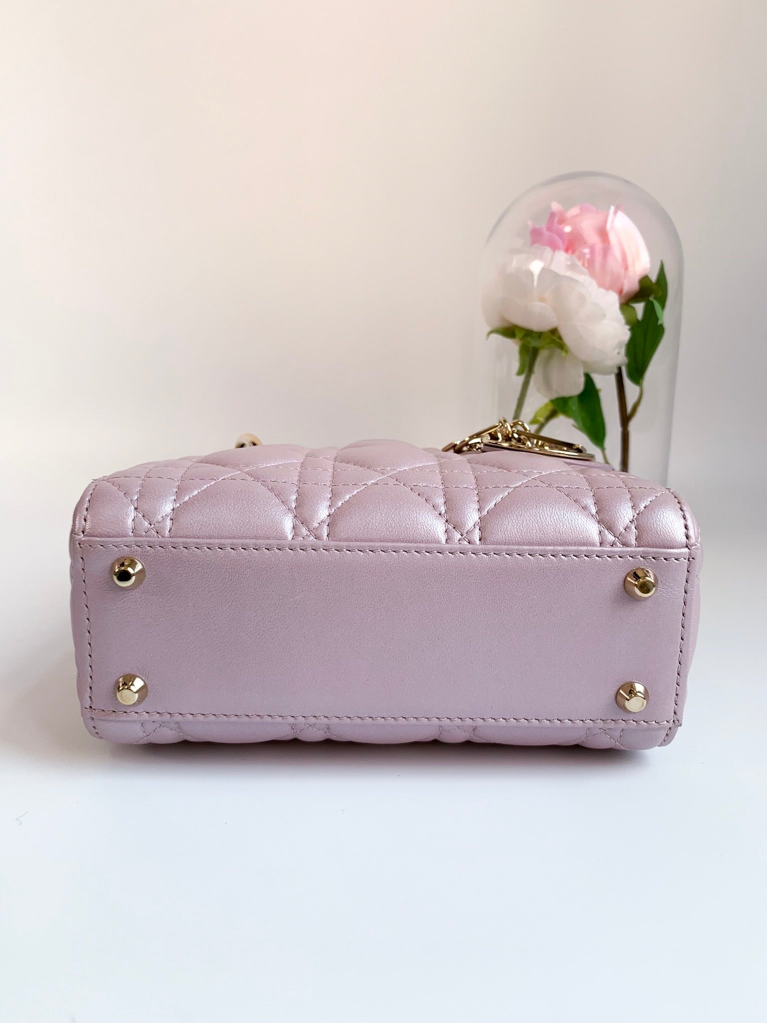Christian Dior Metallic Calfskin Cannage Mini Lady Dior Pink