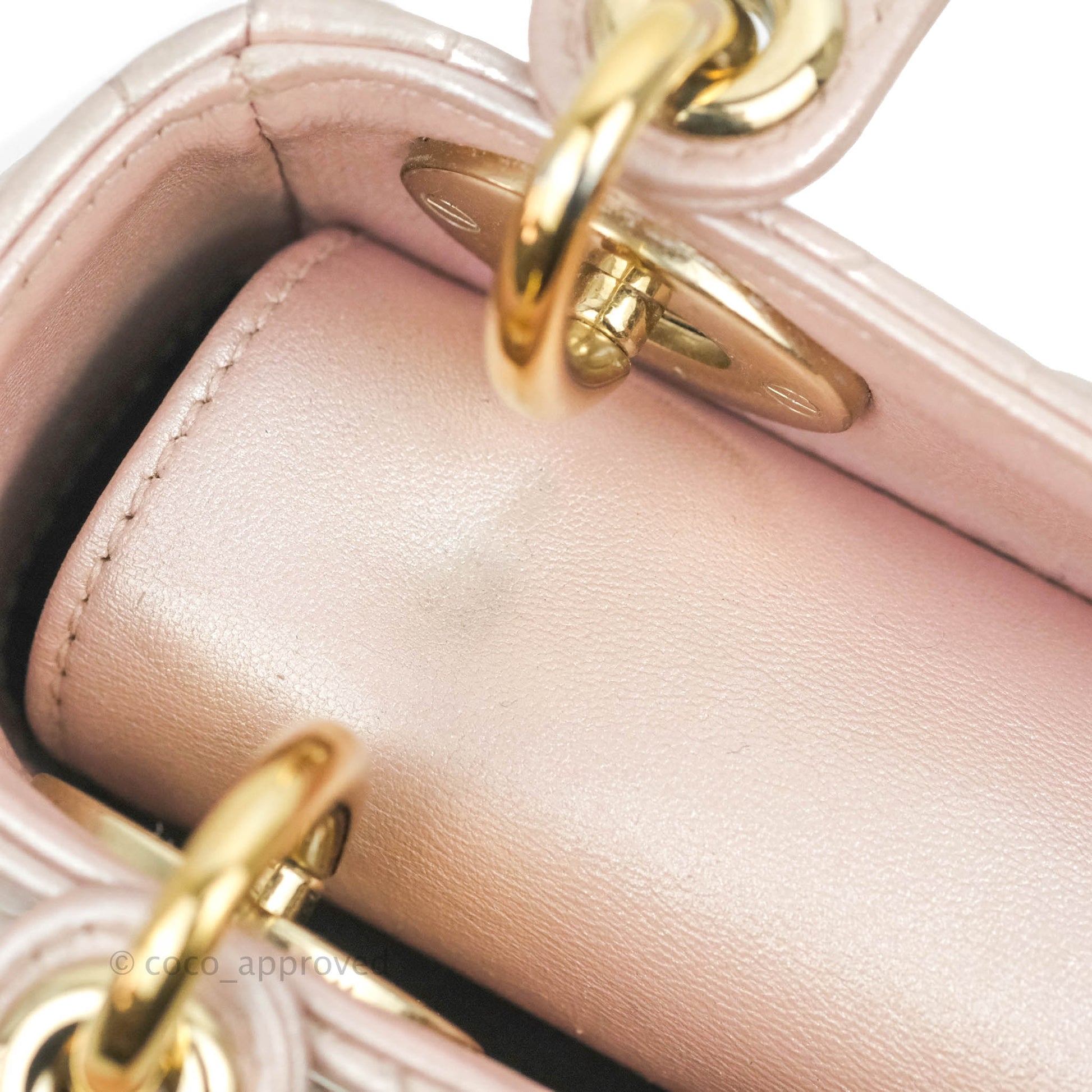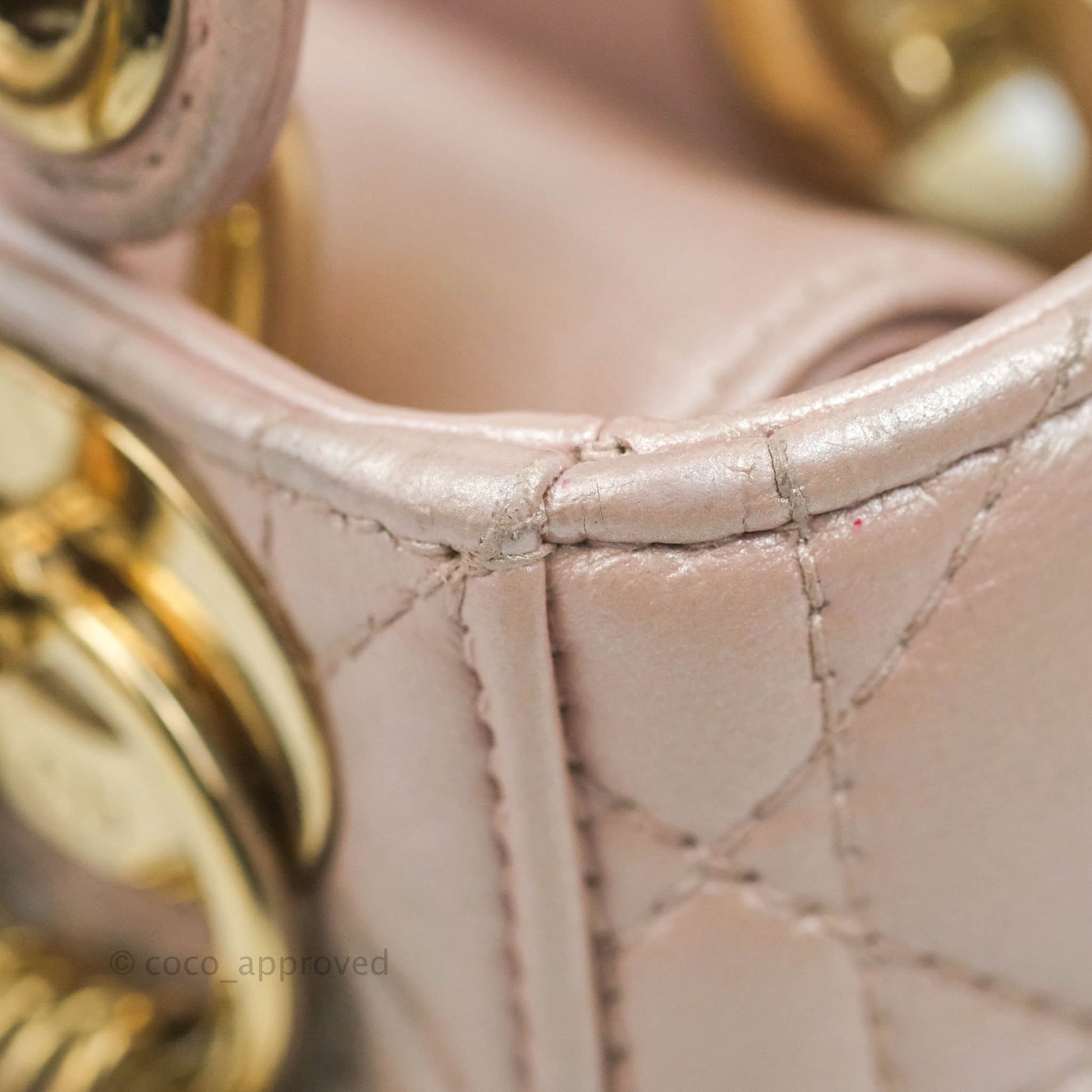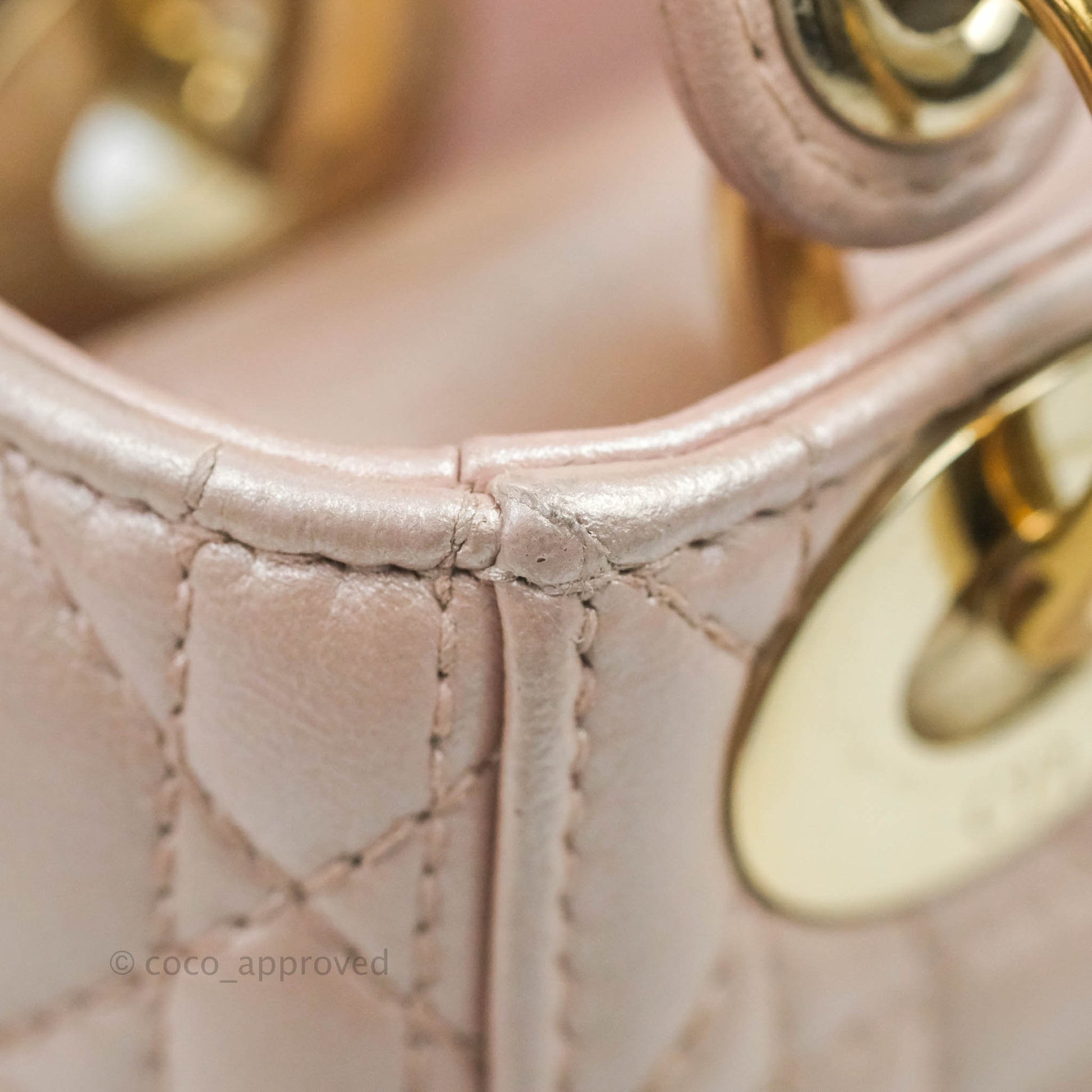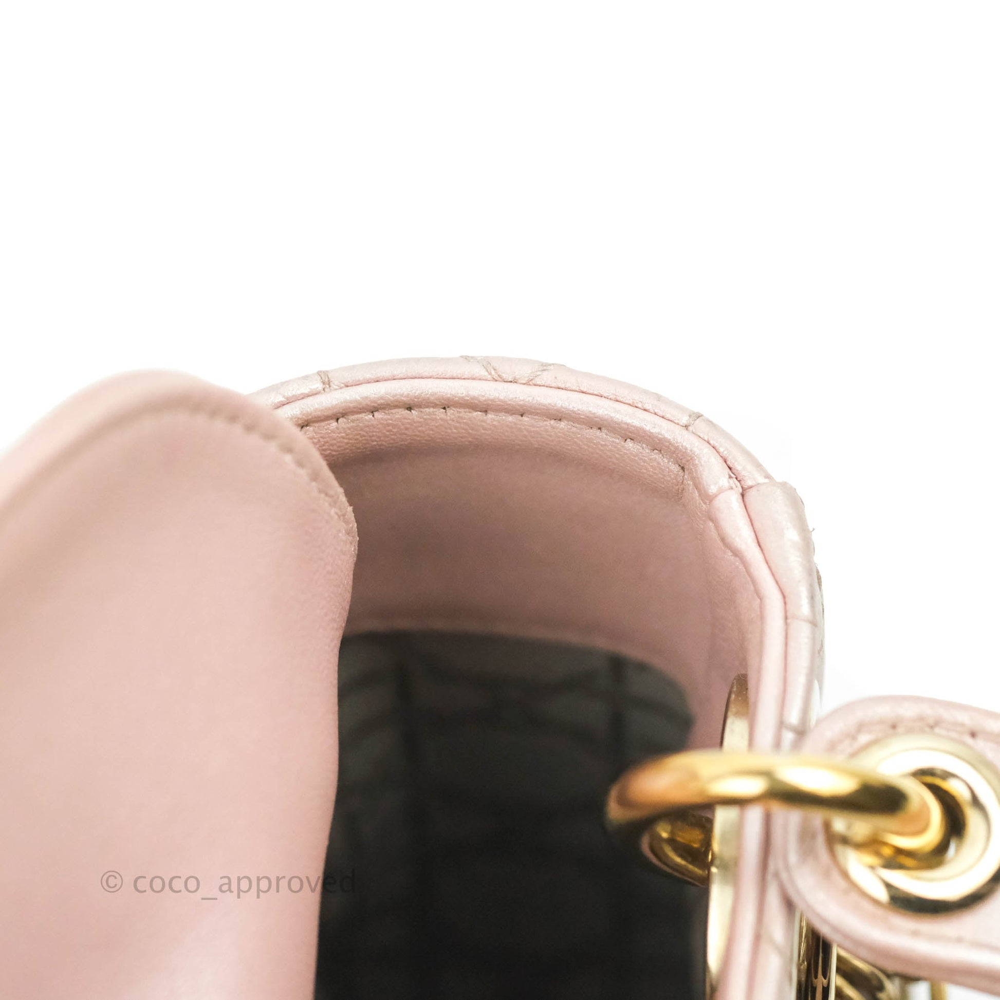 Christian Dior Mini Lady Dior Iridescent Light Pink Cannage Gold Hardware