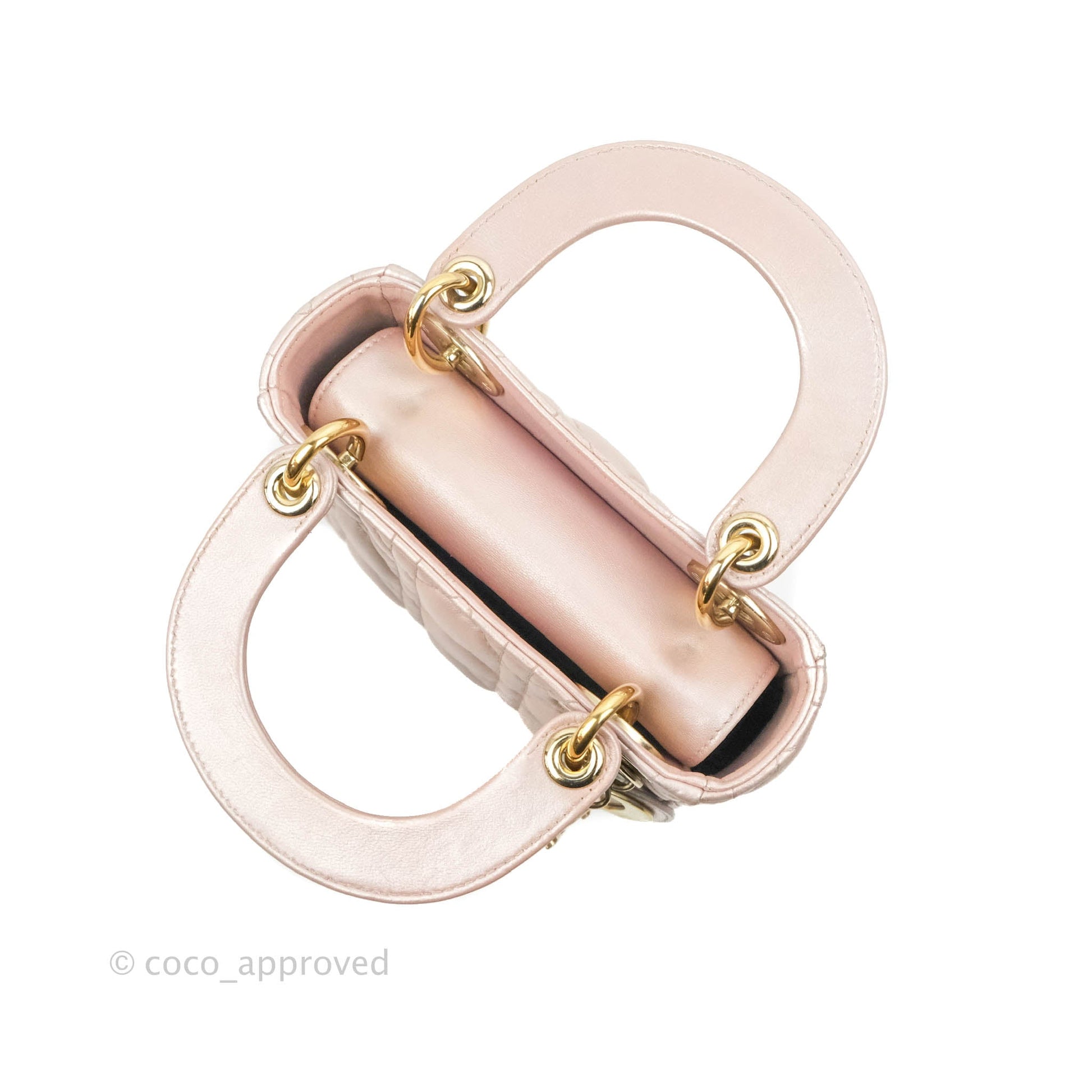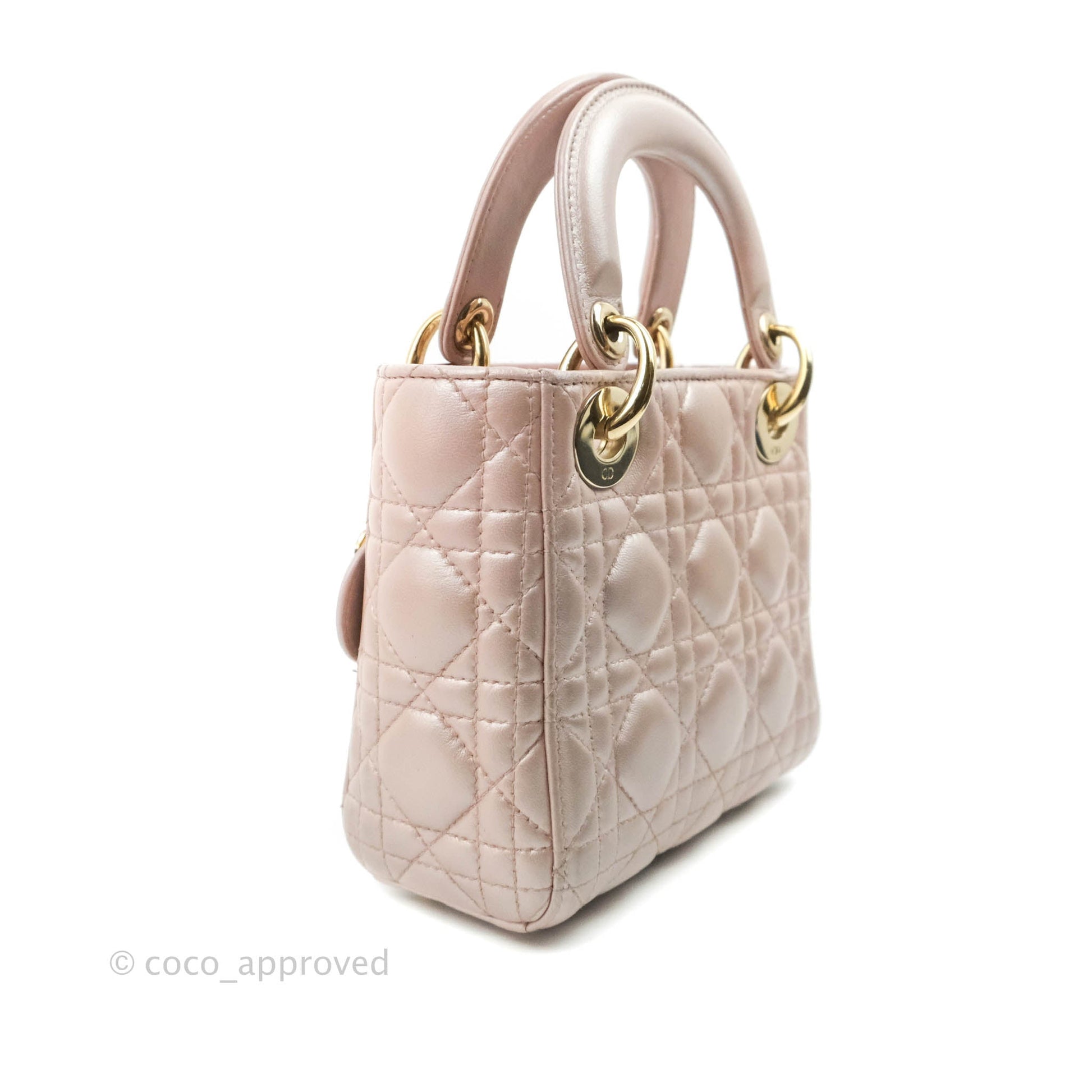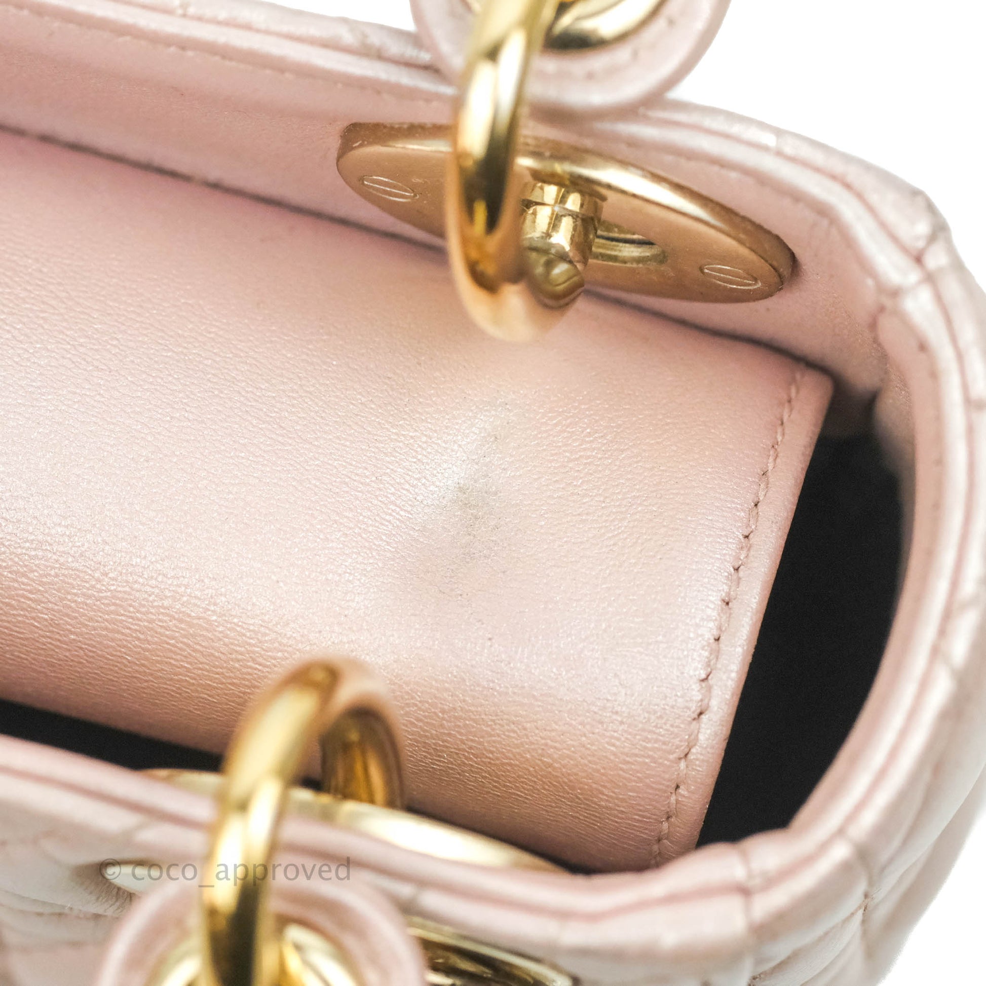 Christian Dior Mini Lady Dior Iridescent Light Pink Cannage Gold Hardware