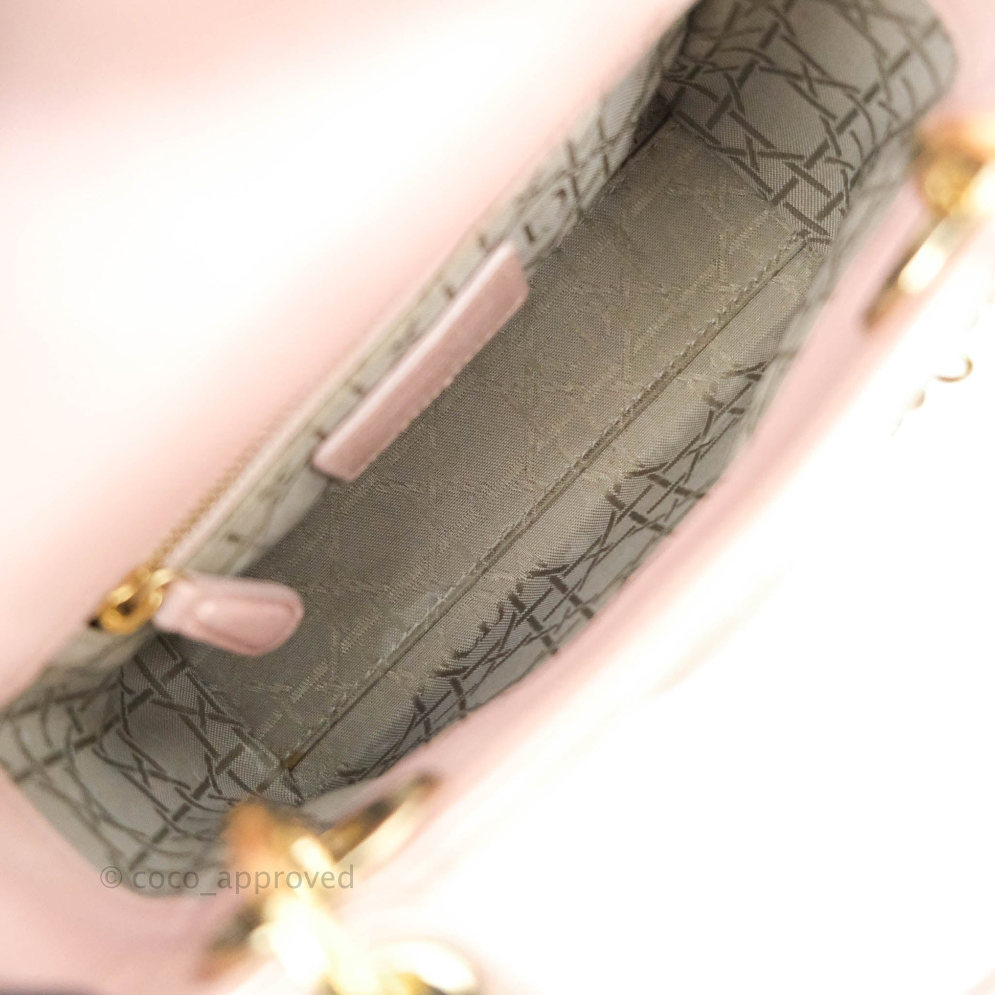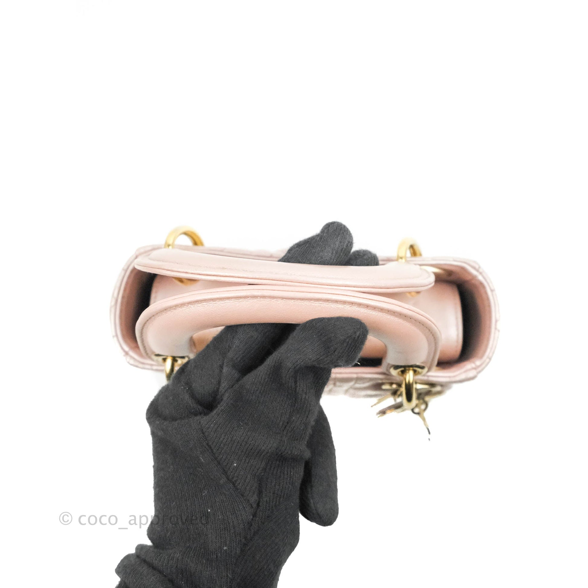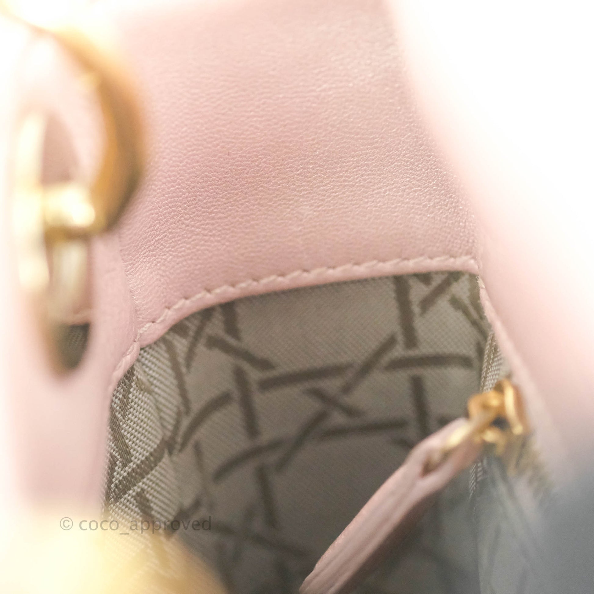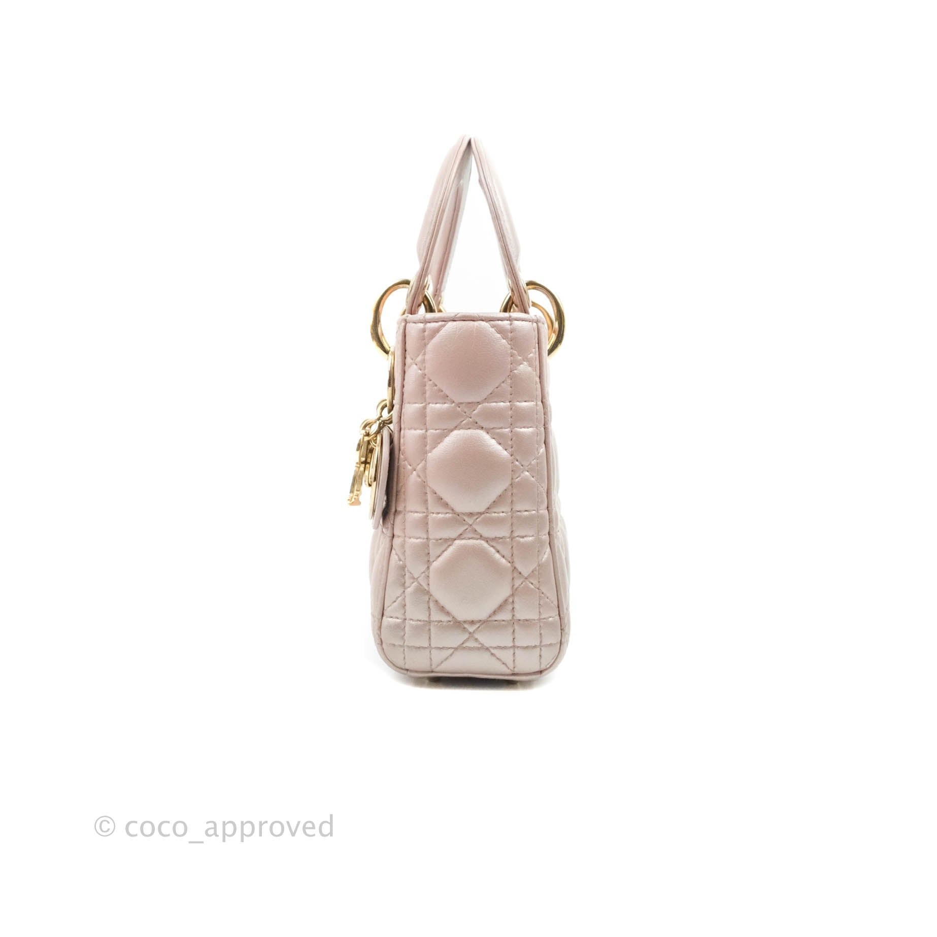 Christian Dior Mini Lady Dior Iridescent Light Pink Cannage Gold Hardware