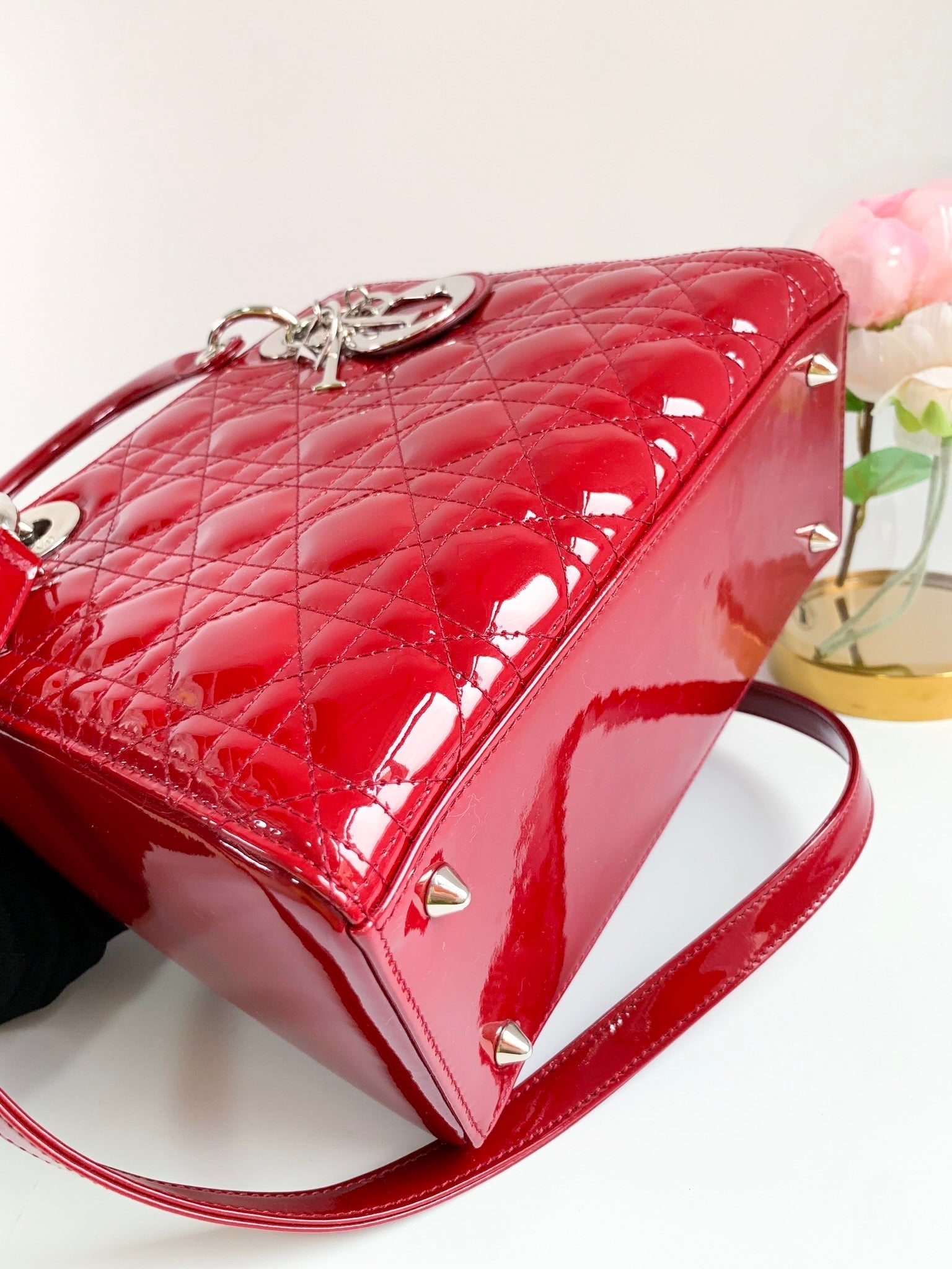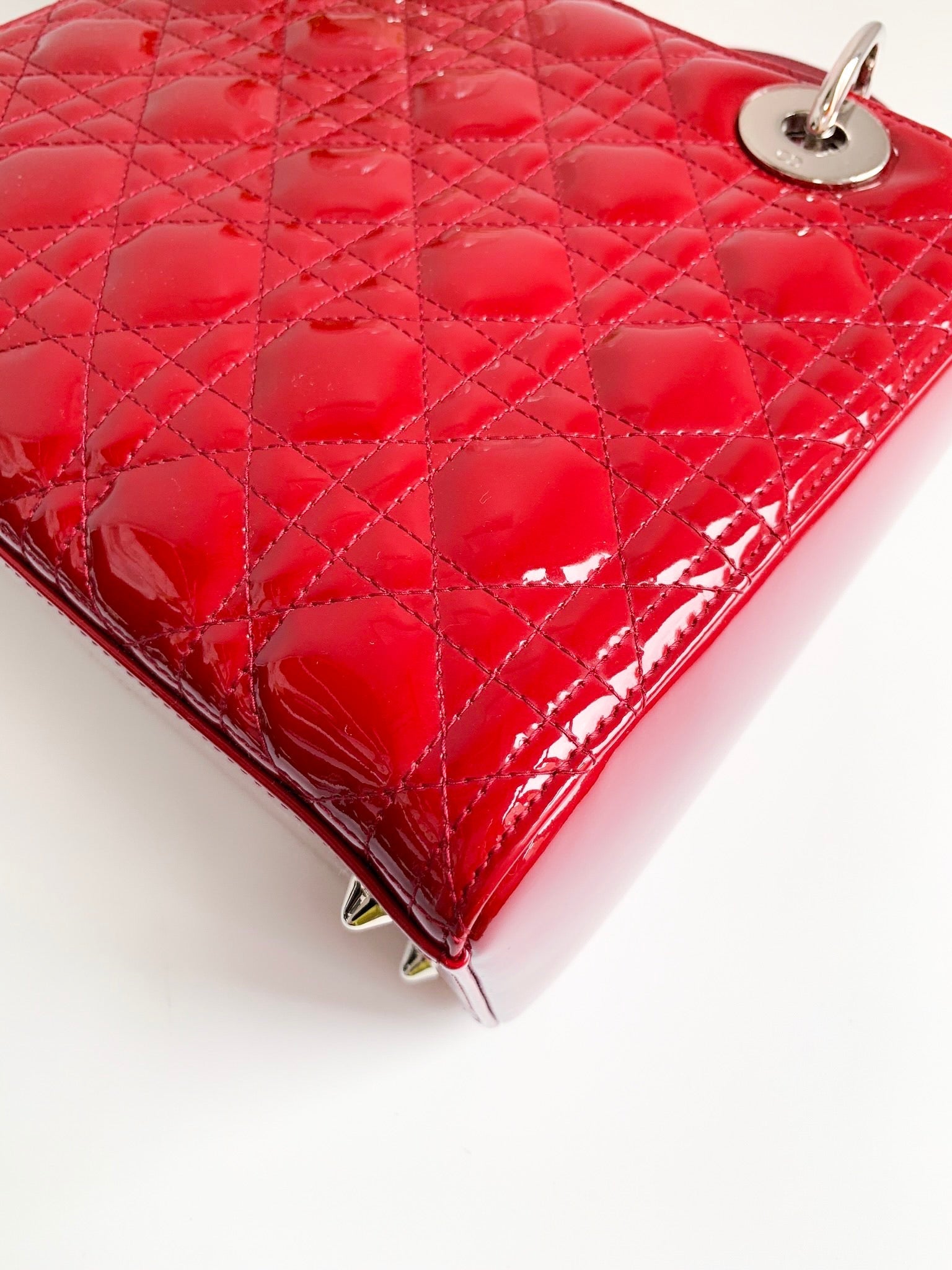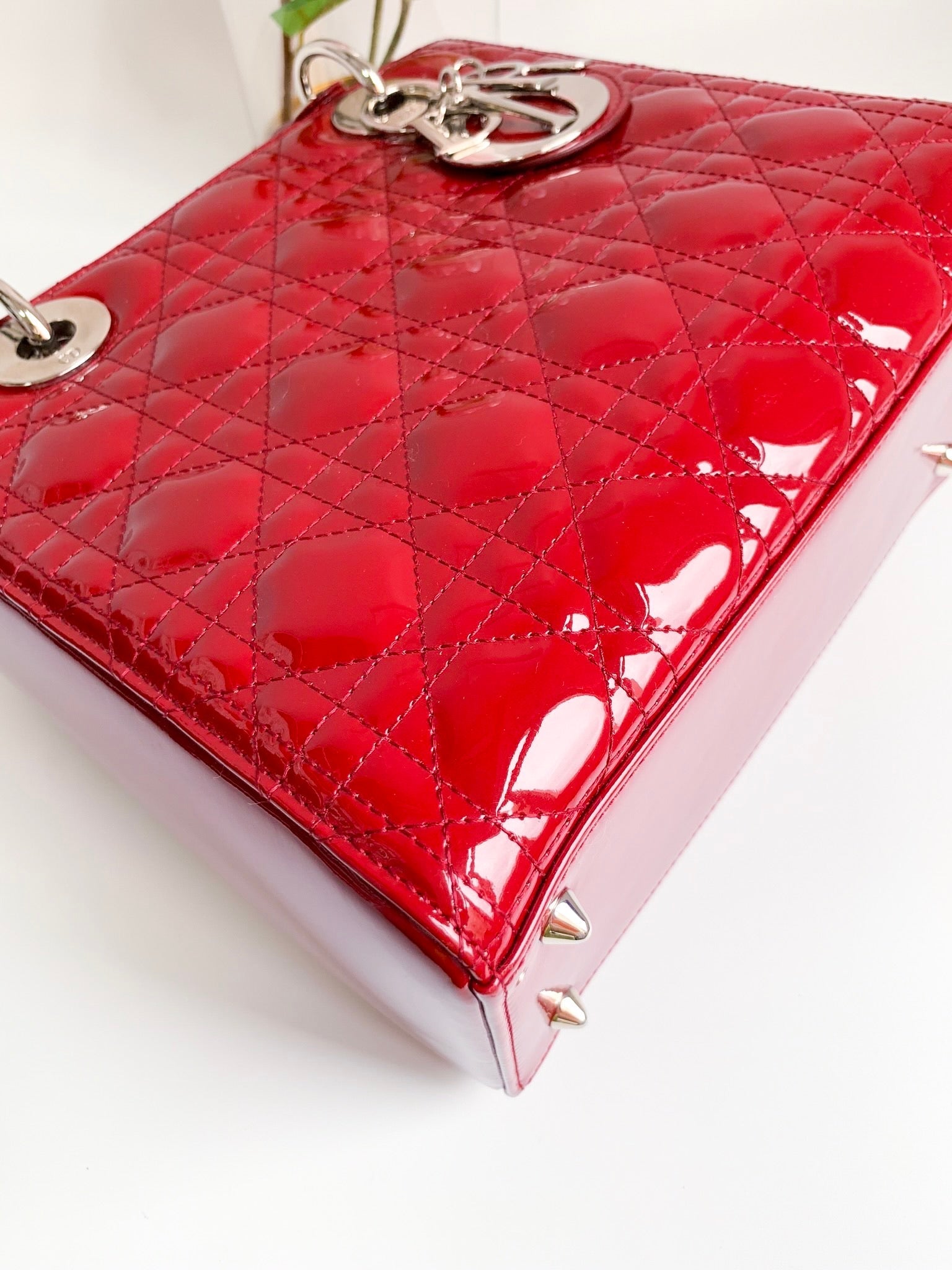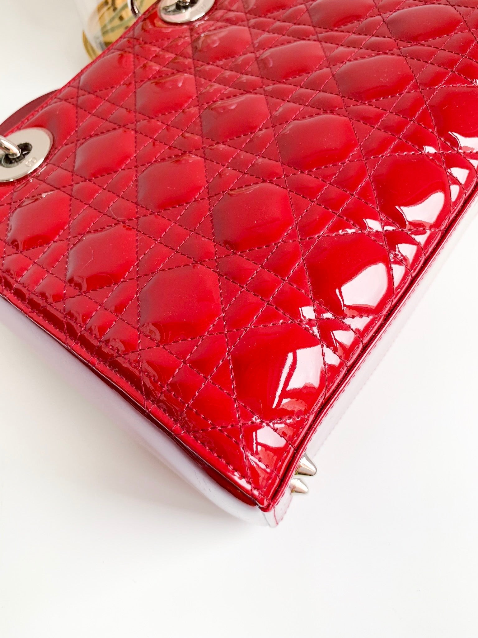 Christian Dior Patent Cannage Medium Lady Dior Red Silver Hardware